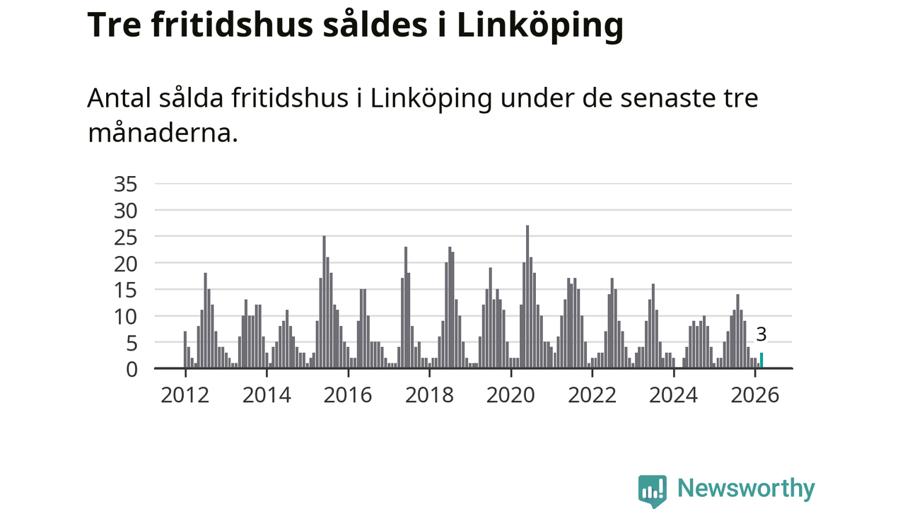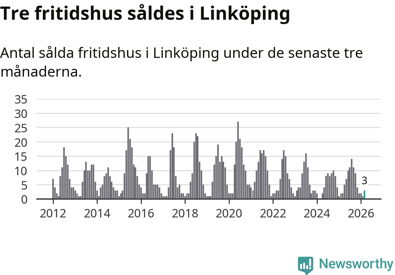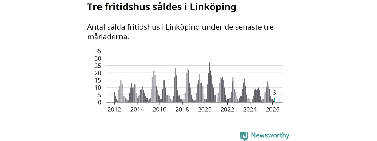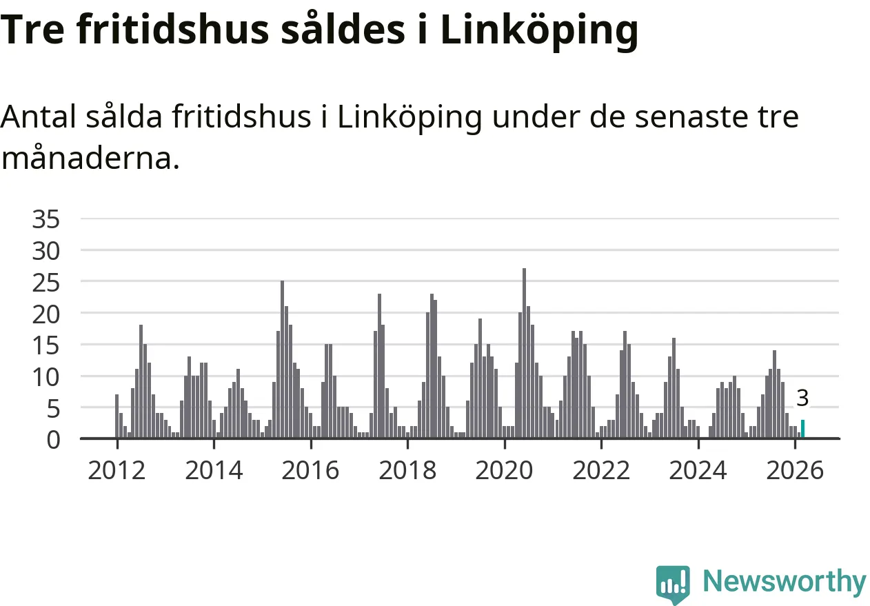 Mellan januari och mars gjordes sammanlagt tre affärer med fritidshus i Linköpings kommun. Det kan jämföras med två vid motsvarande tid i fjol.