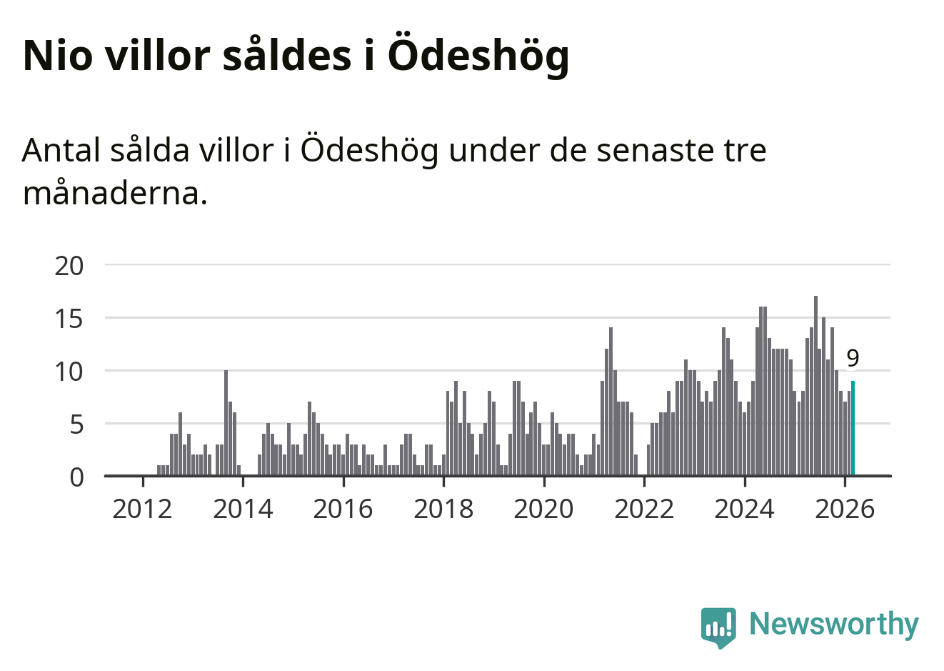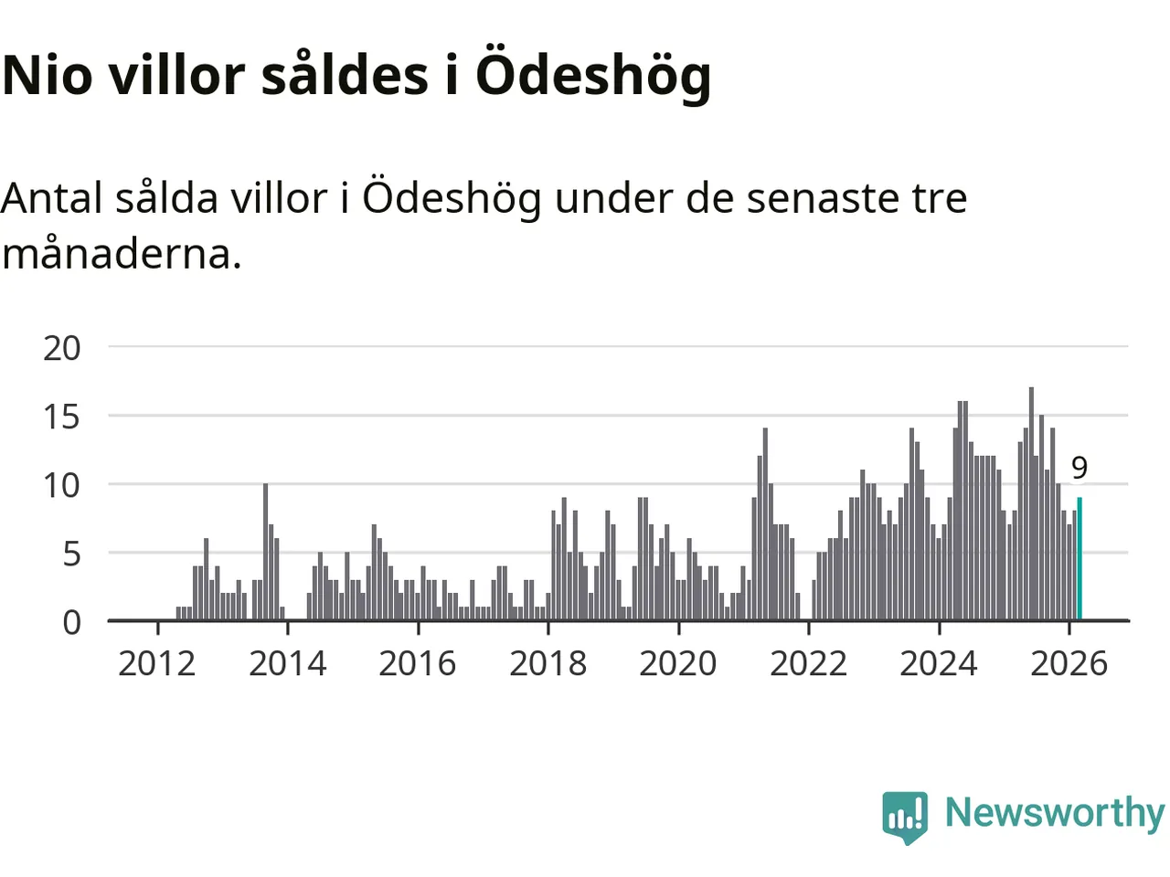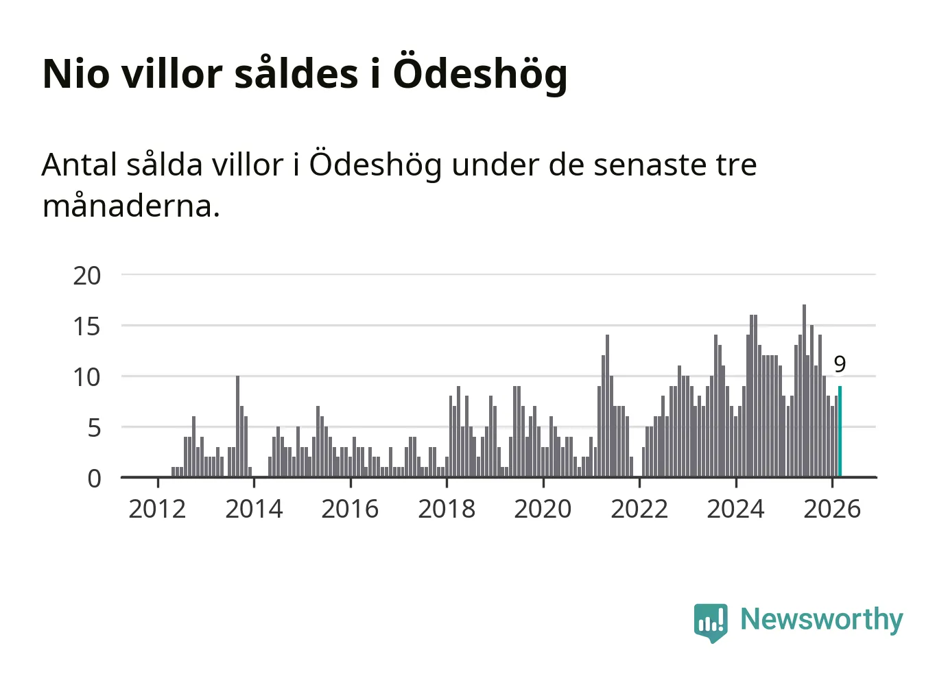 Mellan januari och mars gjordes sammanlagt nio affärer med villor i Ödeshögs kommun. Det kan jämföras med åtta vid motsvarande tid i fjol.