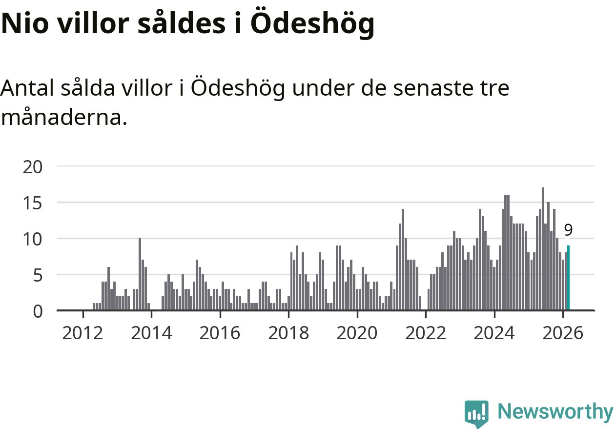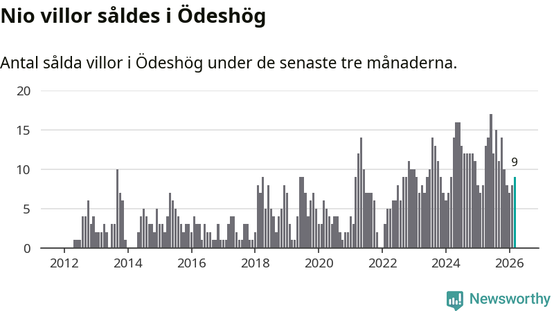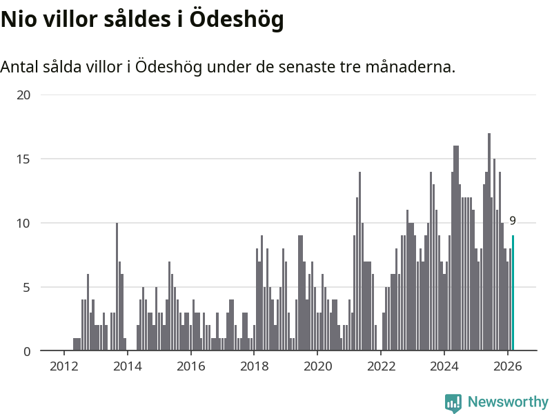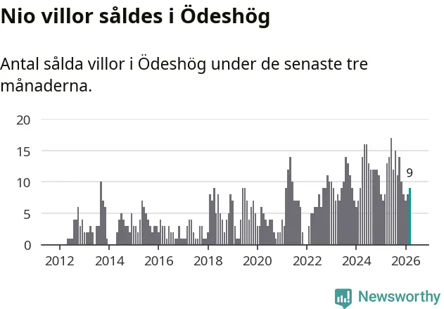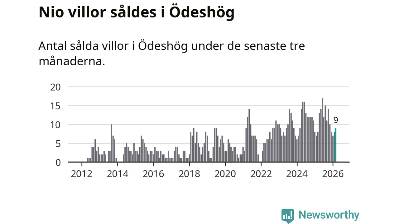 Mellan januari och mars gjordes sammanlagt nio affärer med villor i Ödeshögs kommun. Det kan jämföras med åtta vid motsvarande tid i fjol.