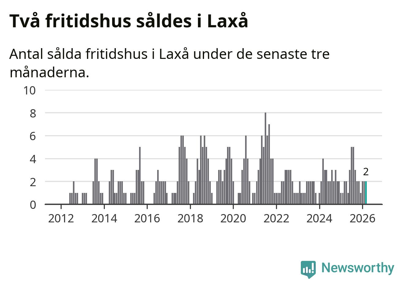 Graf: Antal sålda fritidshus i Laxå kommun
