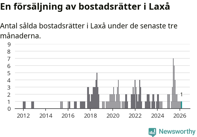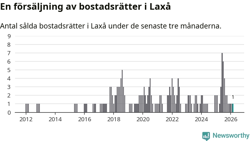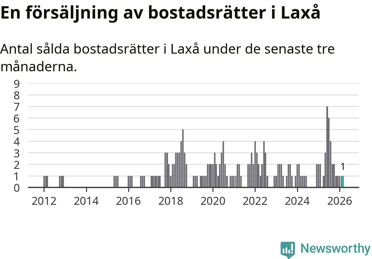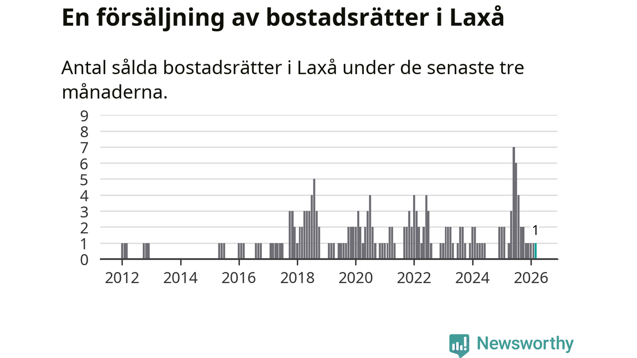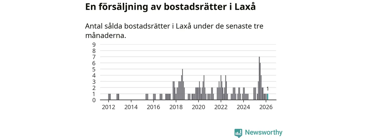 Mellan januari och mars gjordes sammanlagt en affär med bostadsrätter i Laxå kommun.