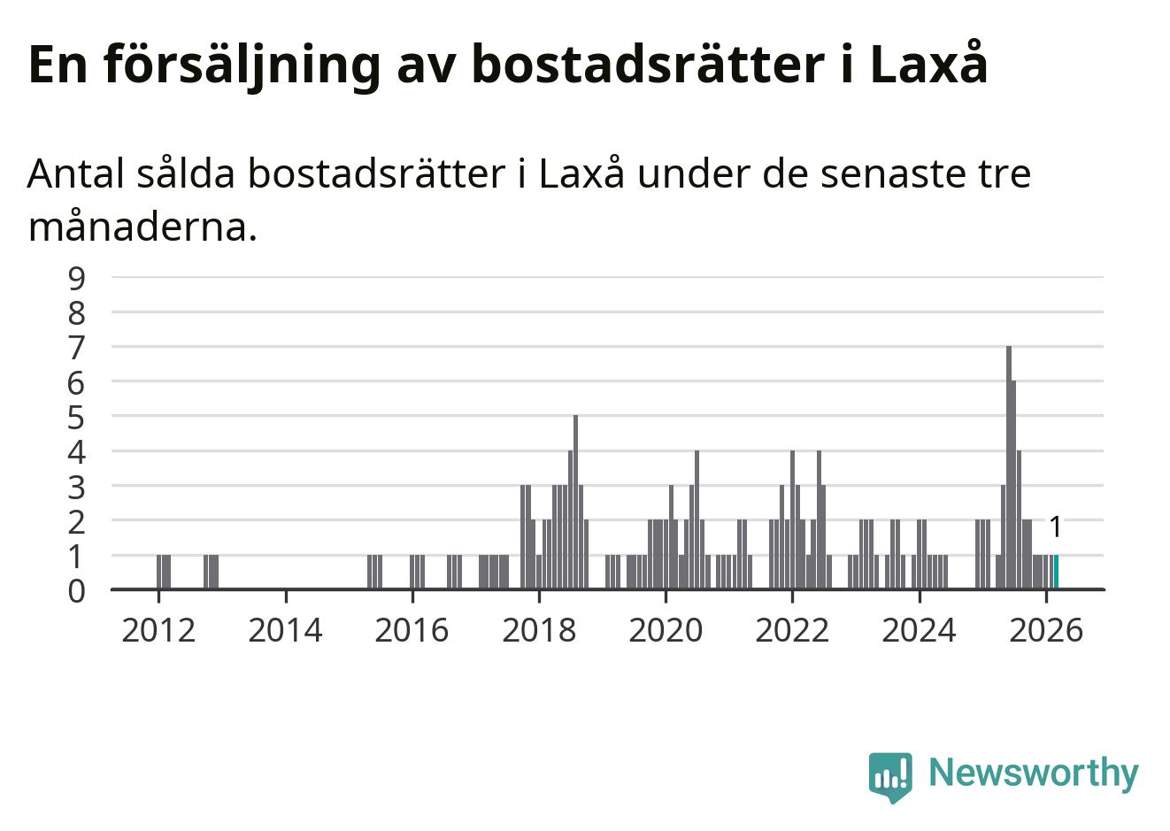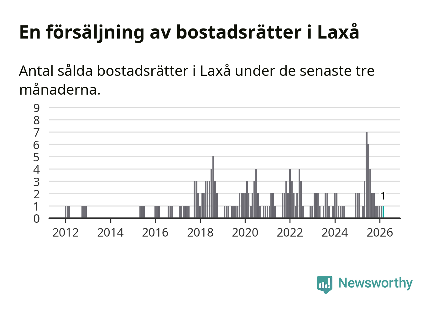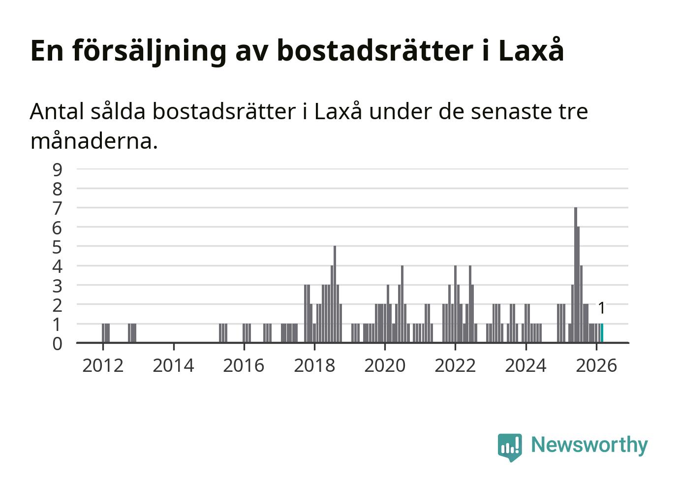 Mellan januari och mars gjordes sammanlagt en affär med bostadsrätter i Laxå kommun.