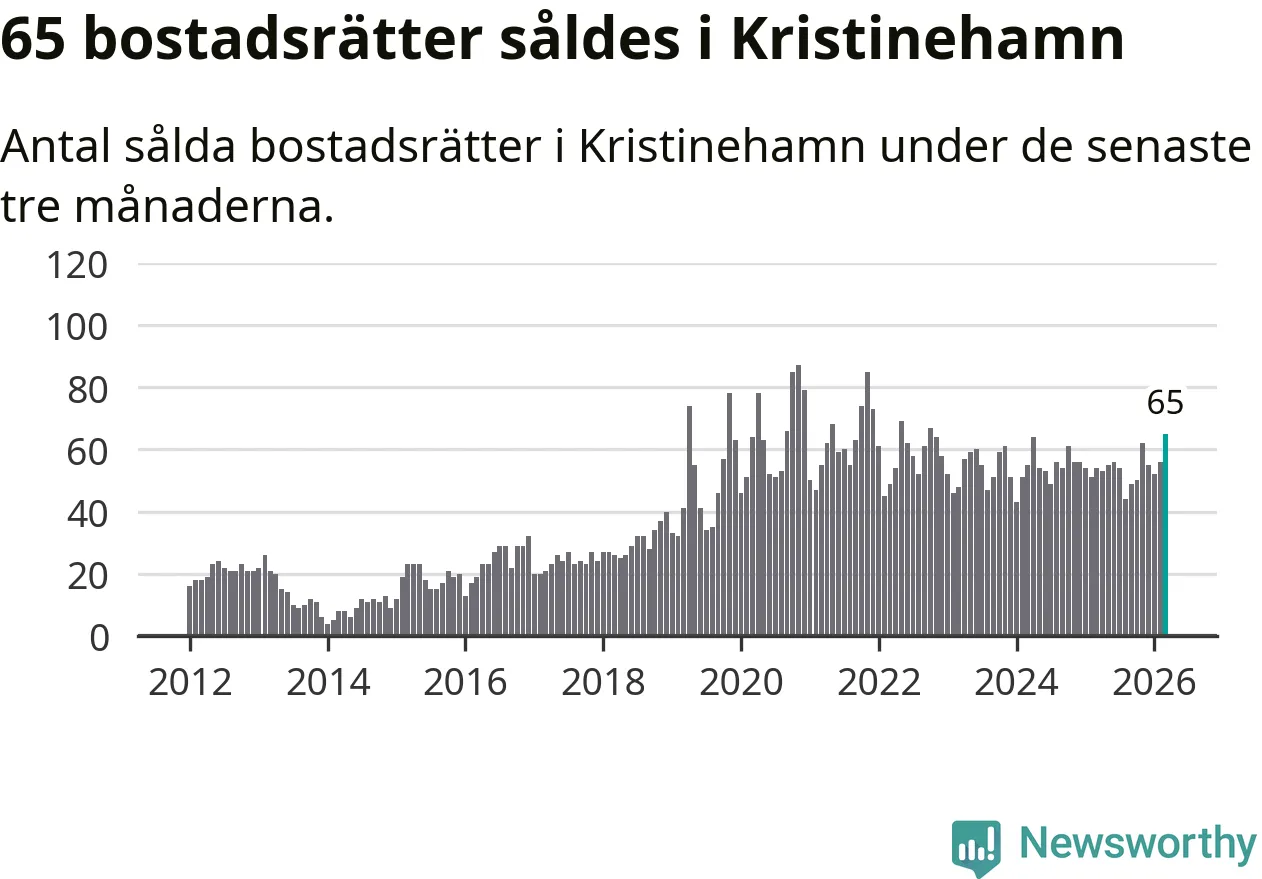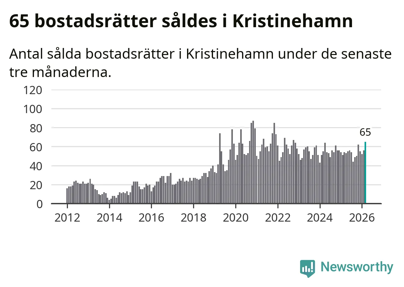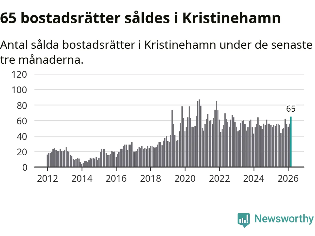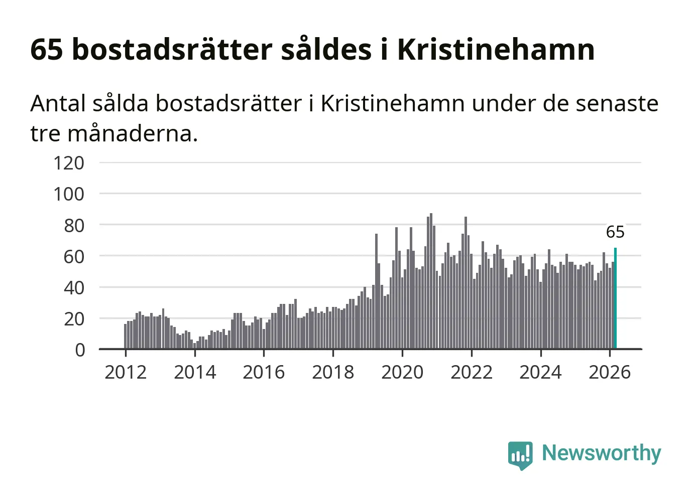 Mellan januari och mars såldes 65 bostadsrätter i Kristinehamns kommun. Det är fler än någon tremånadersperiod sedan 2022.