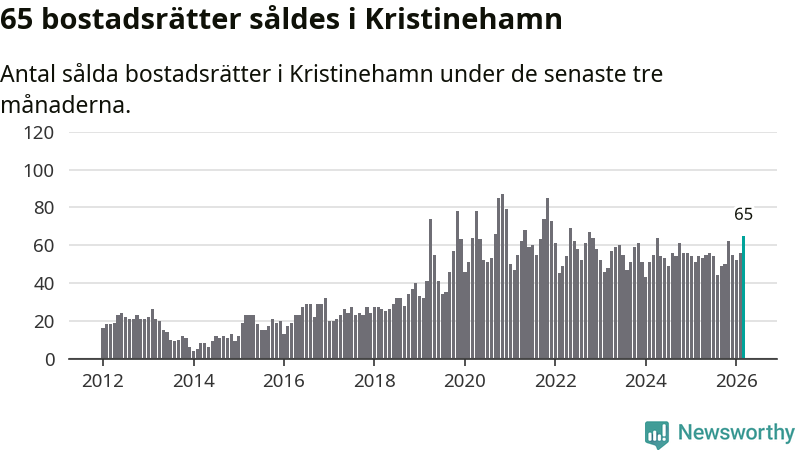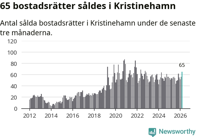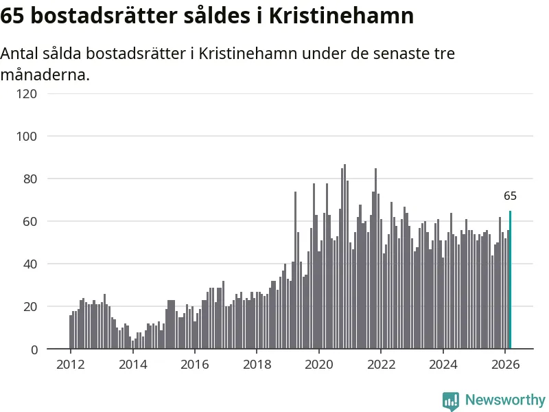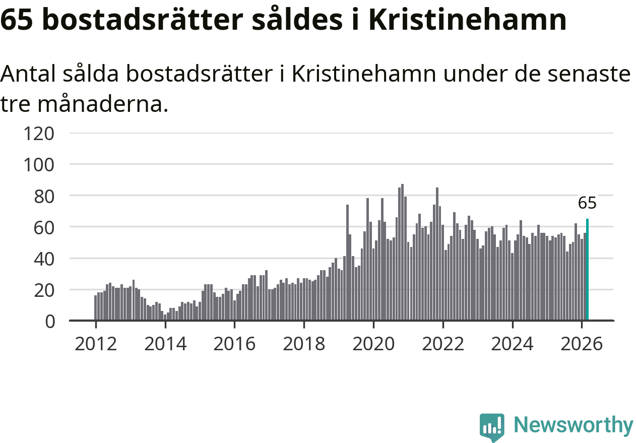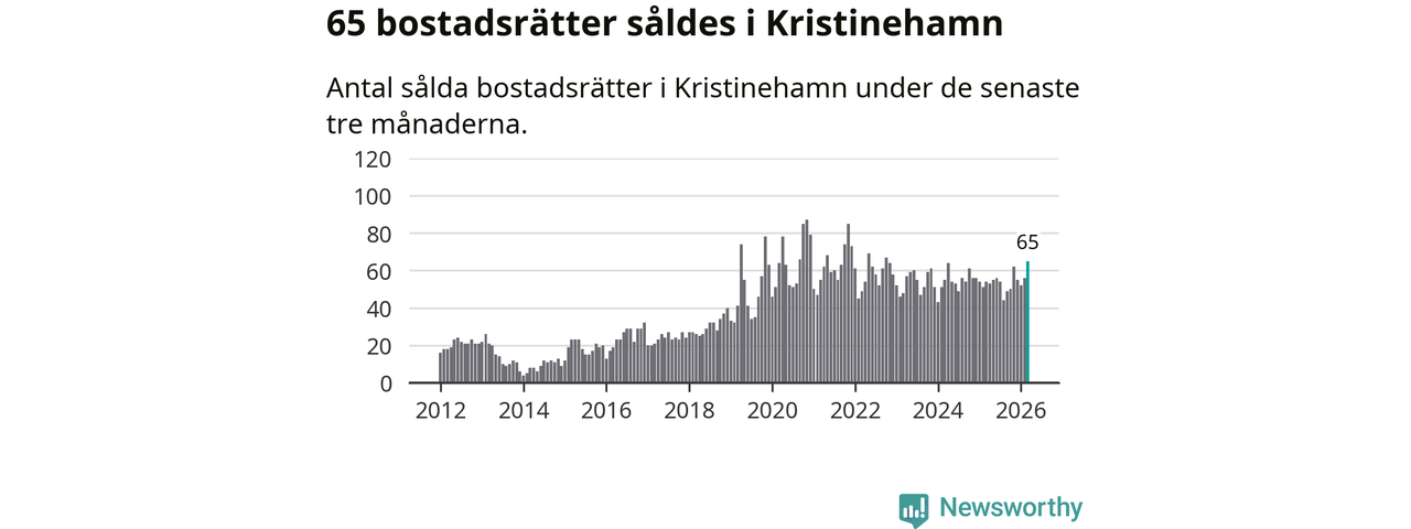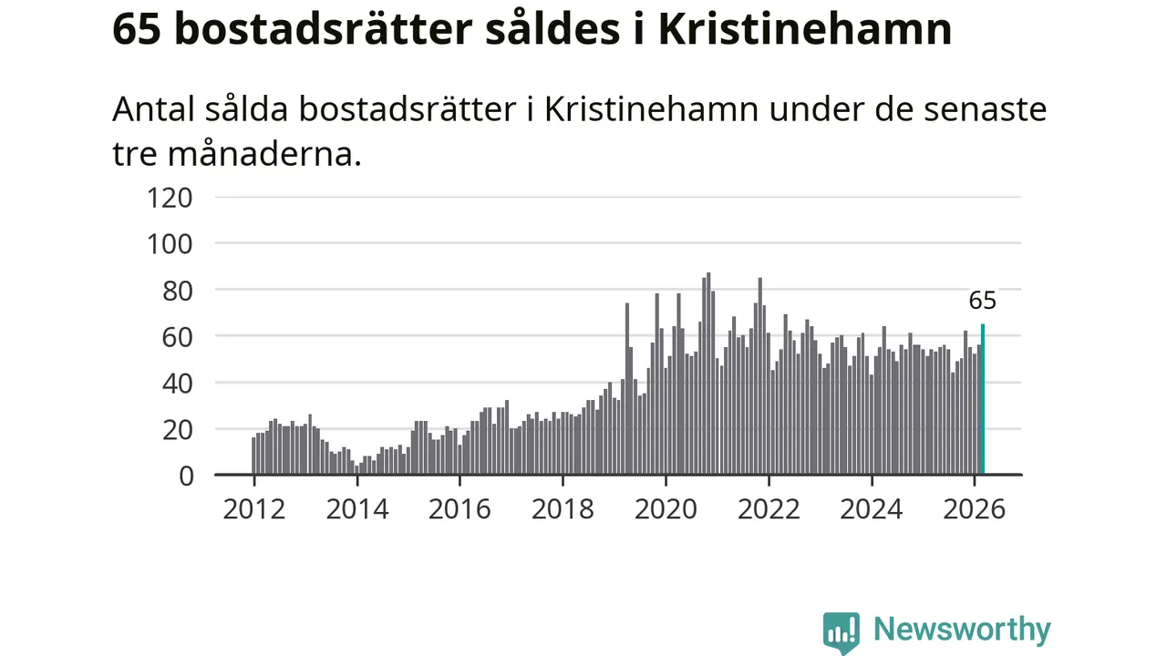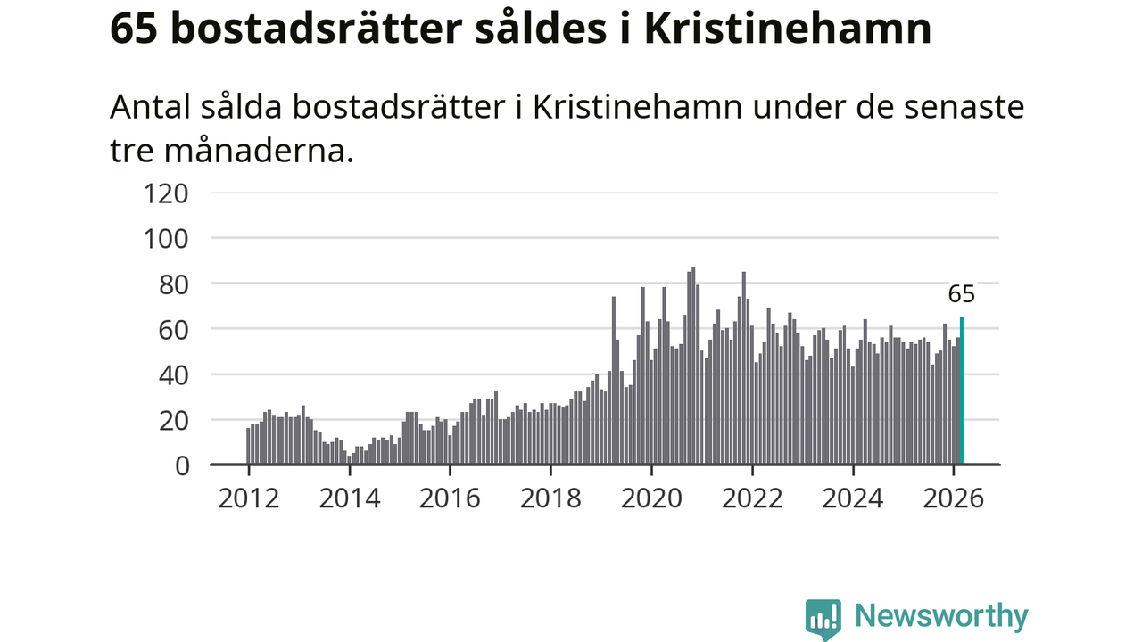 Mellan januari och mars såldes 65 bostadsrätter i Kristinehamns kommun. Det är fler än någon tremånadersperiod sedan 2022.