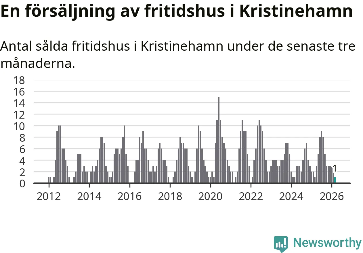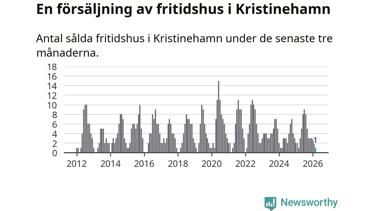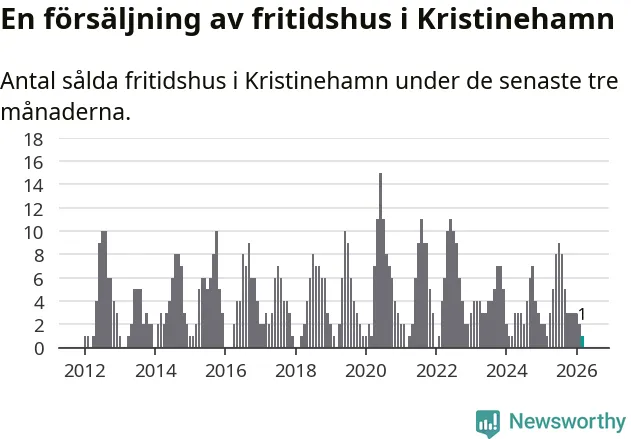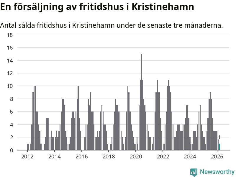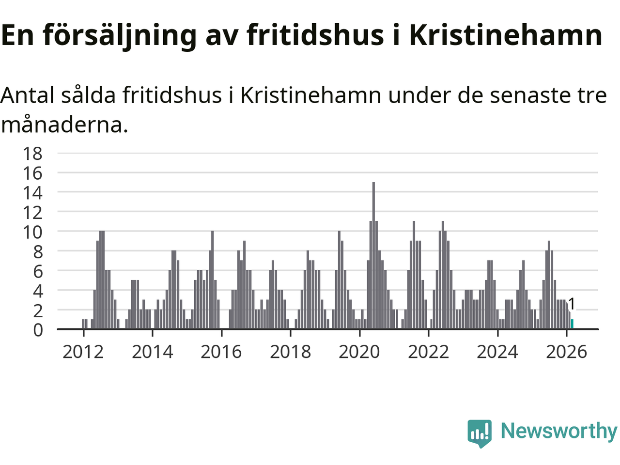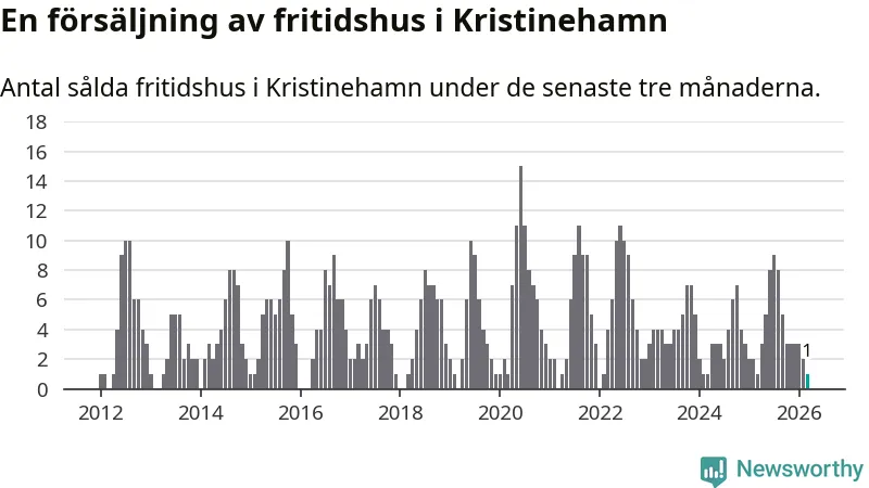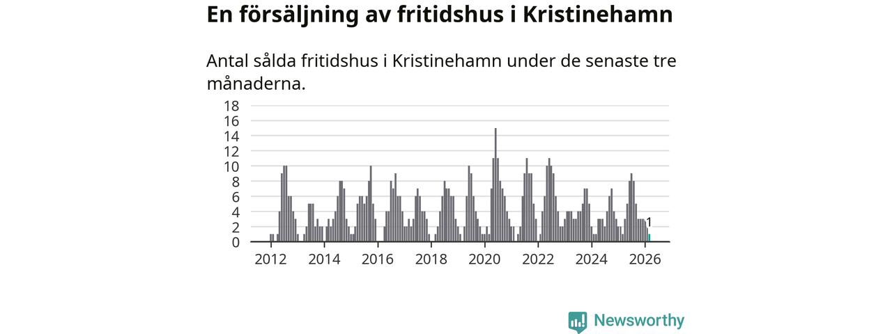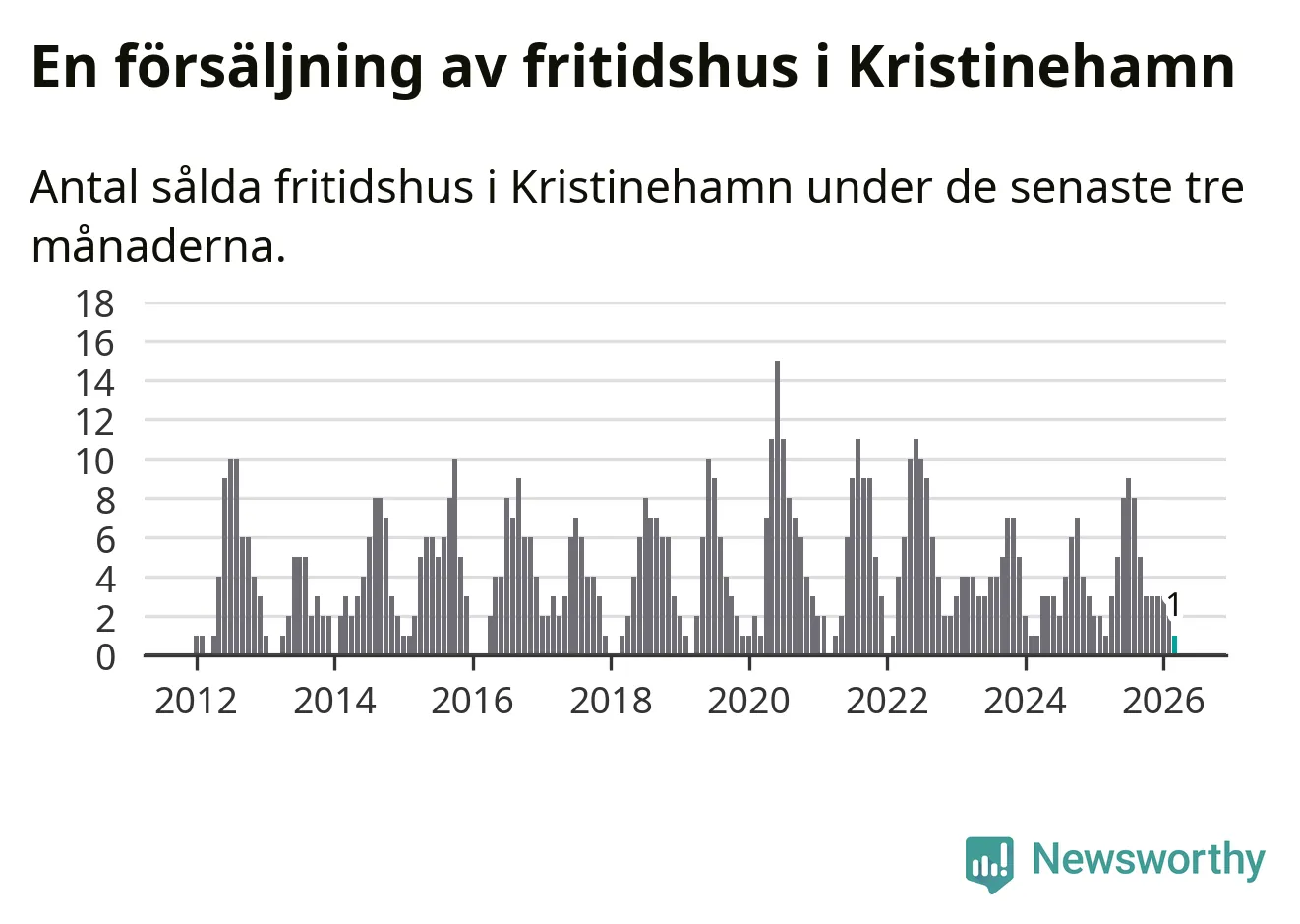 Mellan januari och mars gjordes sammanlagt en affär med fritidshus i Kristinehamns kommun. Det är lika många affärer som vid motsvarande tid i fjol.