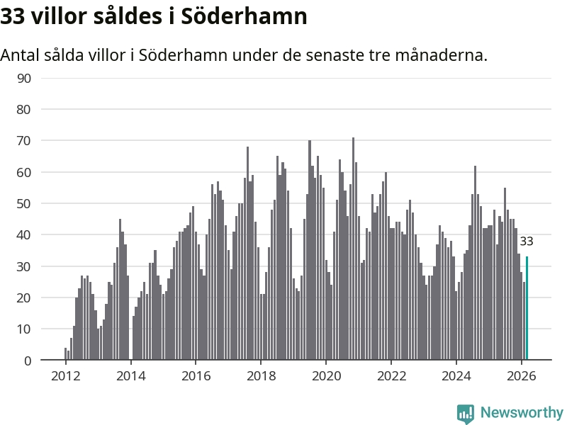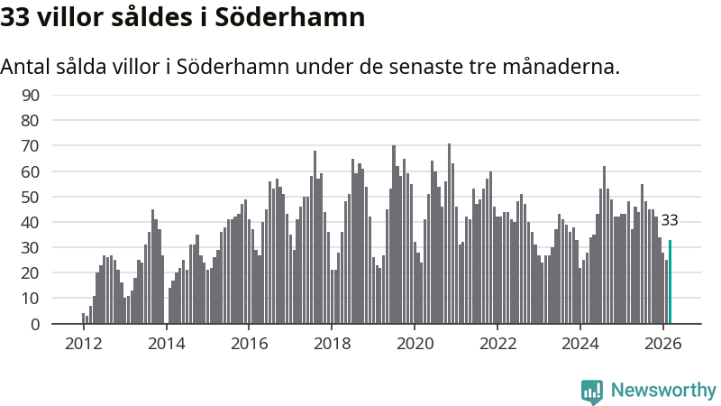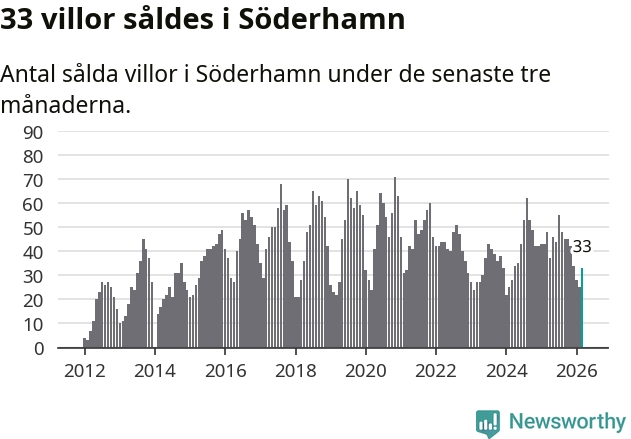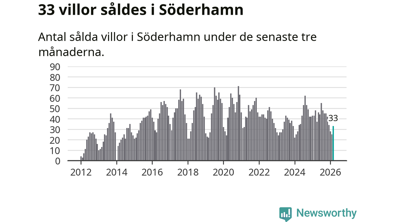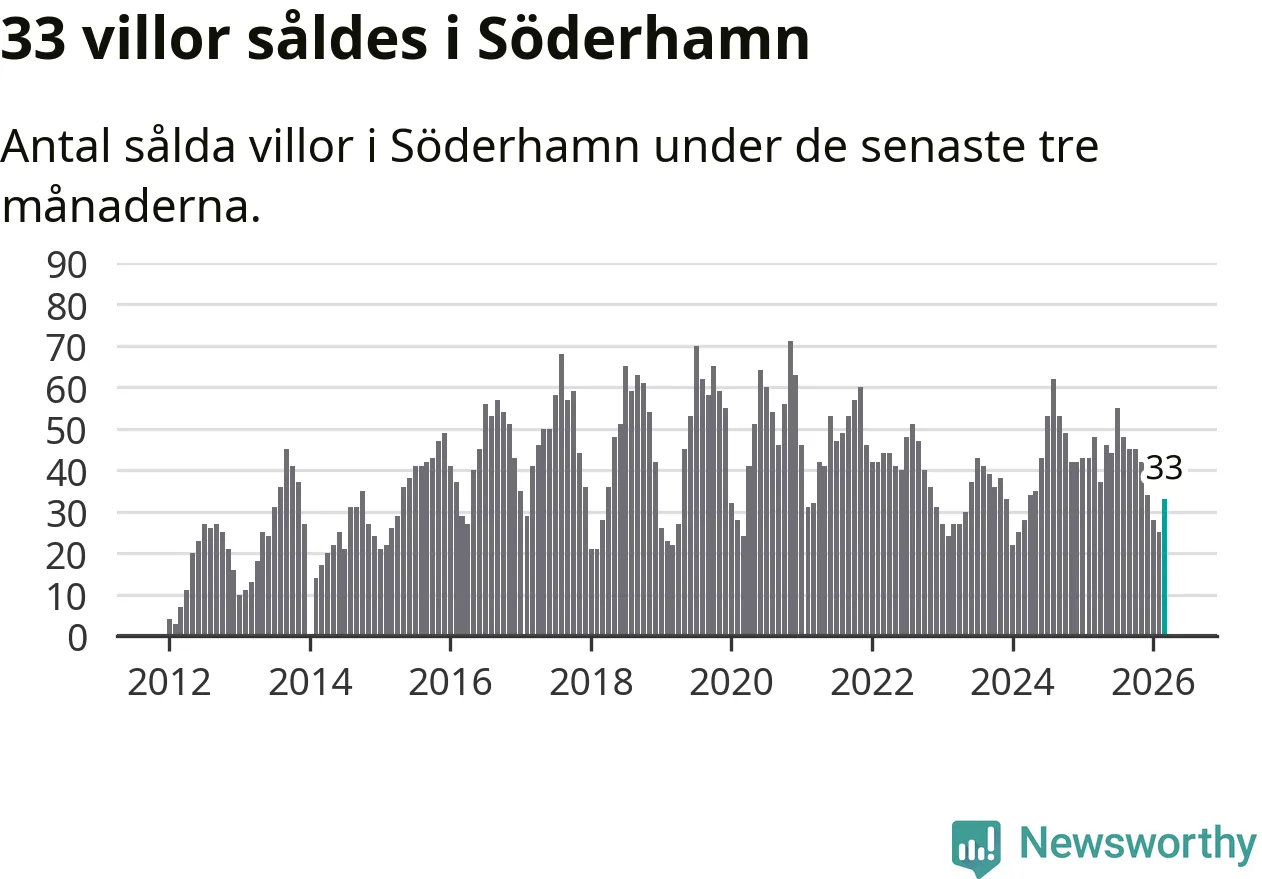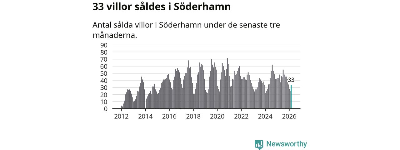 Sammanlagt såldes 33 villor i Söderhamns kommun mellan januari och mars till ett genomsnittligt pris på 1,8 miljoner kronor. I fjol gjordes 48 affärer vid den här tiden på året.