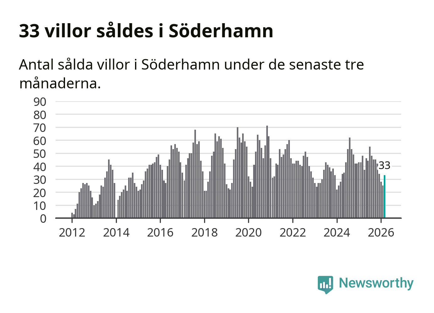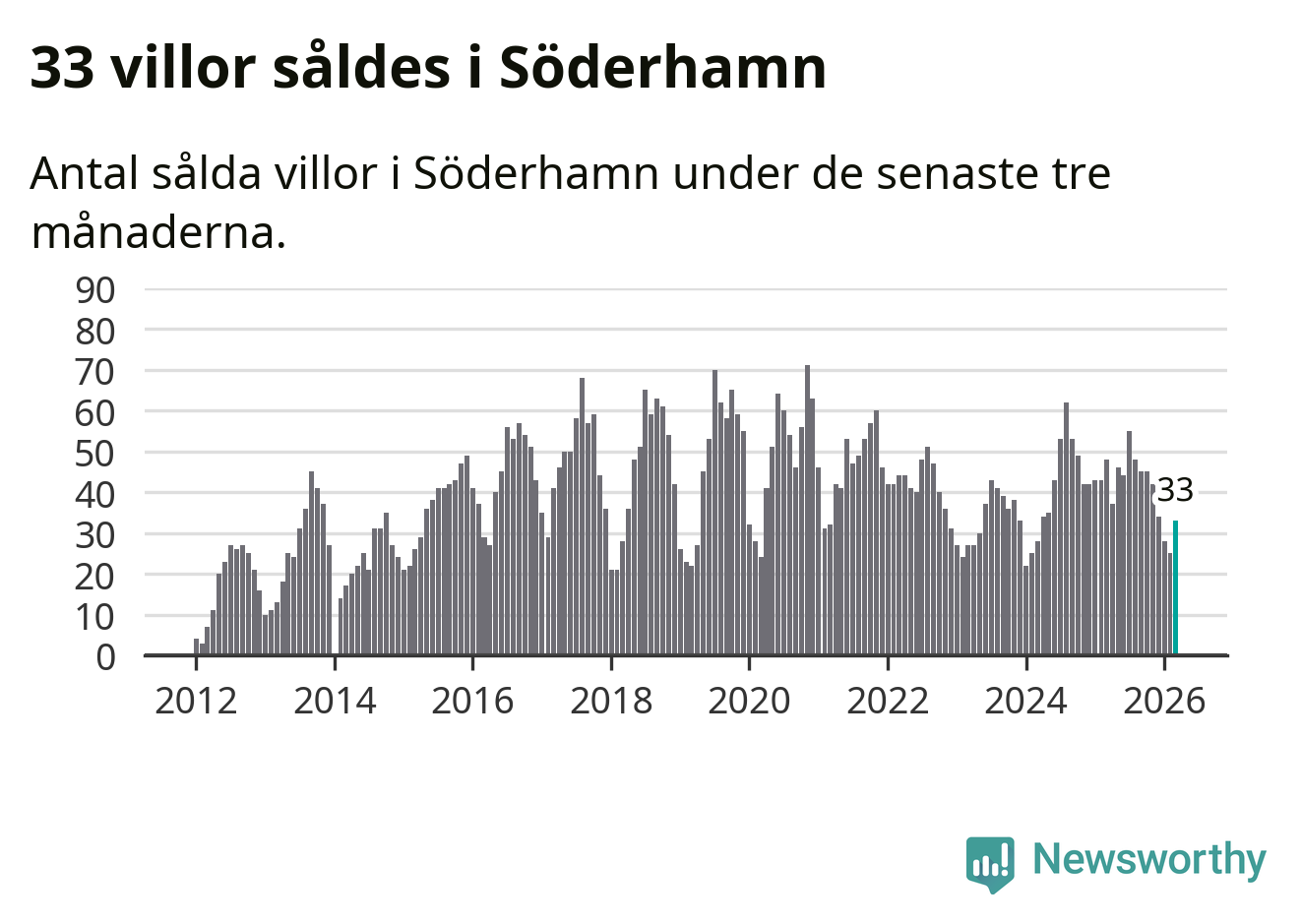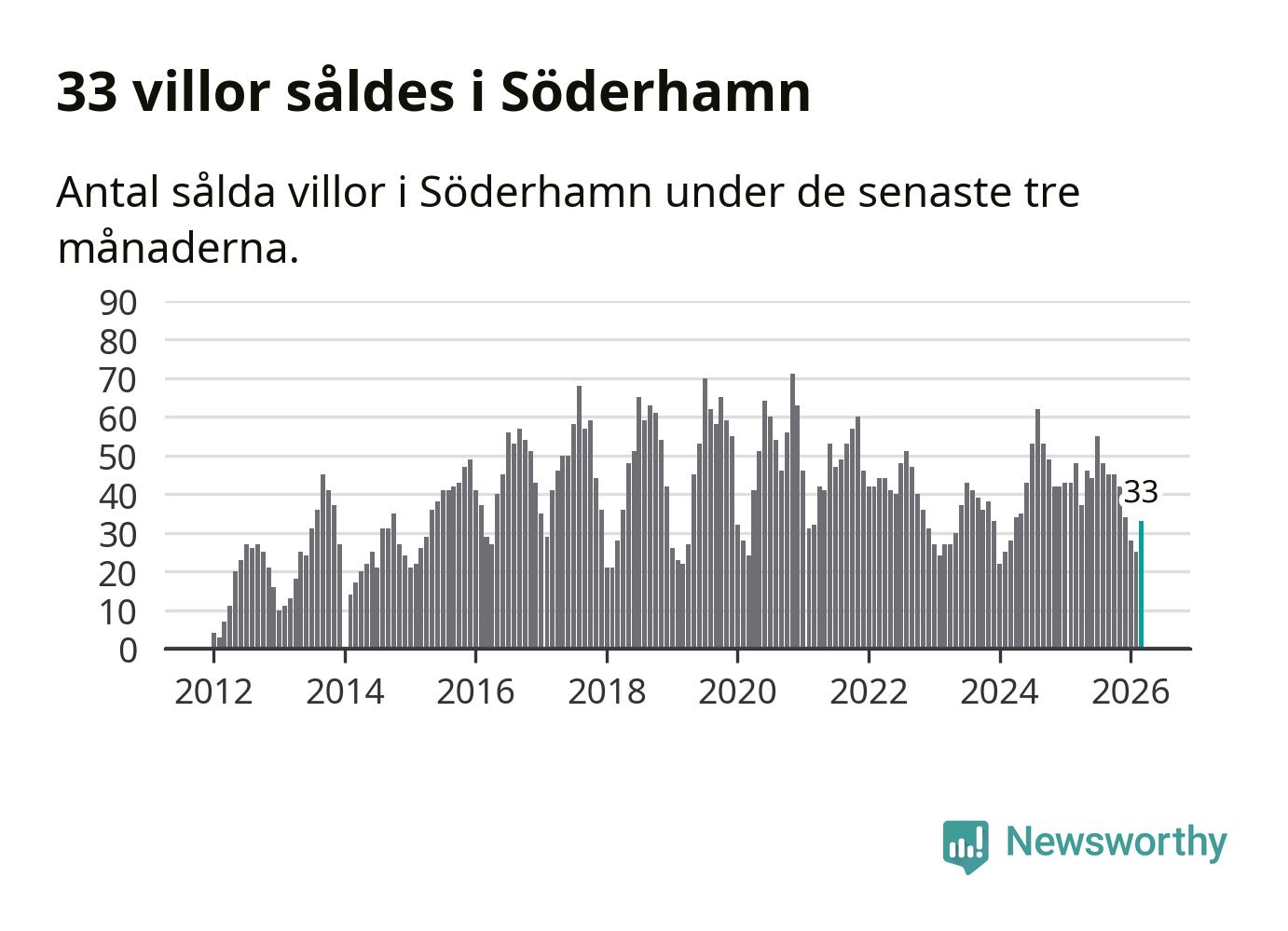 Graf: Antal sålda villor i Söderhamns kommun