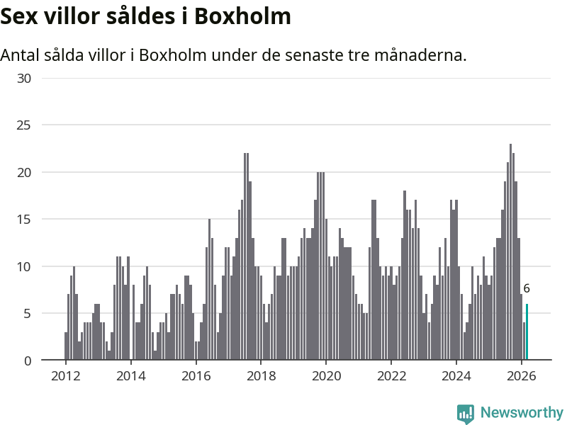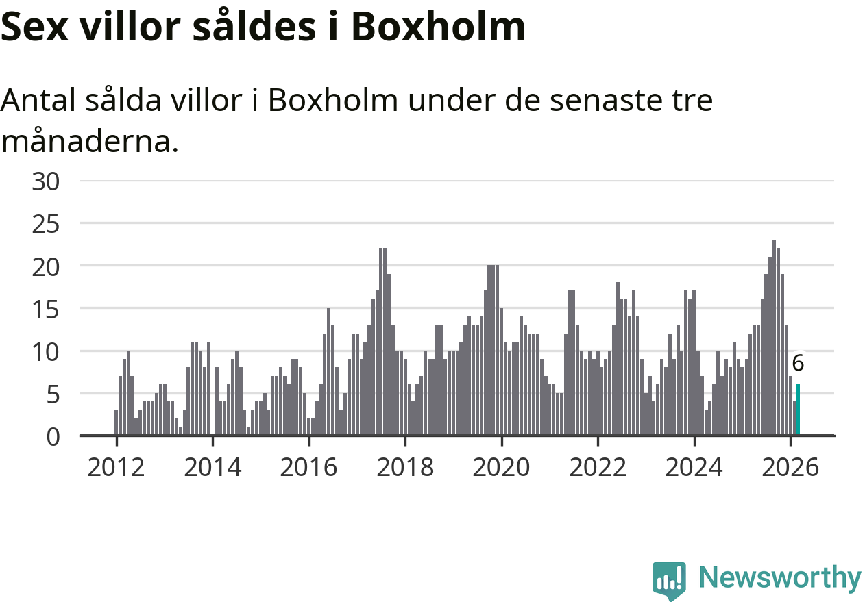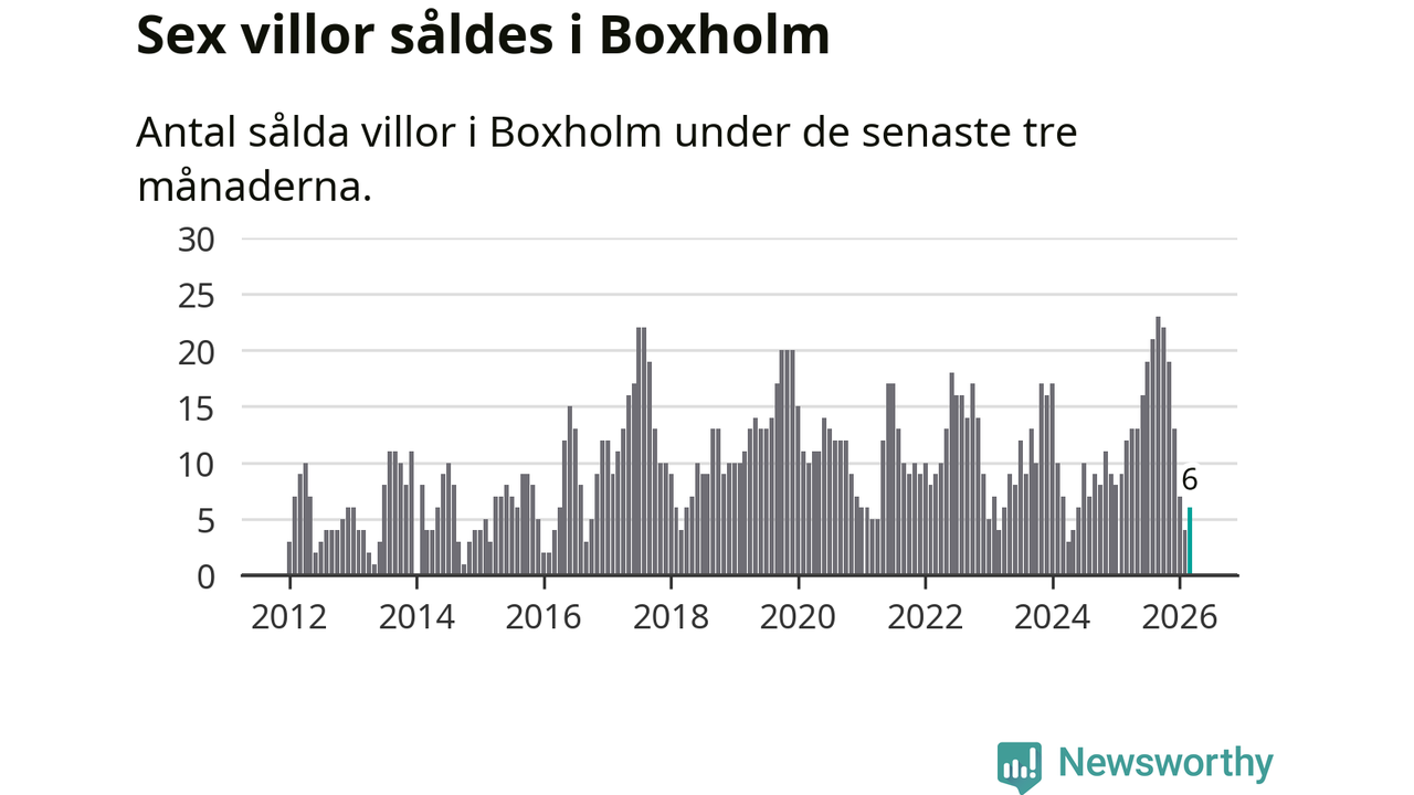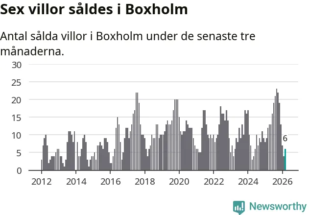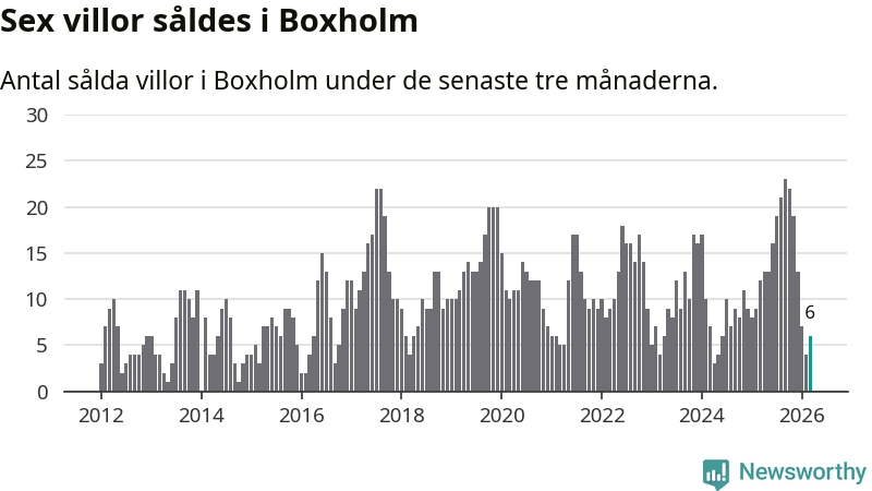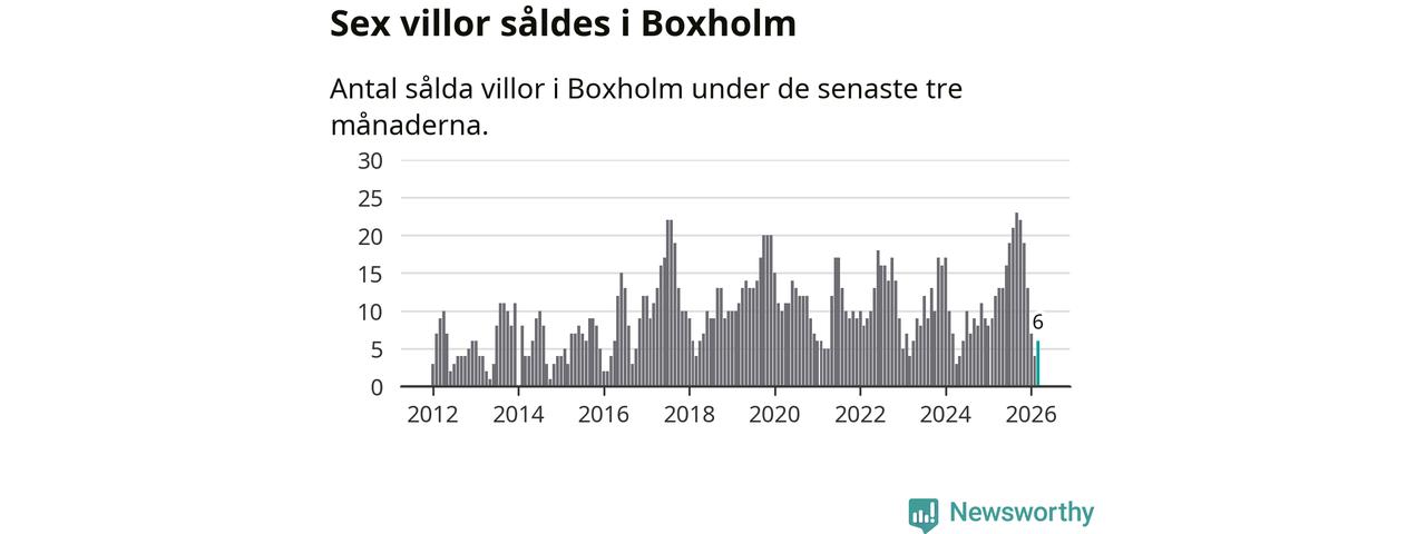 Mellan januari och mars gjordes sammanlagt sex affärer med villor i Boxholms kommun. Det kan jämföras med tolv vid motsvarande tid i fjol.
