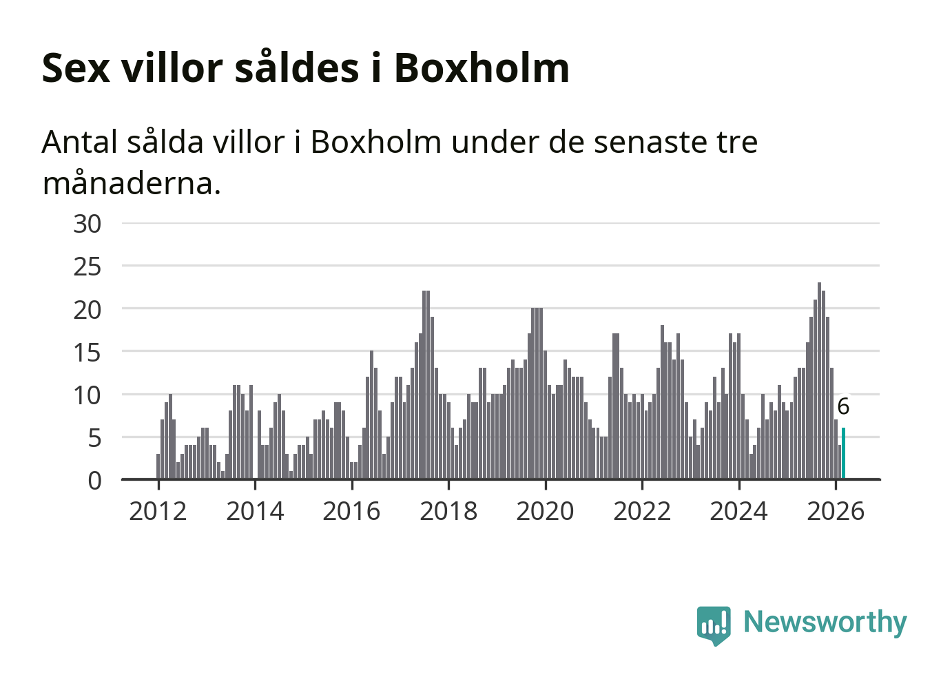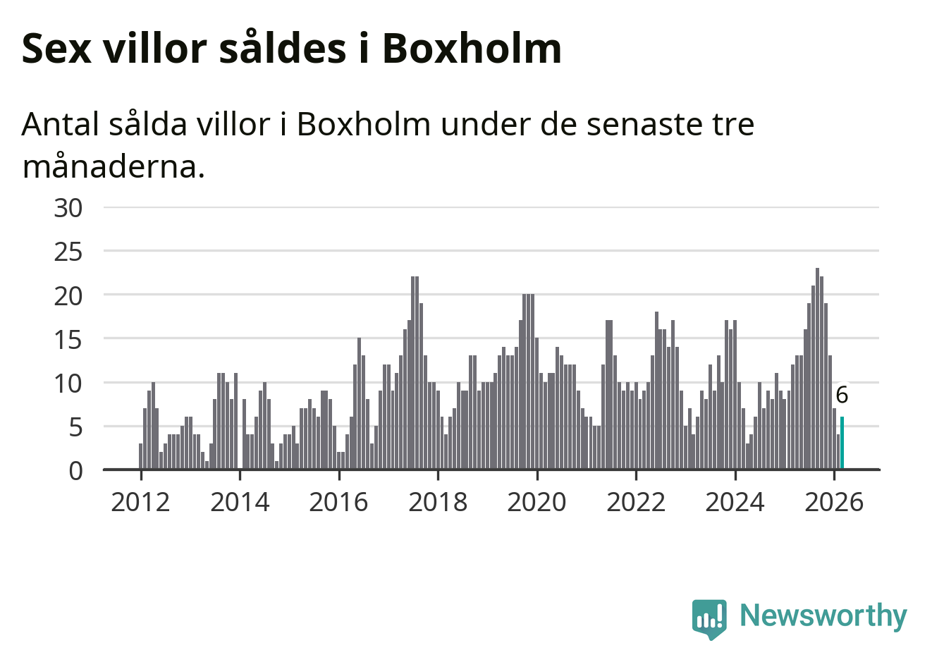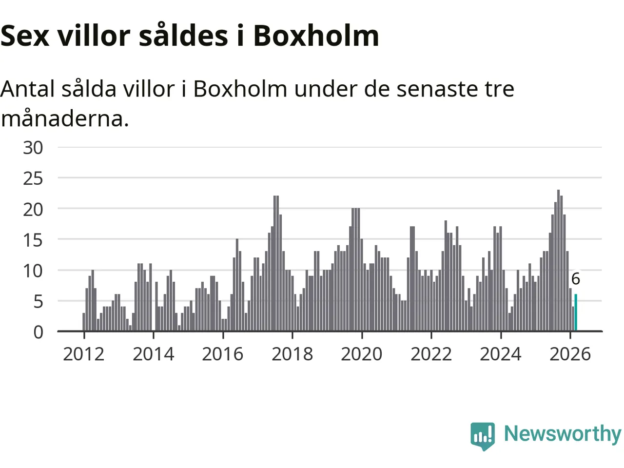 Mellan januari och mars gjordes sammanlagt sex affärer med villor i Boxholms kommun. Det kan jämföras med tolv vid motsvarande tid i fjol.