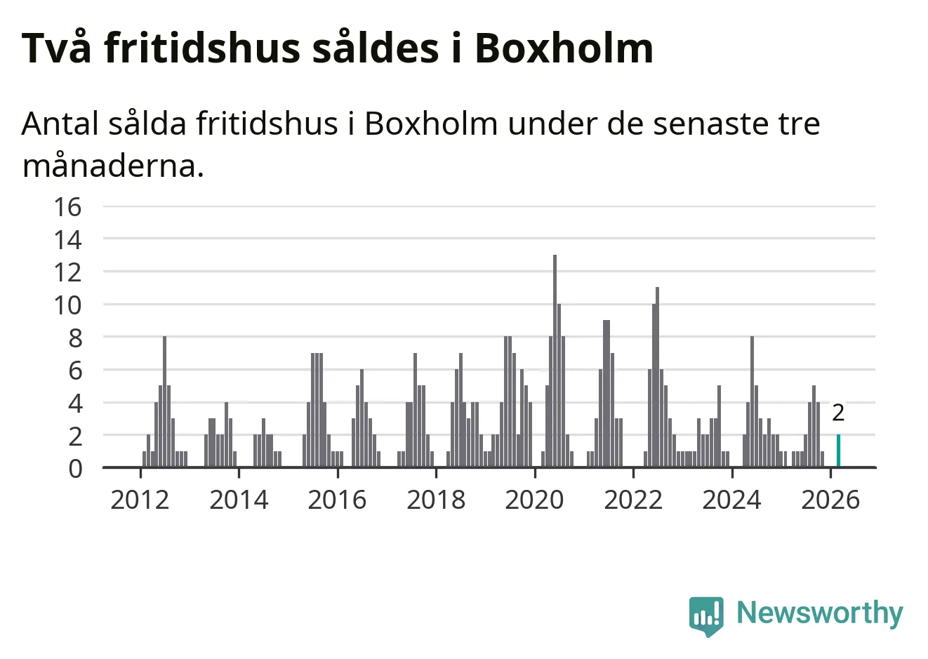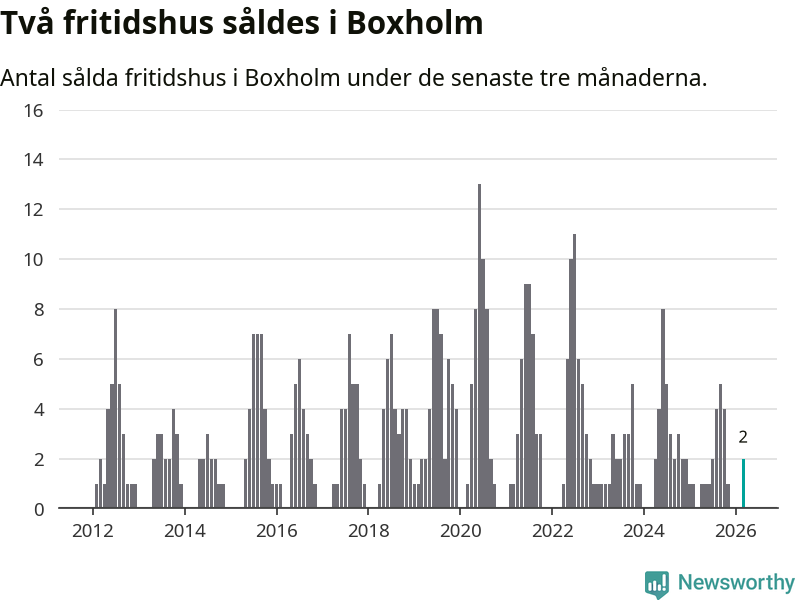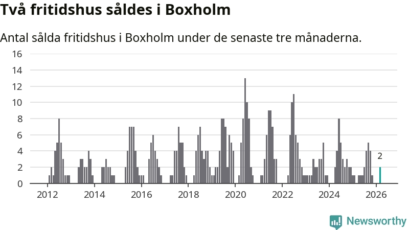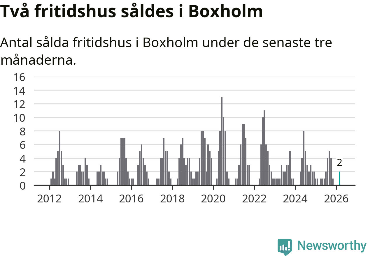 Mellan januari och mars gjordes sammanlagt två affärer med fritidshus i Boxholms kommun.
