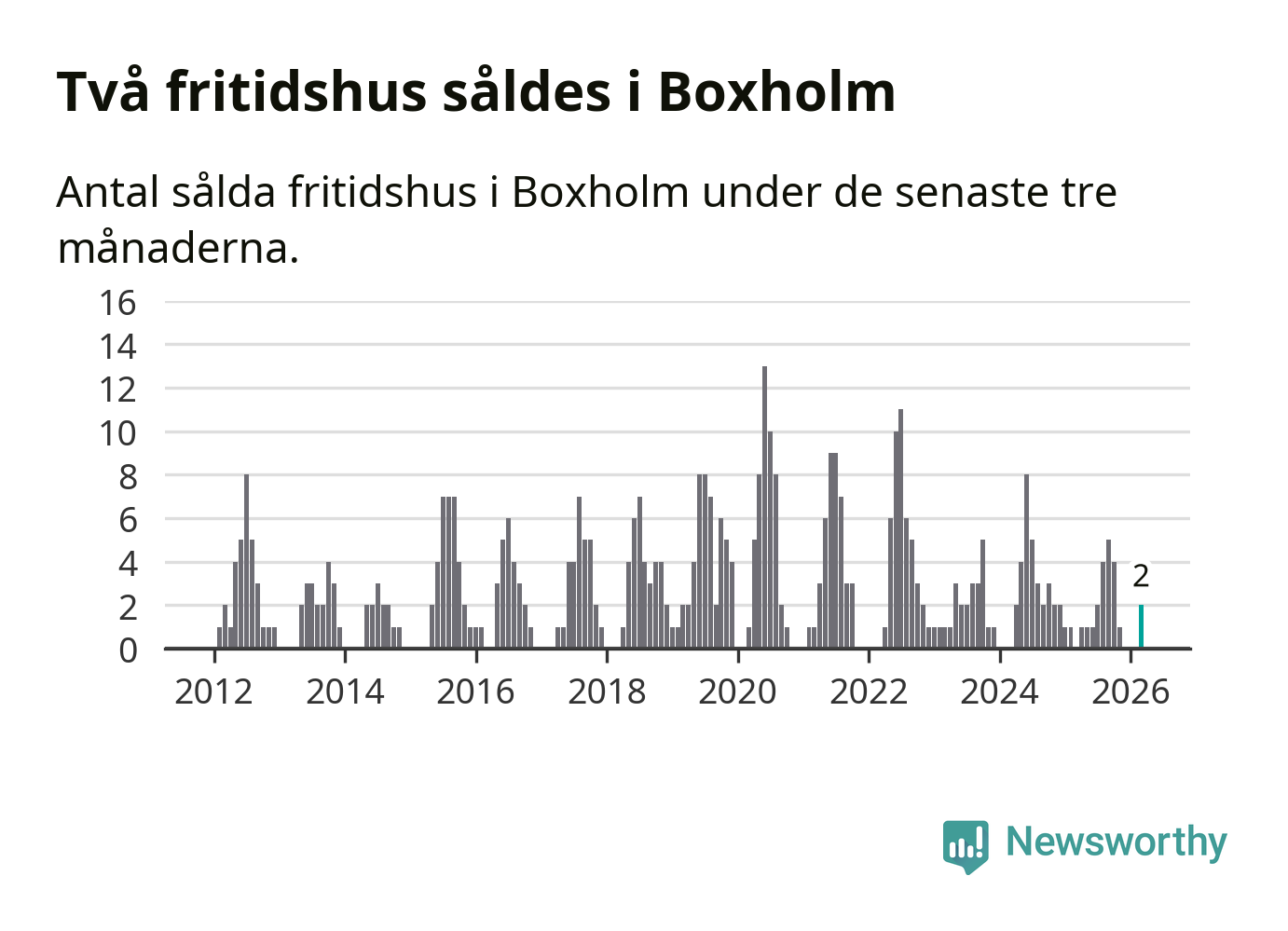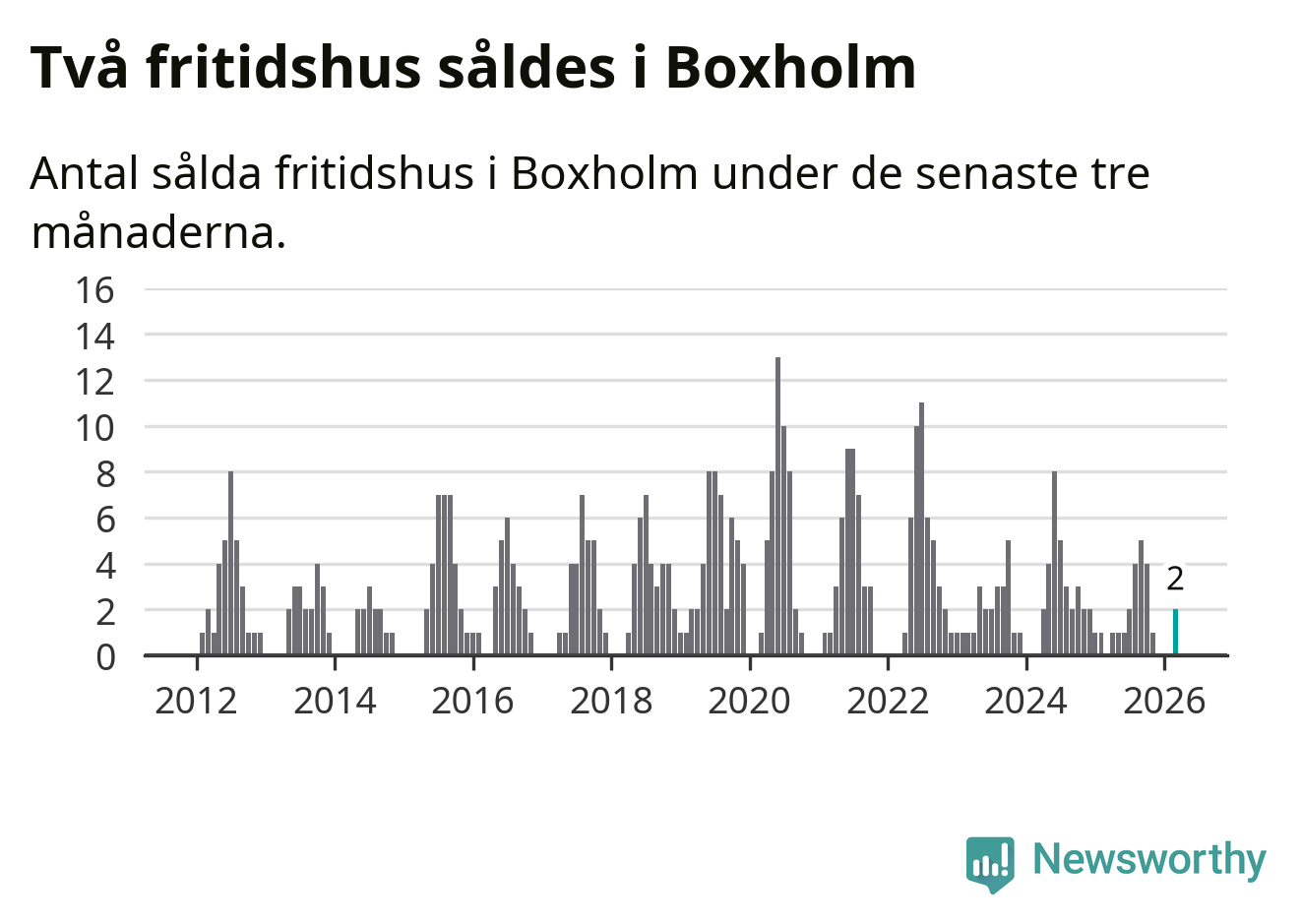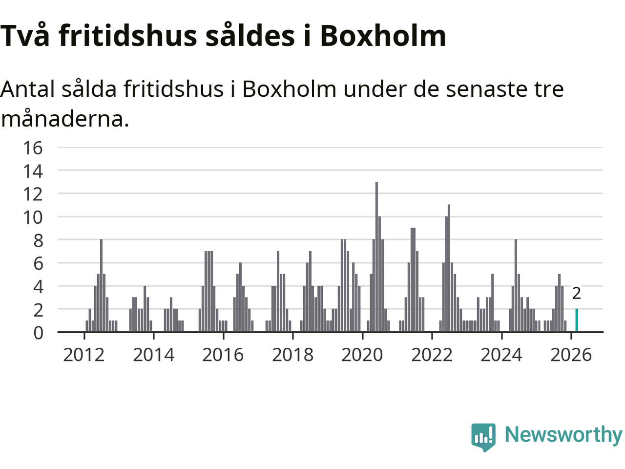 Mellan januari och mars gjordes sammanlagt två affärer med fritidshus i Boxholms kommun.