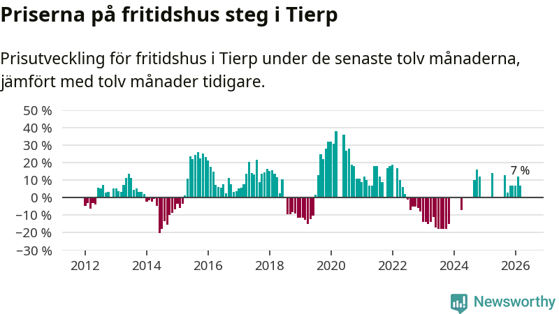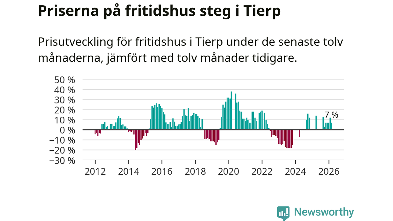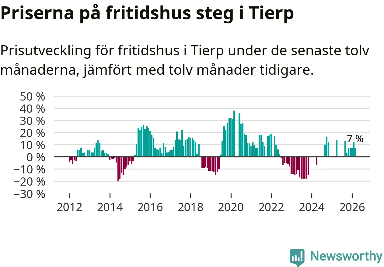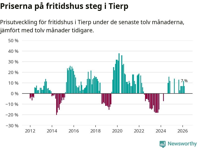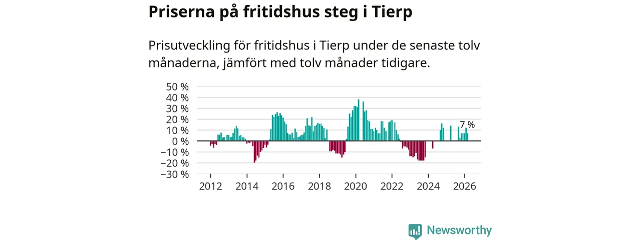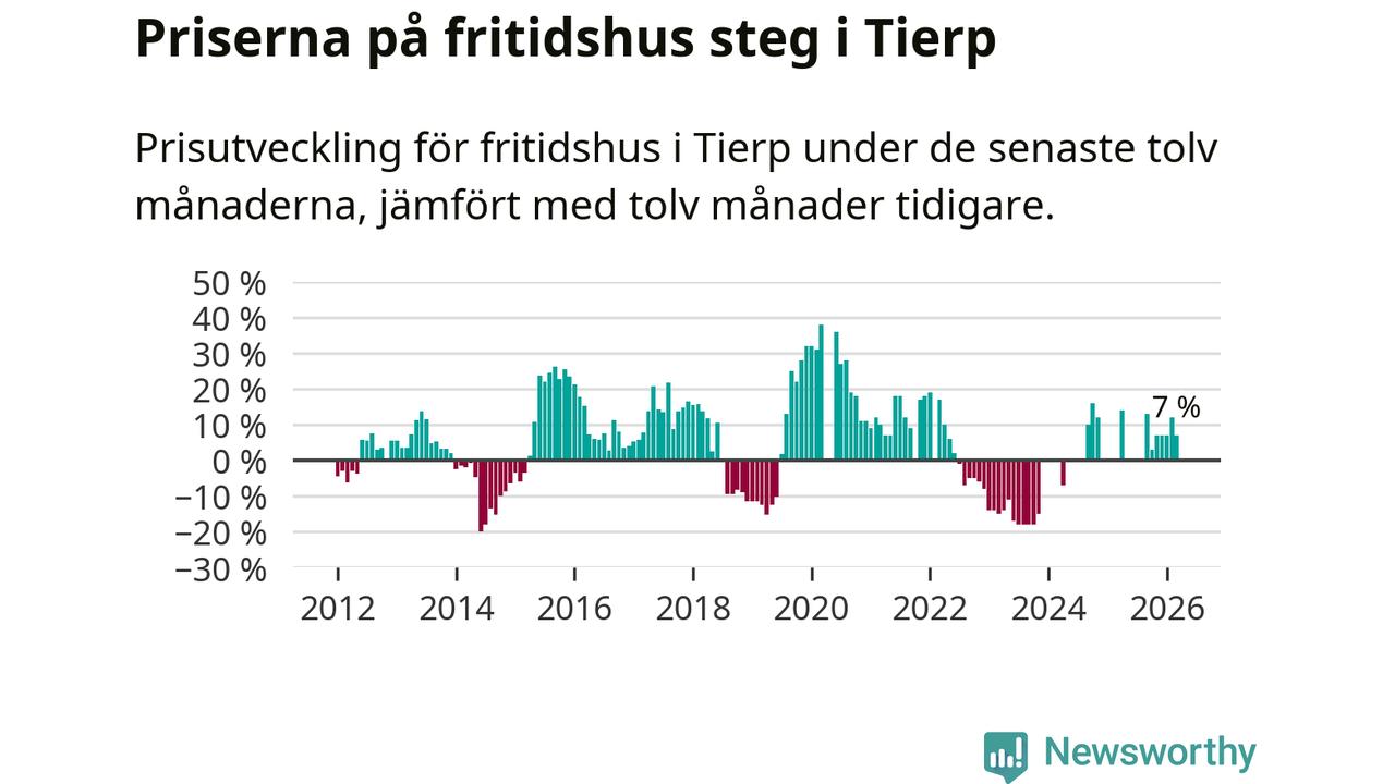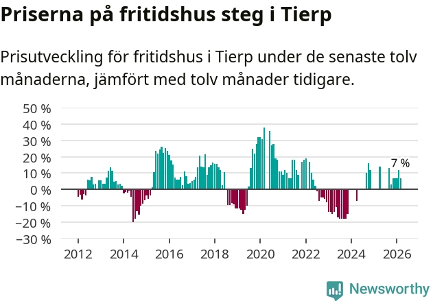 Priserna på fritidshus har gått upp i Tierps kommun. Medelpriset på försäljningarna under de senaste tolv månaderna visar på en uppgång med 7 procent.