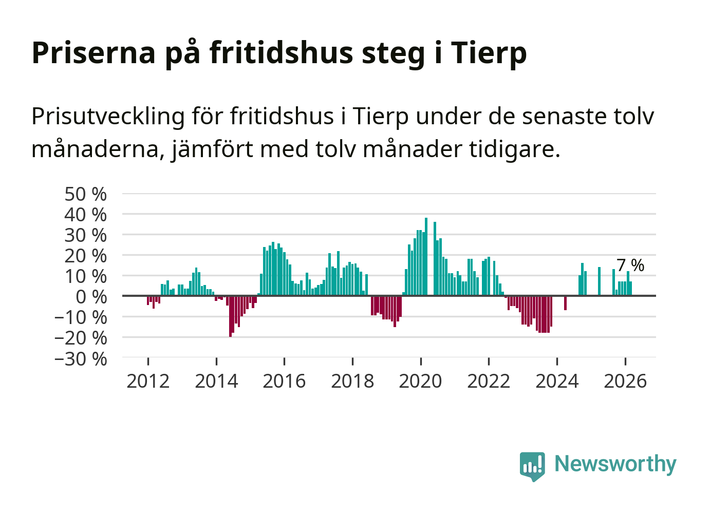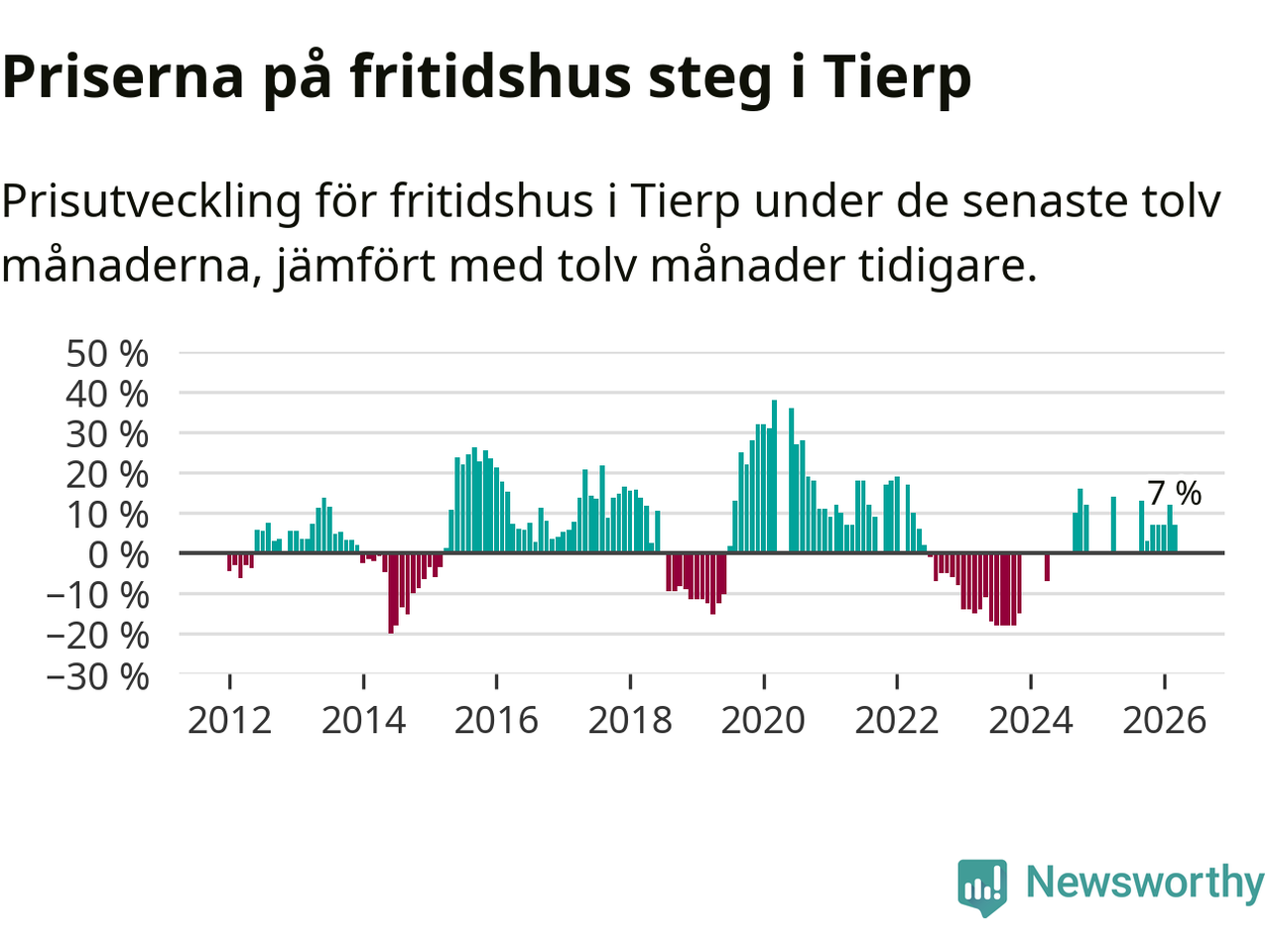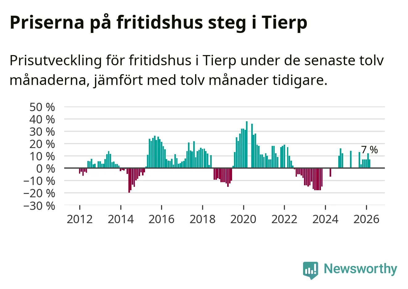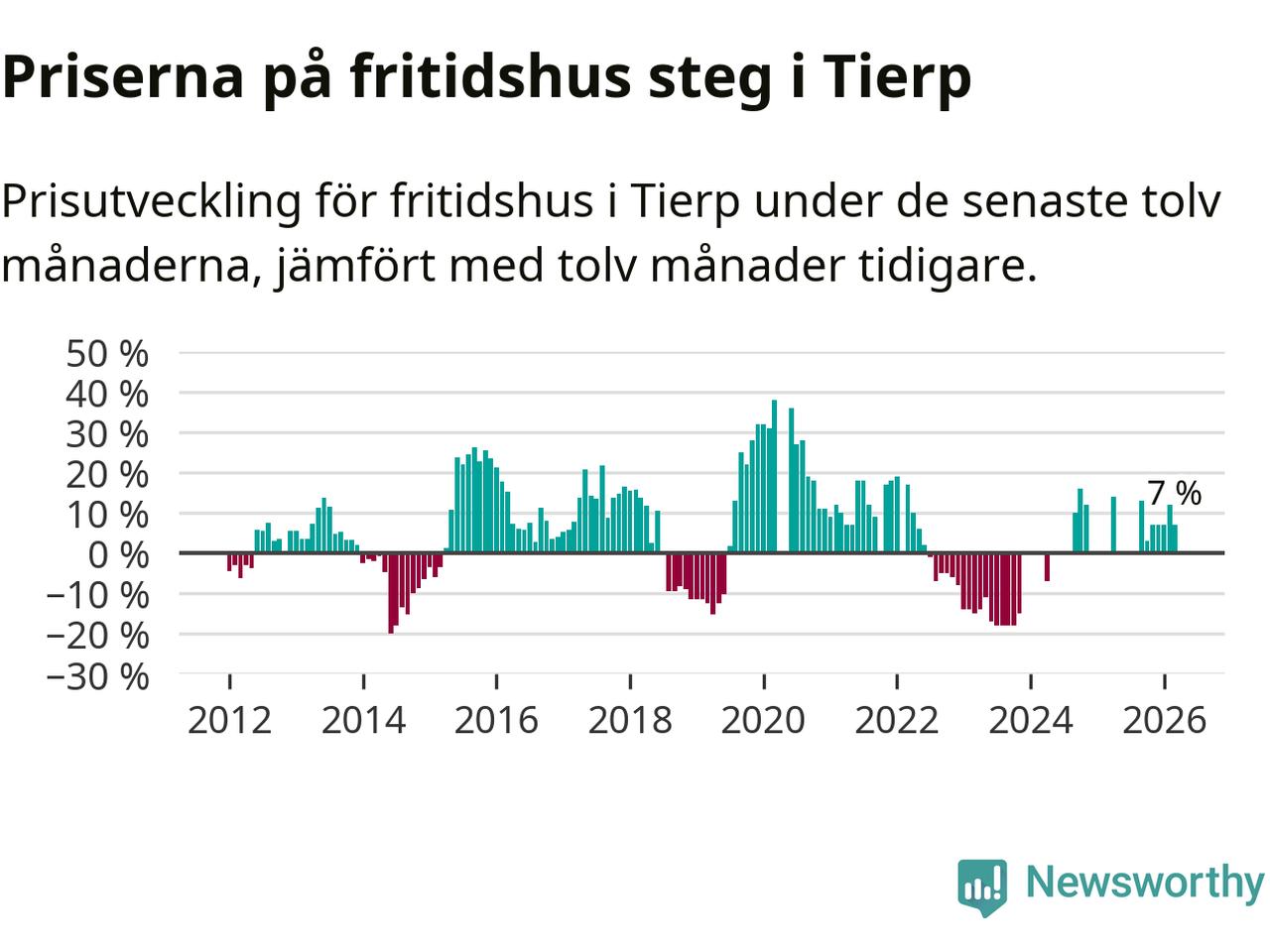 Priserna på fritidshus har gått upp i Tierps kommun. Medelpriset på försäljningarna under de senaste tolv månaderna visar på en uppgång med 7 procent.