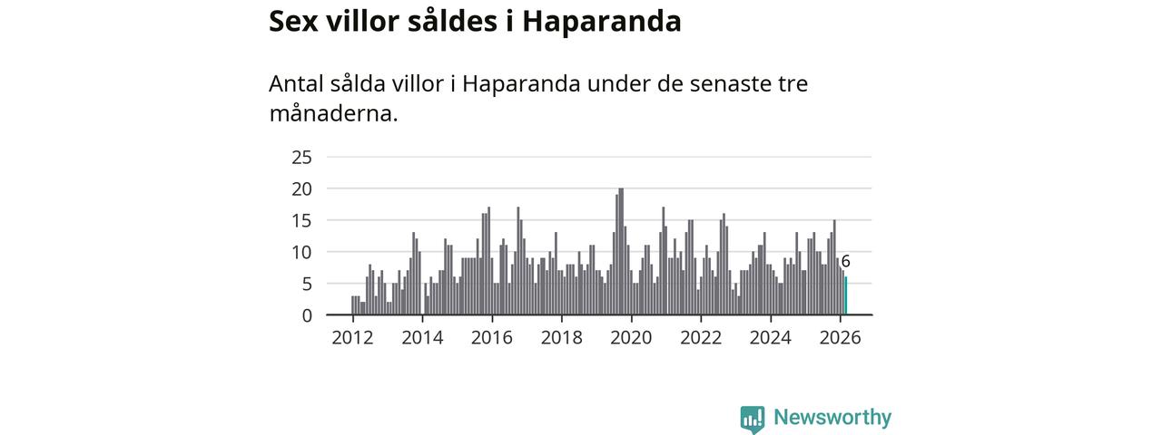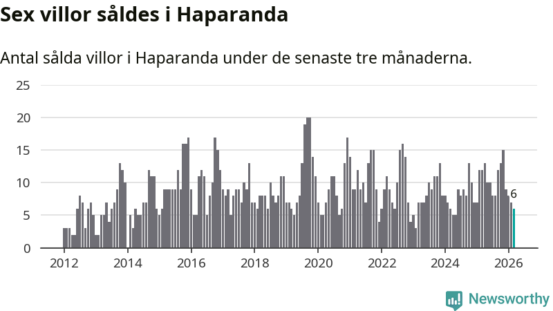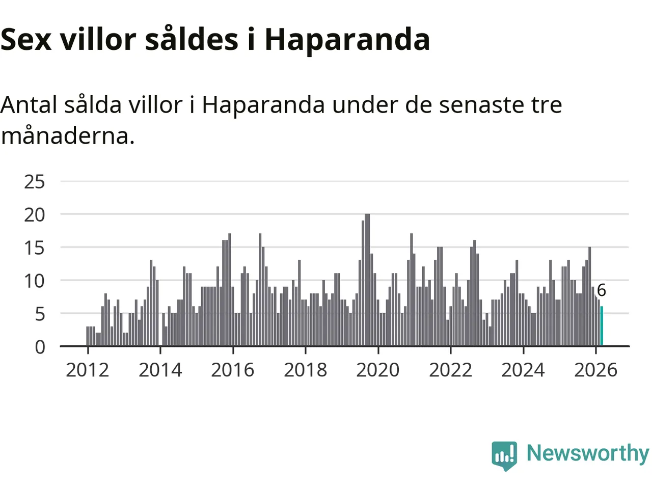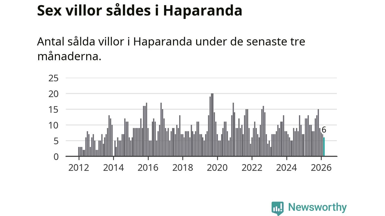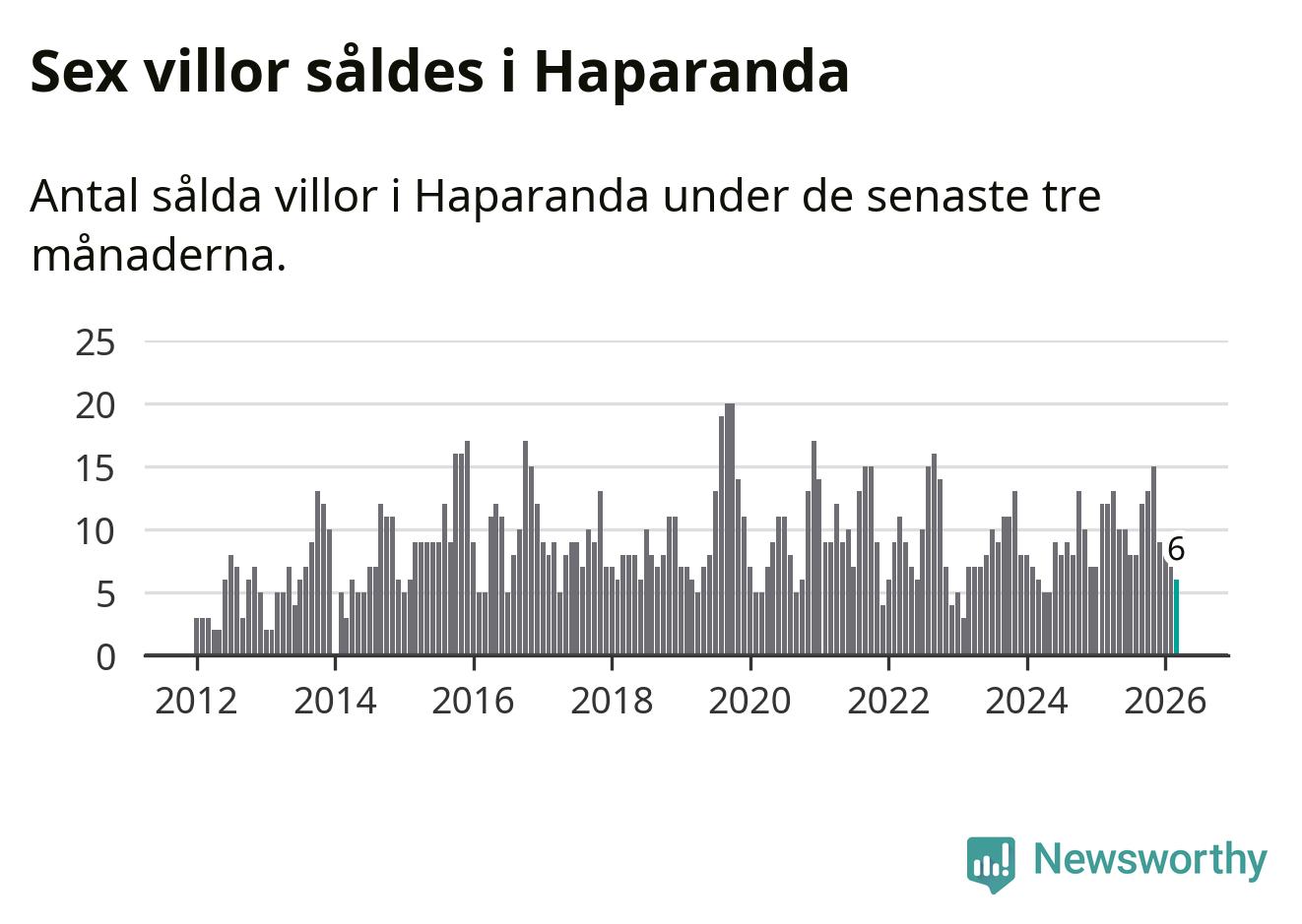 Mellan januari och mars gjordes sammanlagt sex affärer med villor i Haparanda kommun. Det kan jämföras med tolv vid motsvarande tid i fjol.