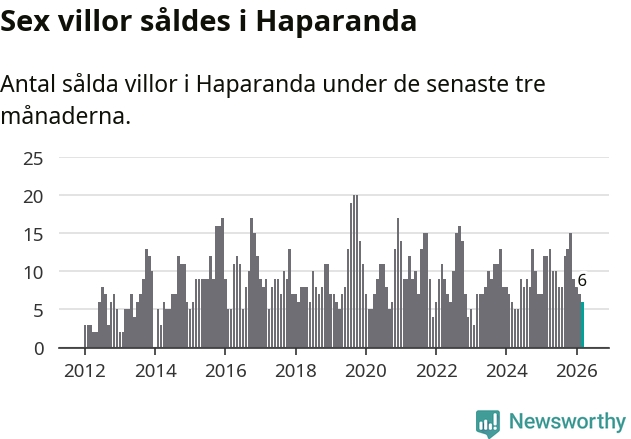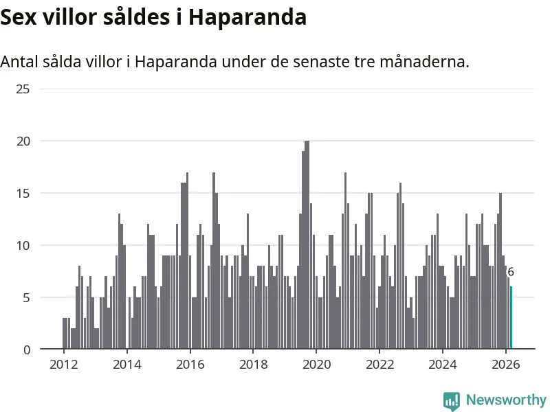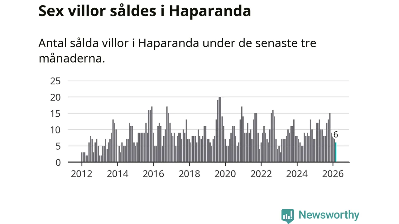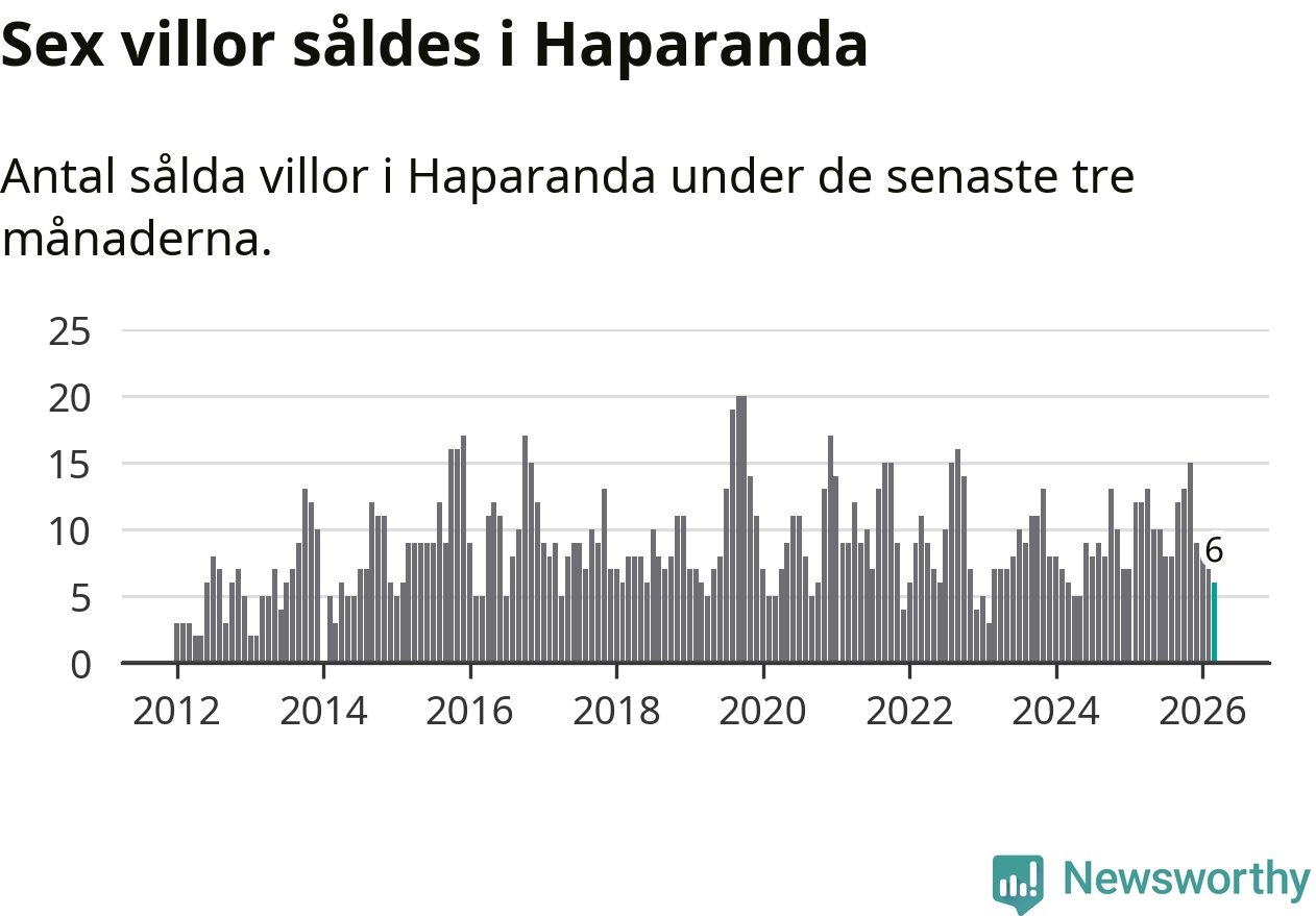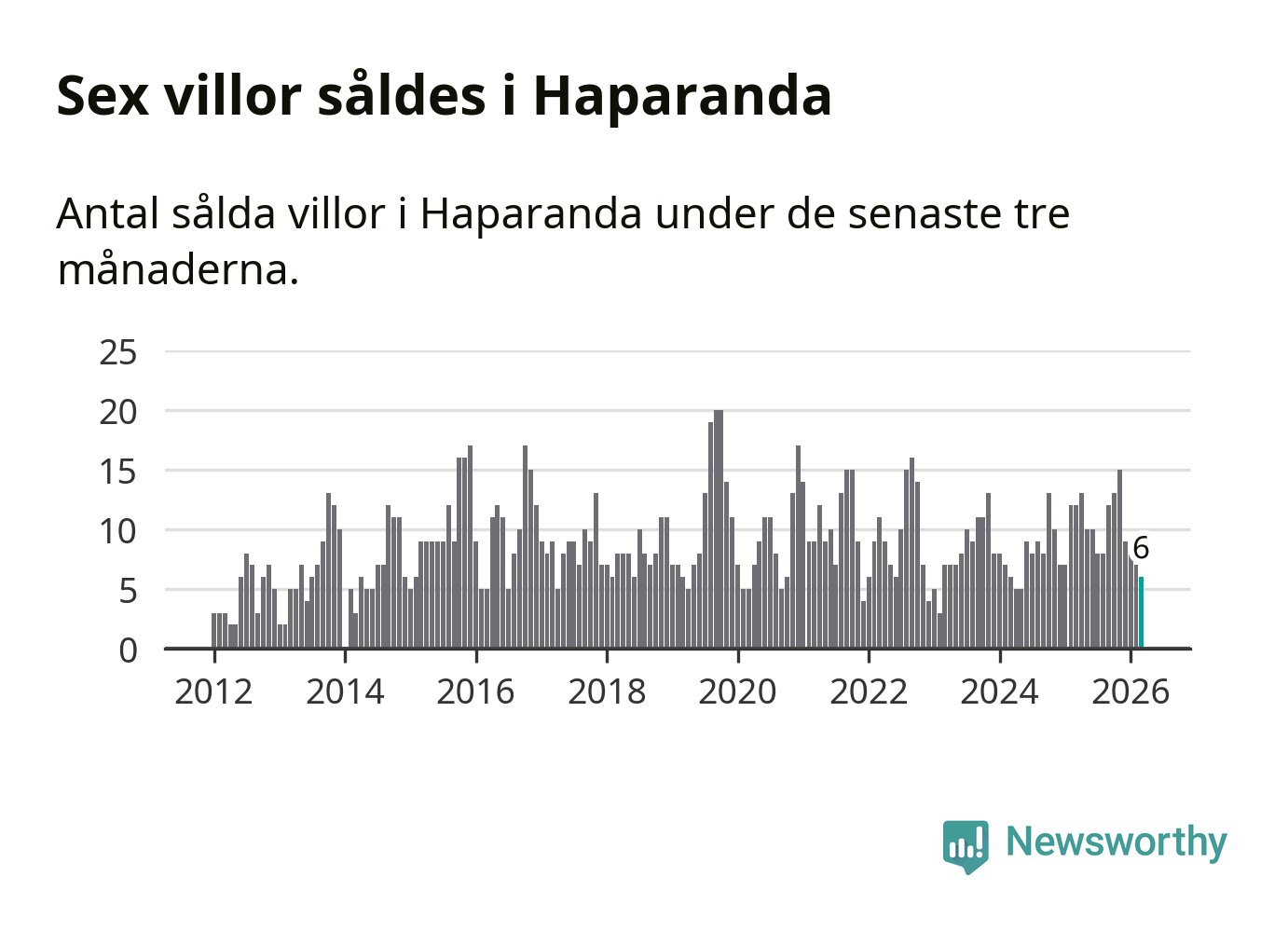 Mellan januari och mars gjordes sammanlagt sex affärer med villor i Haparanda kommun. Det kan jämföras med tolv vid motsvarande tid i fjol.