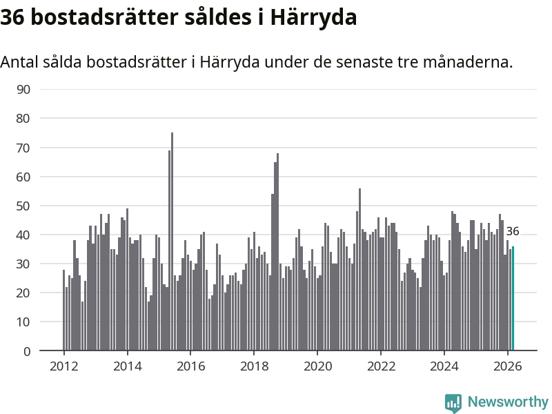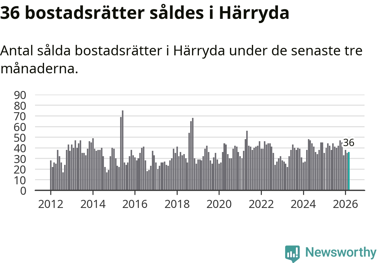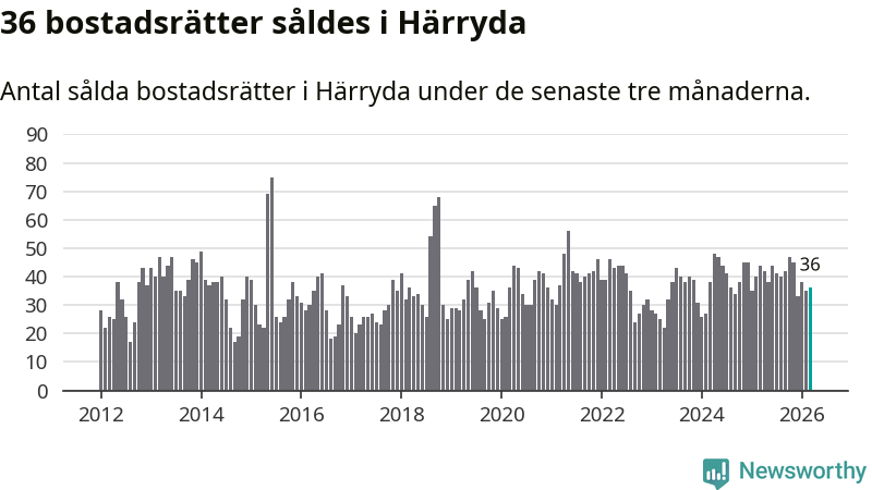 Graf: Antal sålda bostadsrätter i Härryda kommun