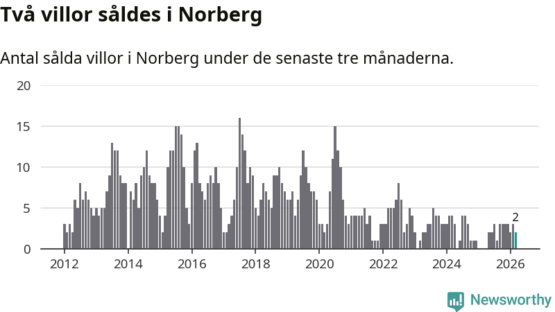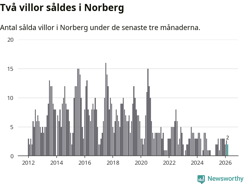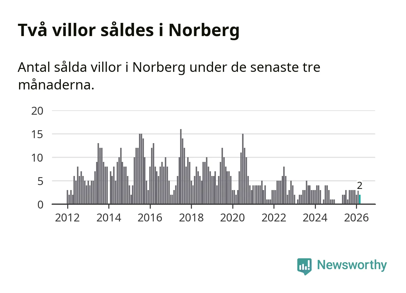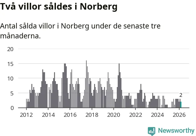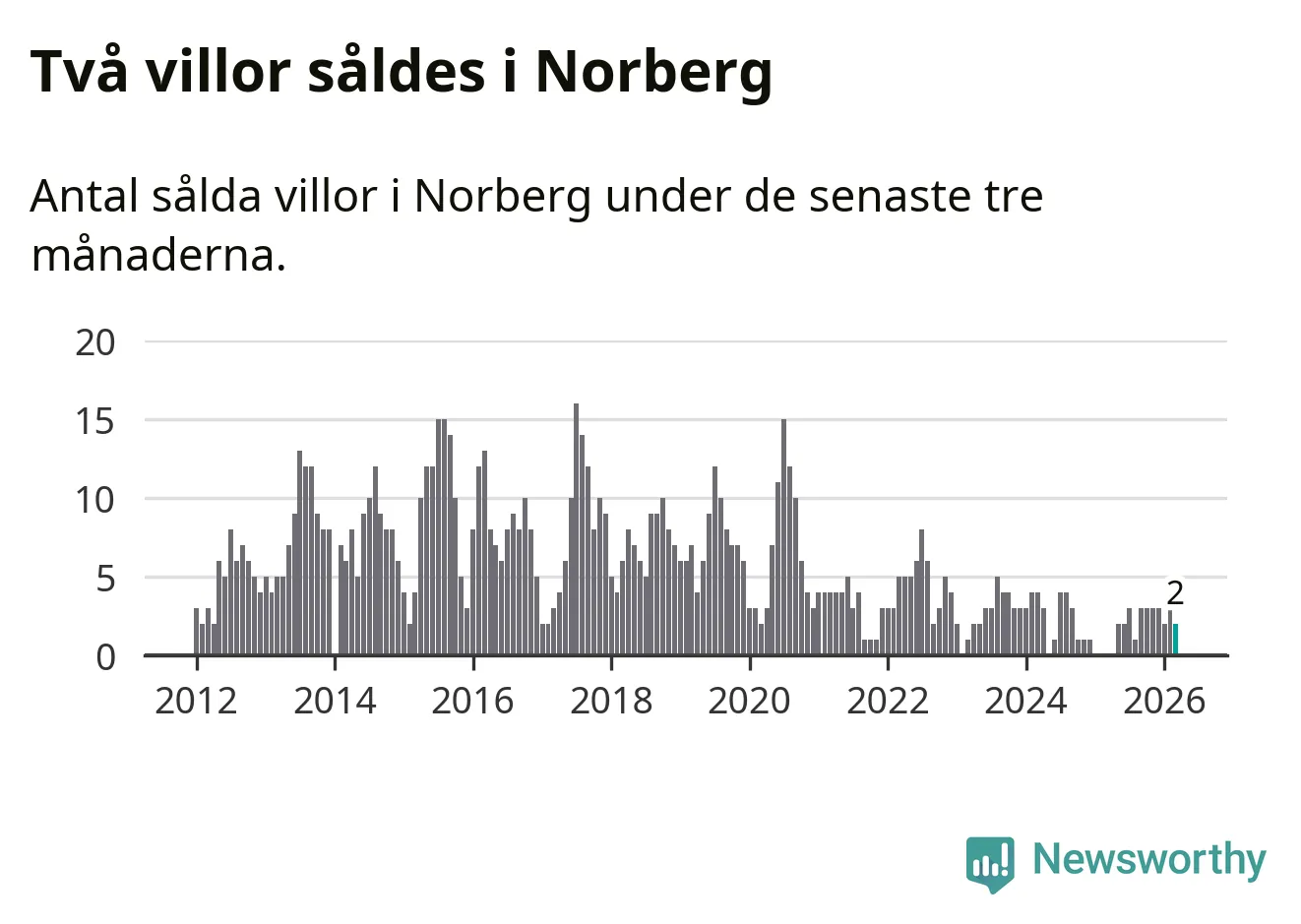 Mellan januari och mars gjordes sammanlagt två affärer med villor i Norbergs kommun.