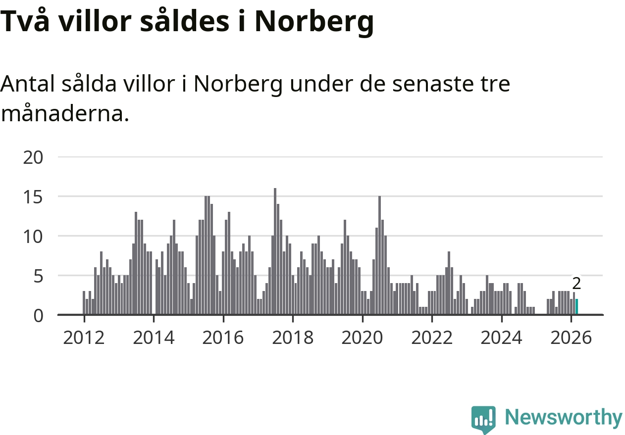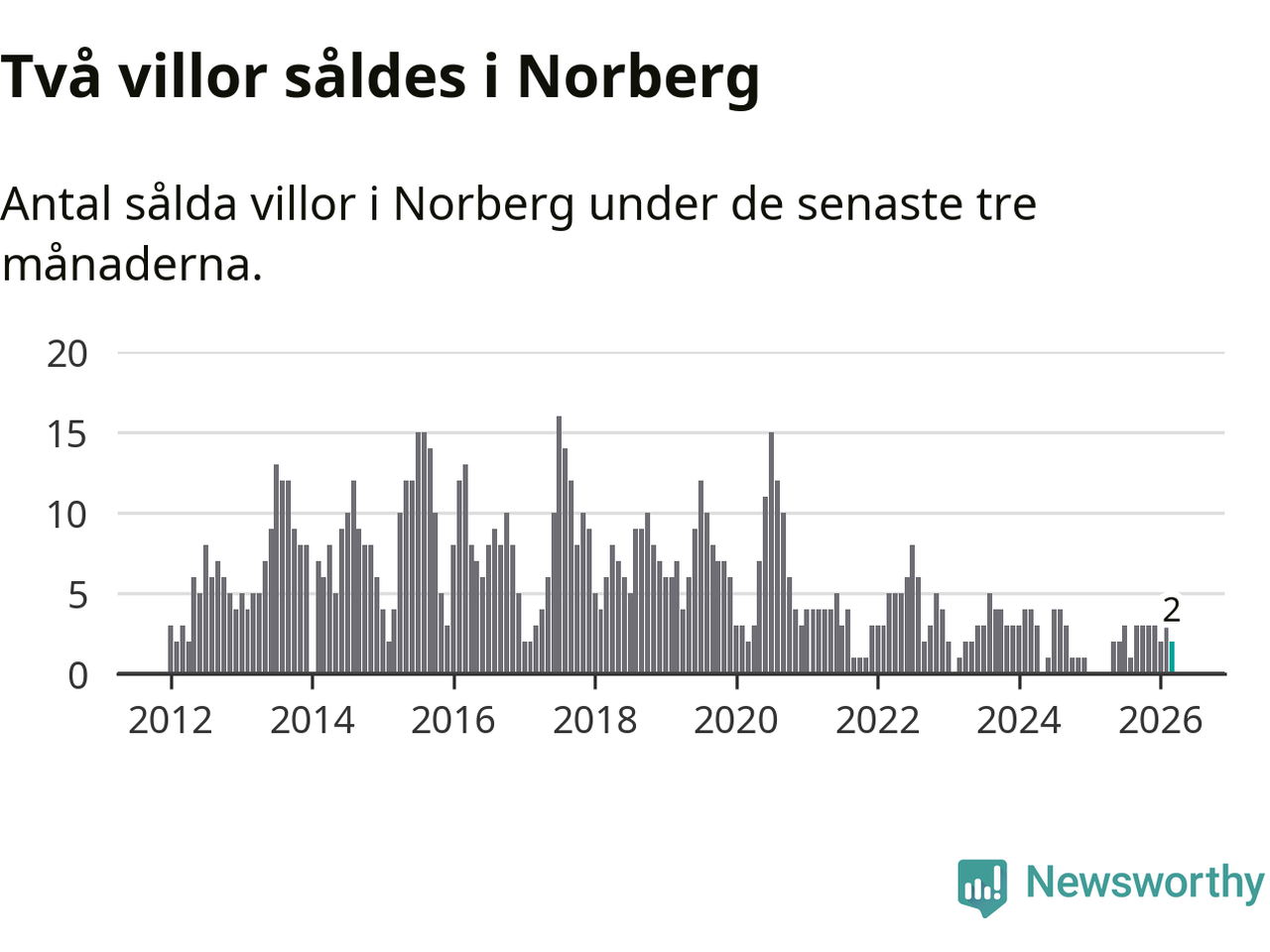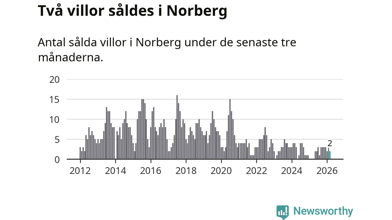 Mellan januari och mars gjordes sammanlagt två affärer med villor i Norbergs kommun.