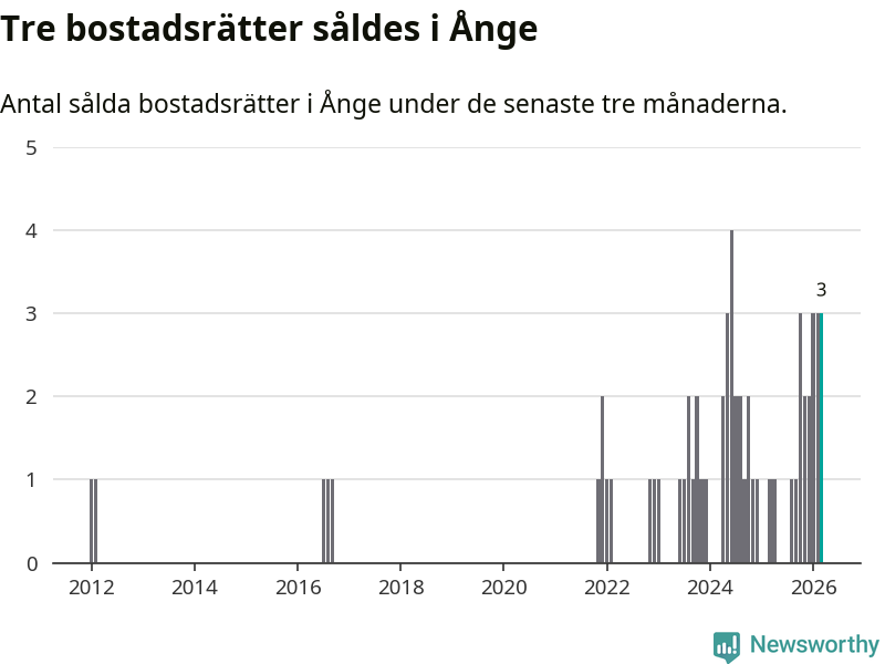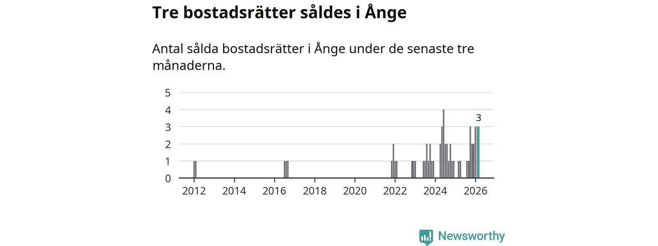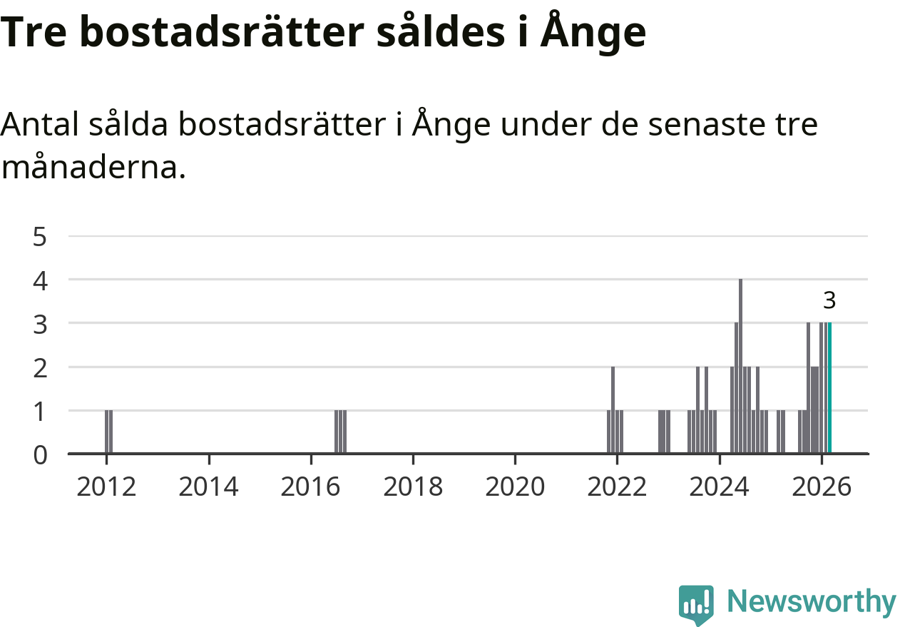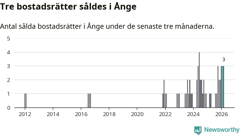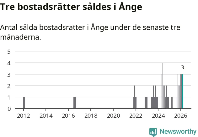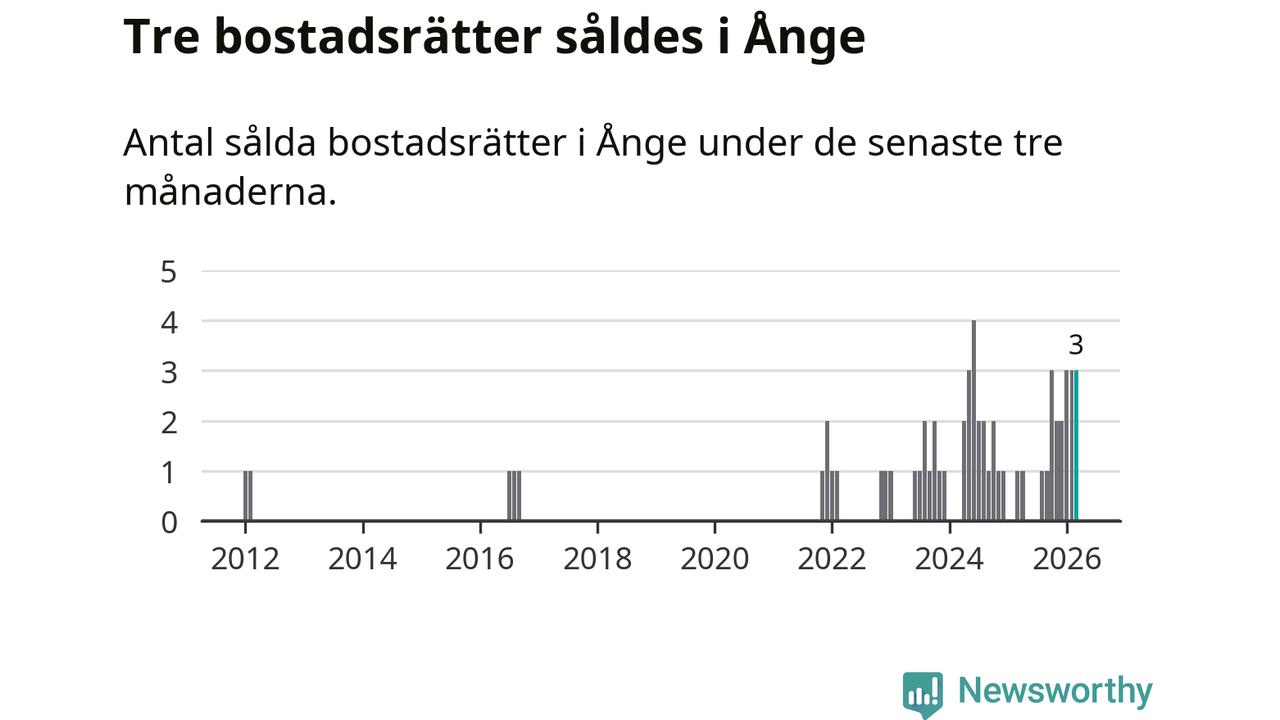 Mellan januari och mars gjordes sammanlagt tre affärer med bostadsrätter i Ånge kommun. Det kan jämföras med ett vid motsvarande tid i fjol.