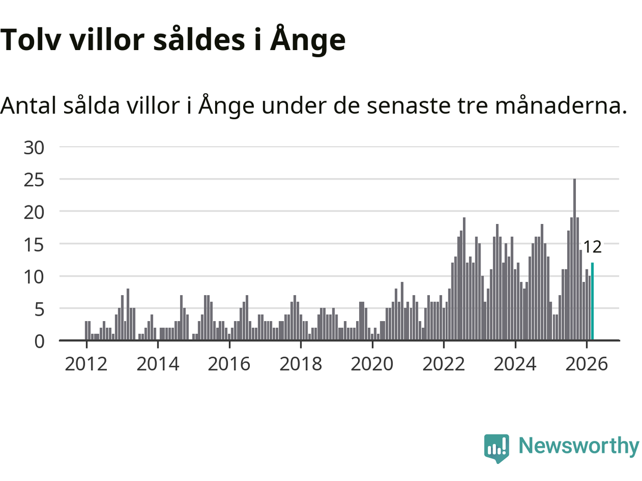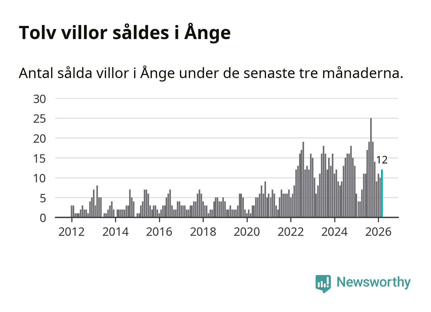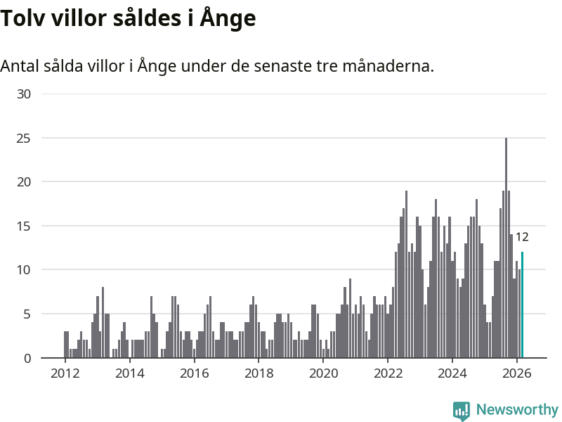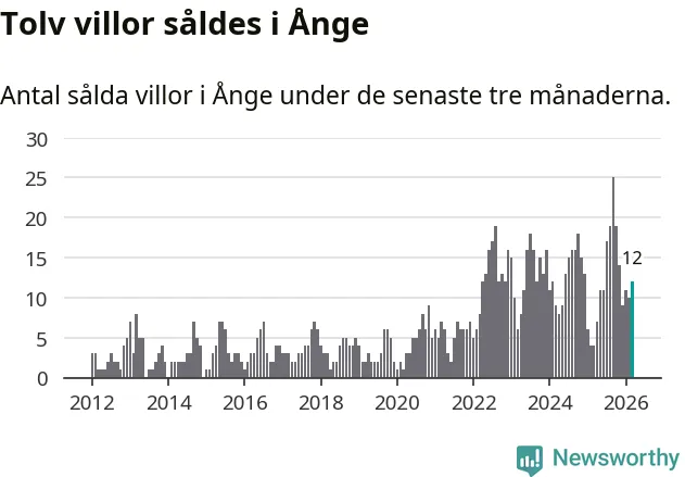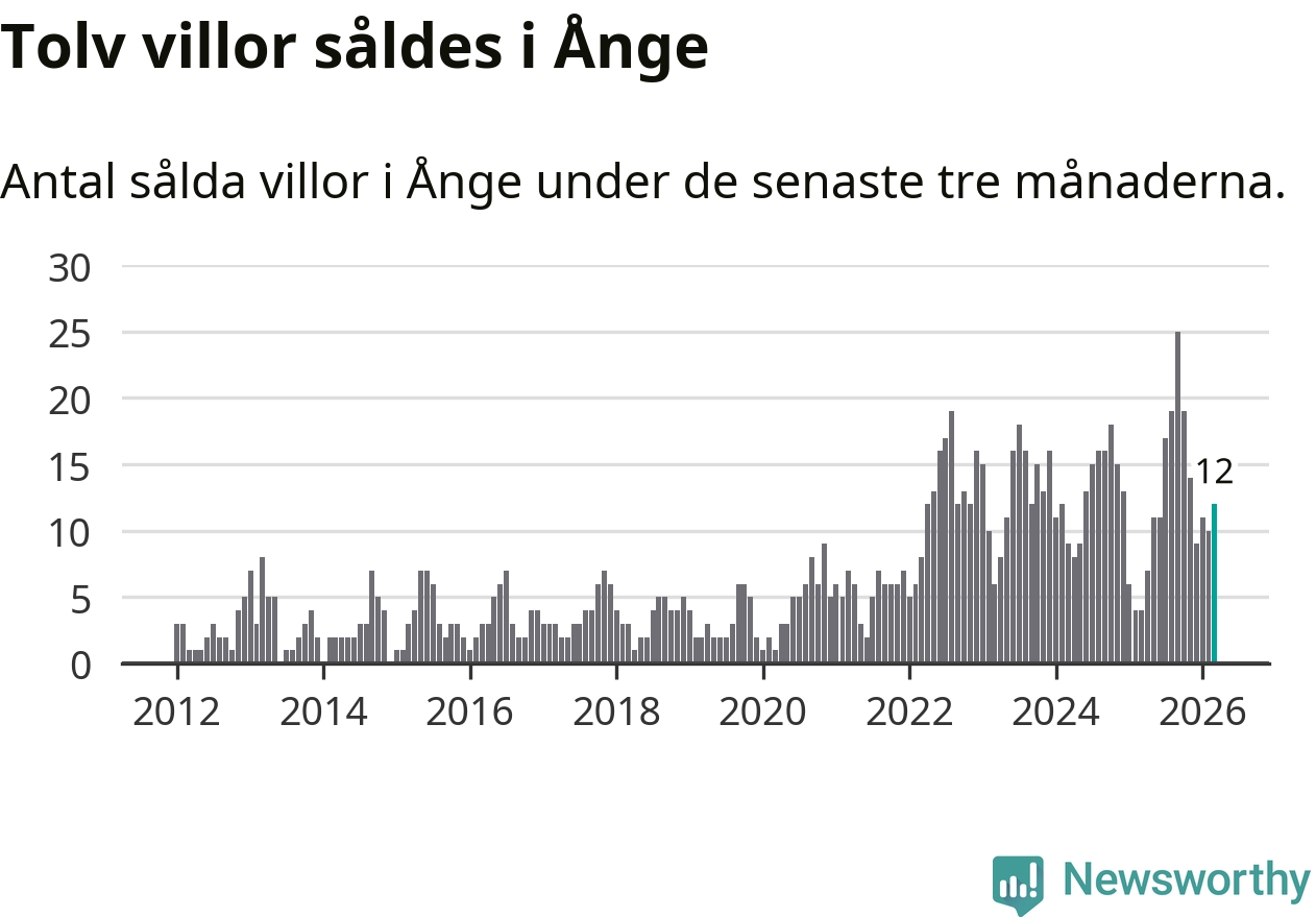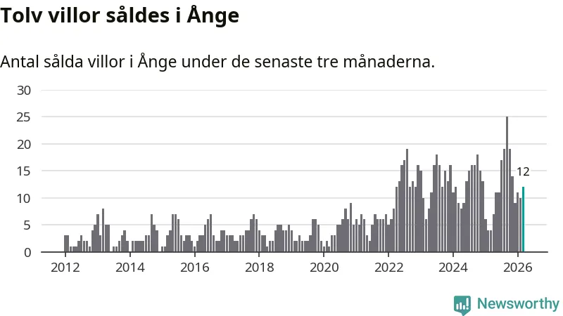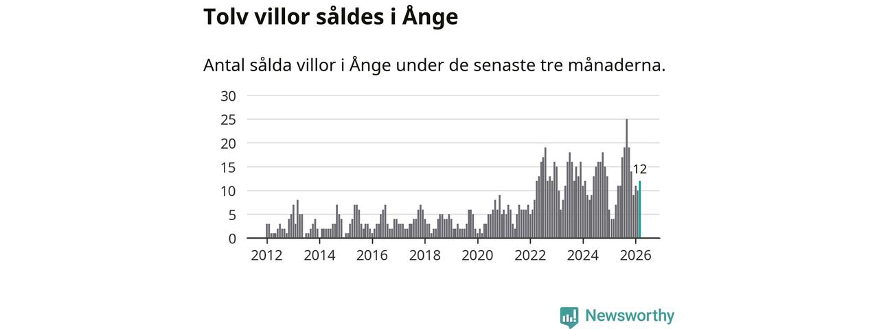 Mellan januari och mars gjordes sammanlagt tolv affärer med villor i Ånge kommun. Det kan jämföras med fyra vid motsvarande tid i fjol.