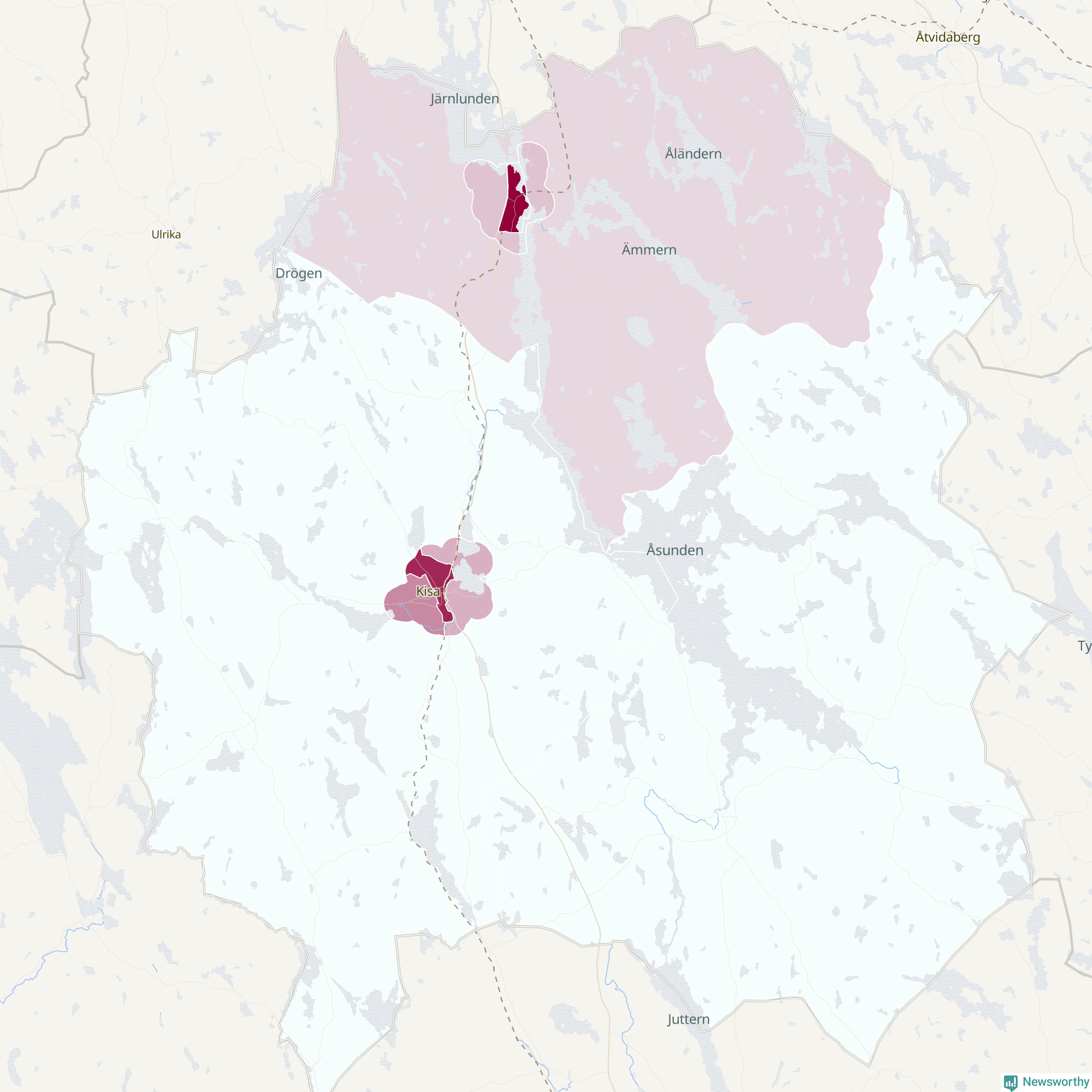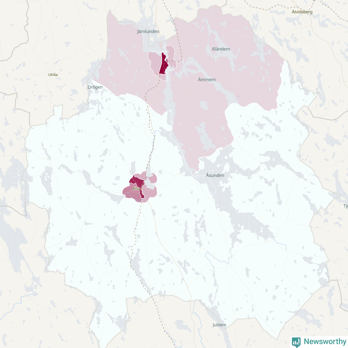Skillnaderna mellan olika områden i Kinda är relativt små. Det visar data för de senaste fem åren, som Newsworthy har begärt ut från polisen. De anmälda stölderna har kopplats till SCB:s åtta statistiska områden i kommunen. Det rör sig om mellan en handfull och ett femtontal anmälda stölder per område.