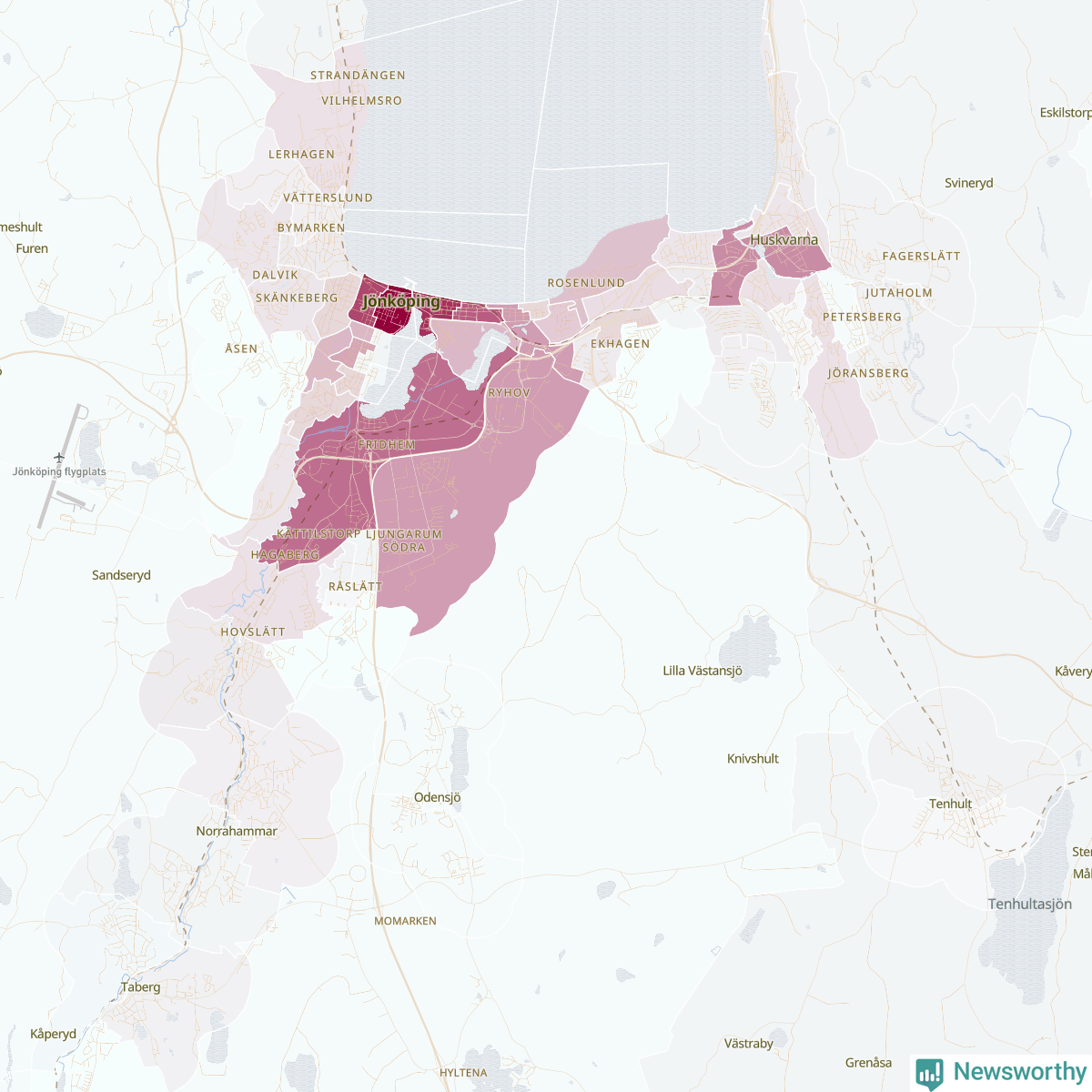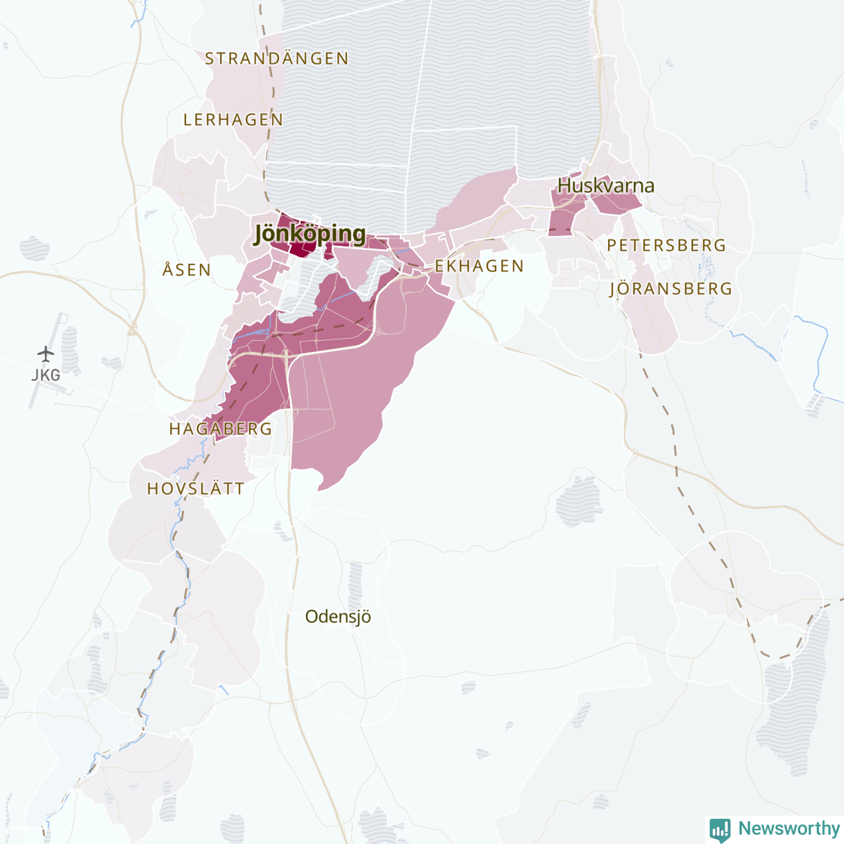 Men alla delar av Jönköpings kommun är inte lika hårt drabbade. Det visar data för de senaste fem åren, som Newsworthy har begärt ut från polisen. De anmälda stölderna har kopplats till SCB:s 78 statistiska områden i kommunen. I tre områden finns inga cykelstölder registrerade, men i de övriga rör det sig om mellan en handfull och drygt 200 anmälda stölder per område.