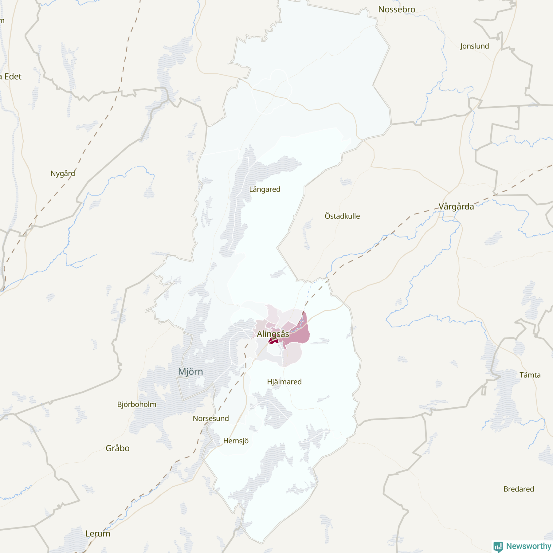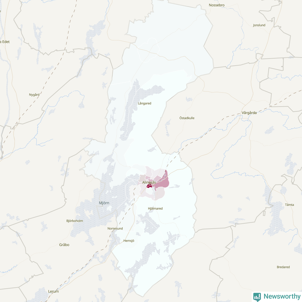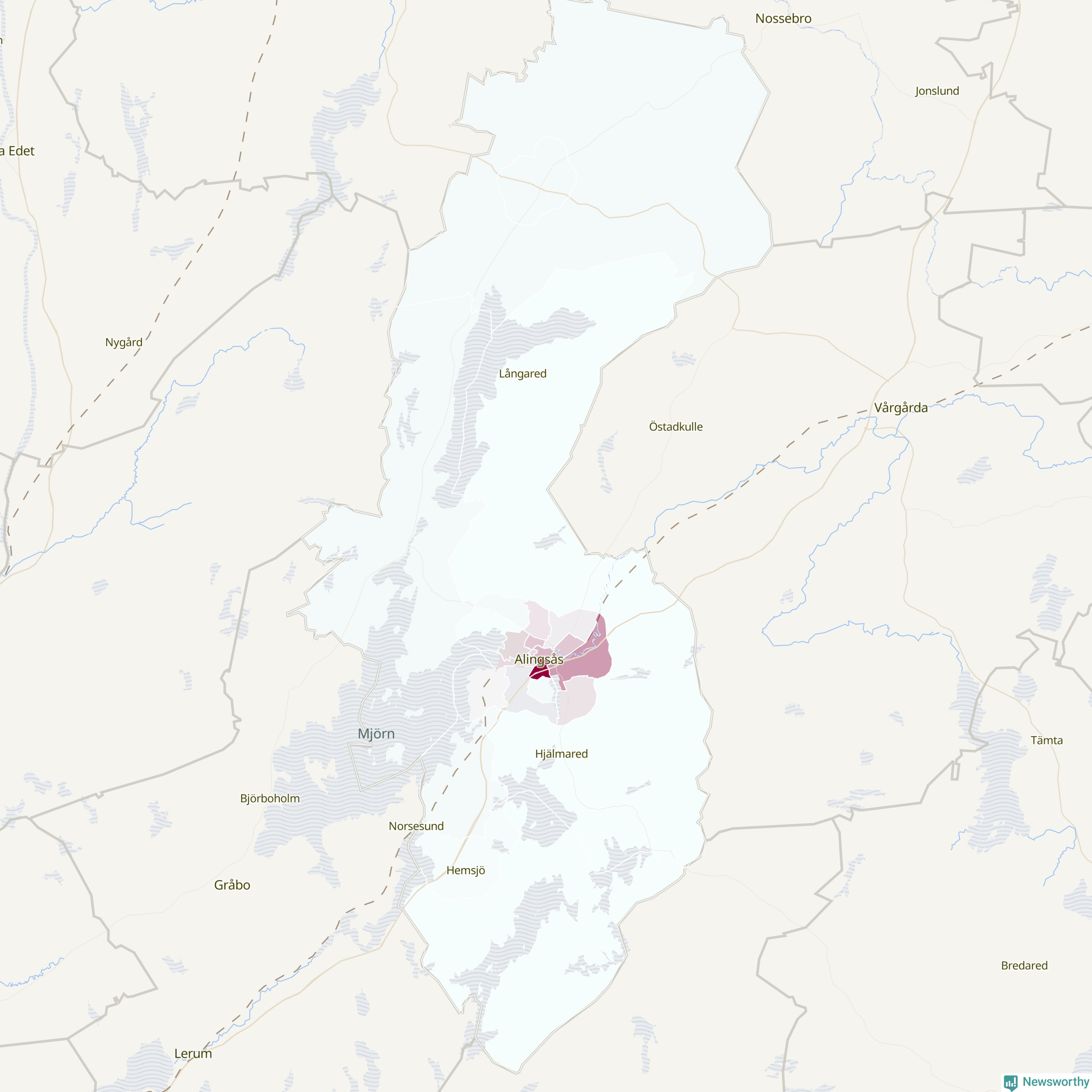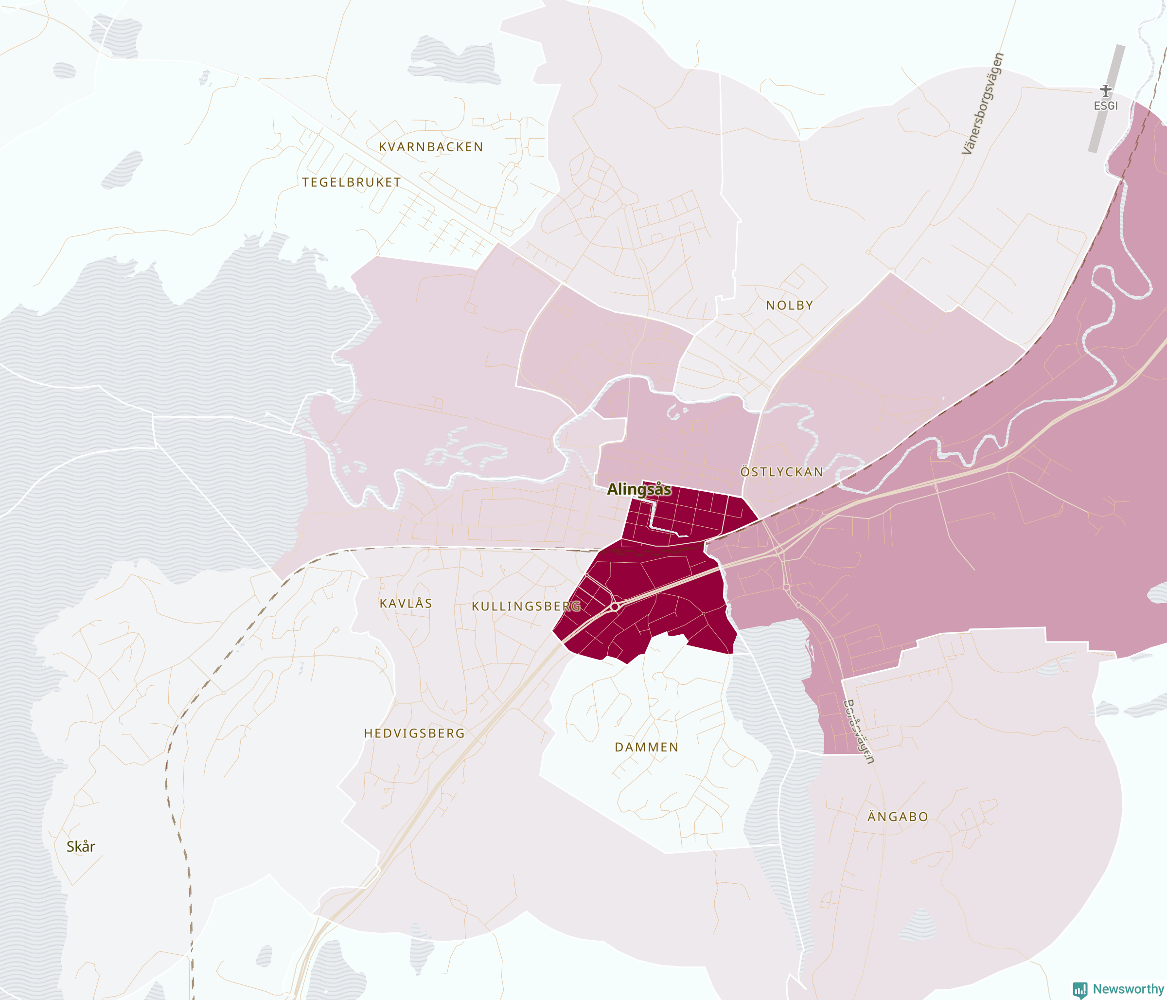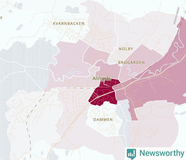 Men alla delar av Alingsås är inte lika hårt drabbade. Det visar data för de senaste fem åren, som Newsworthy har begärt ut från polisen. De anmälda stölderna har kopplats till SCB:s 23 statistiska områden i kommunen. Det rör sig om mellan en handfull och omkring 300 anmälda stölder per område.