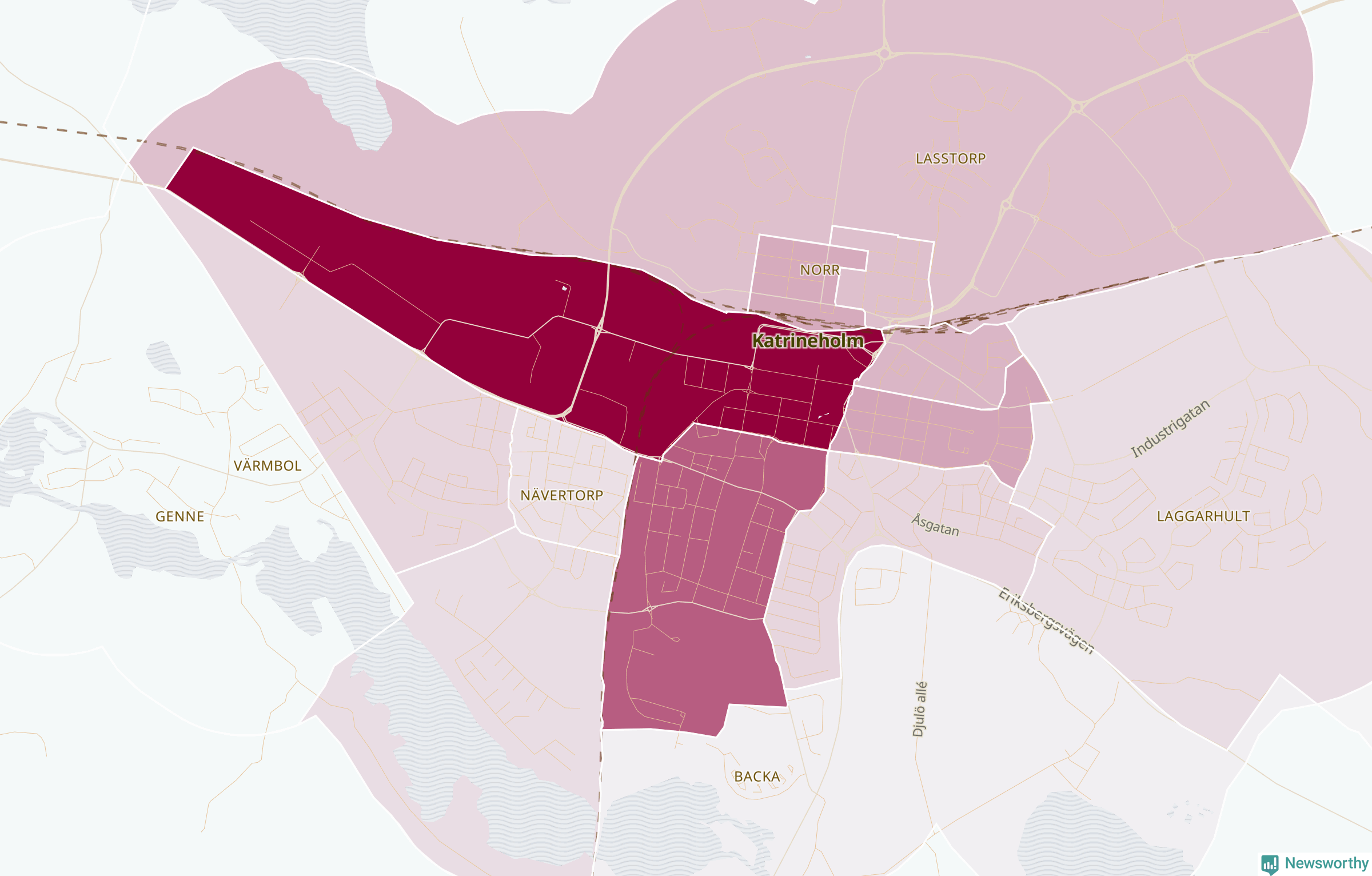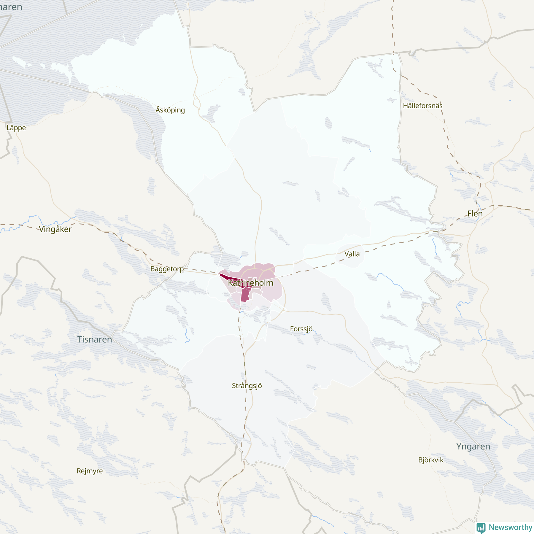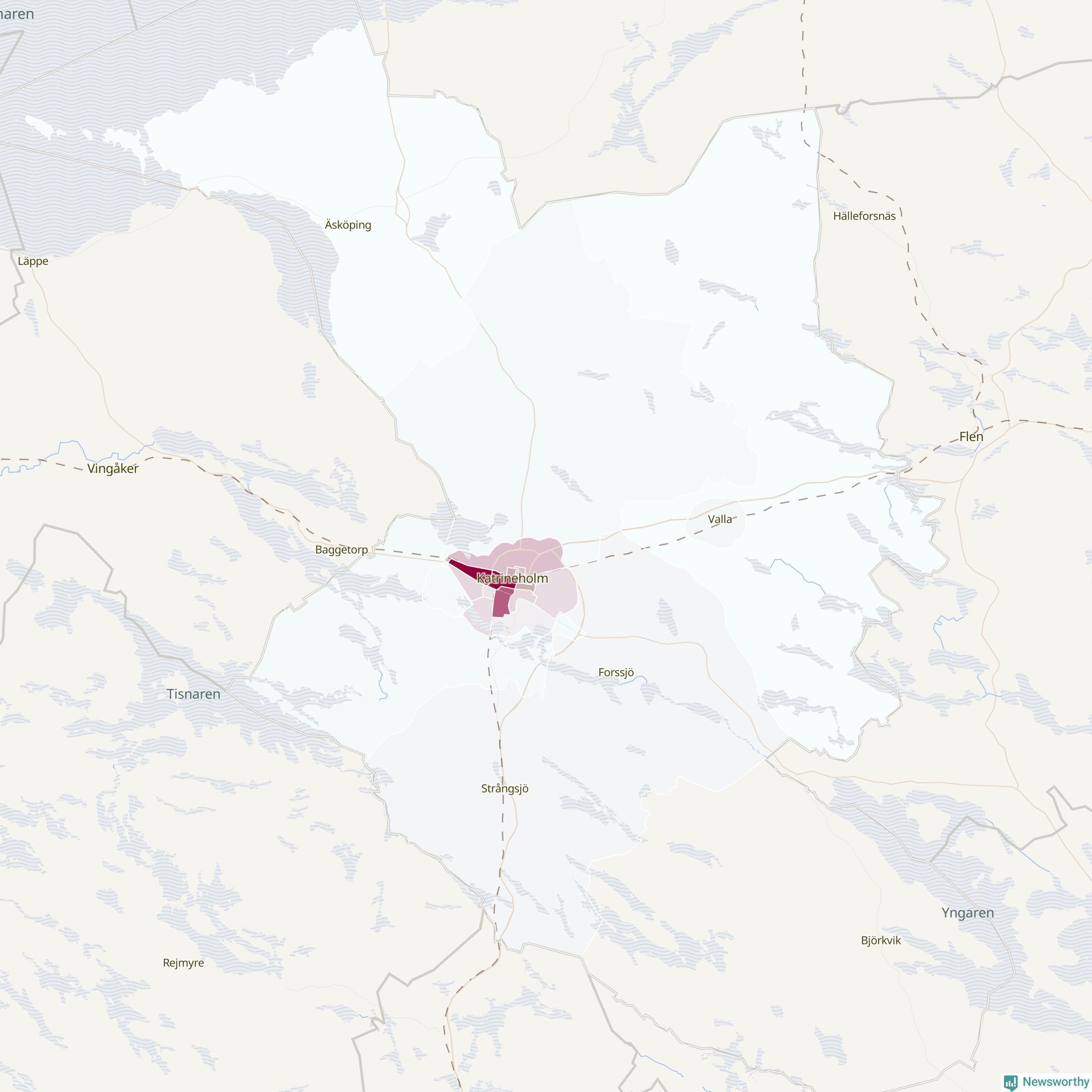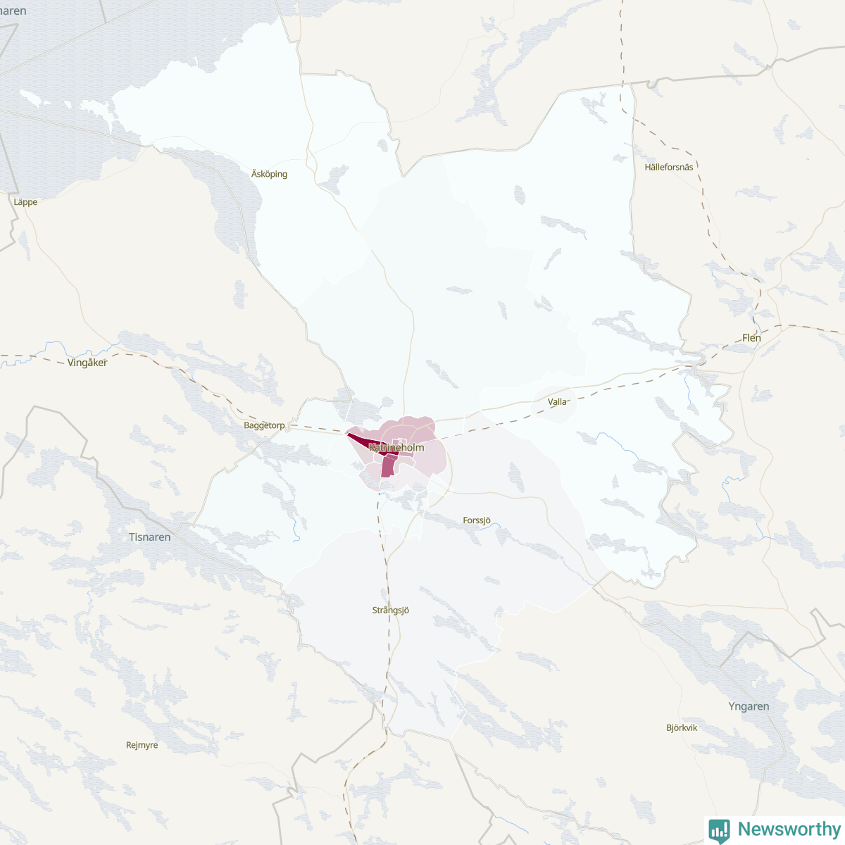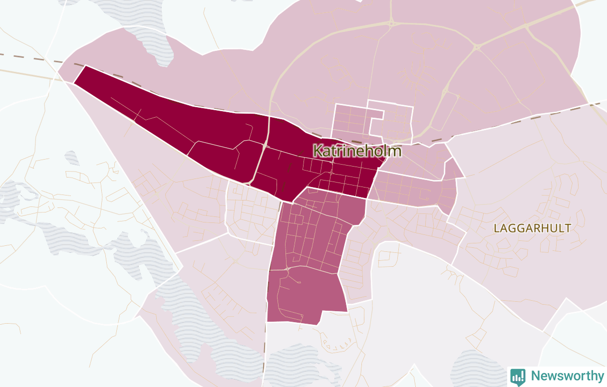 Men alla delar av Katrineholm är inte lika hårt drabbade. Det visar data för de senaste fem åren, som Newsworthy har begärt ut från polisen. De anmälda stölderna har kopplats till SCB:s 21 statistiska områden i kommunen. I ett område finns inga cykelstölder registrerade, men i de övriga rör det sig om mellan en handfull och drygt 100 anmälda stölder per område.