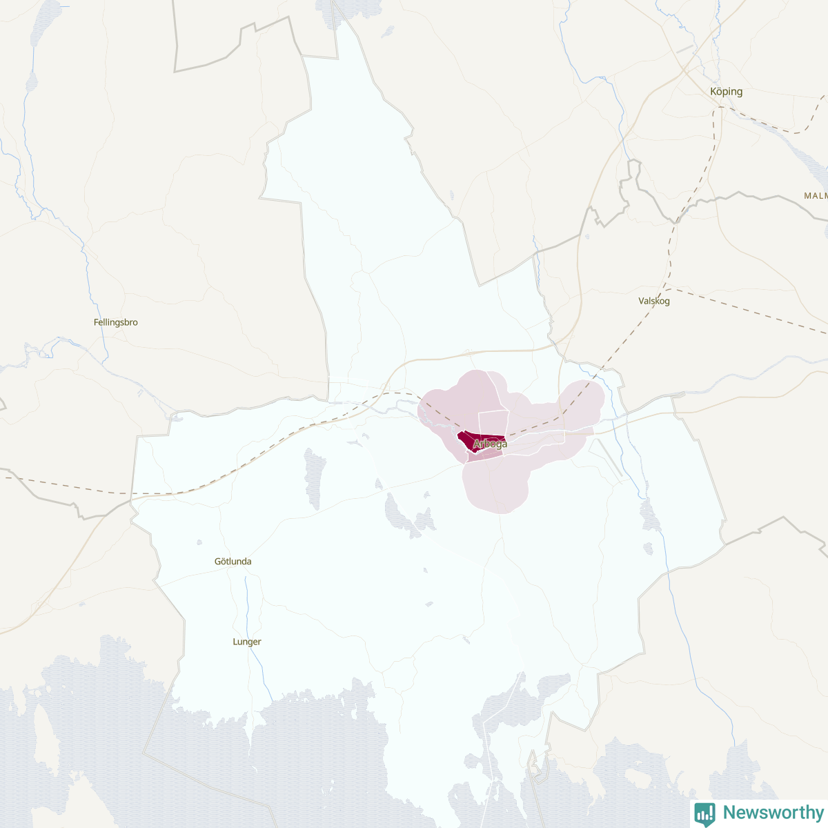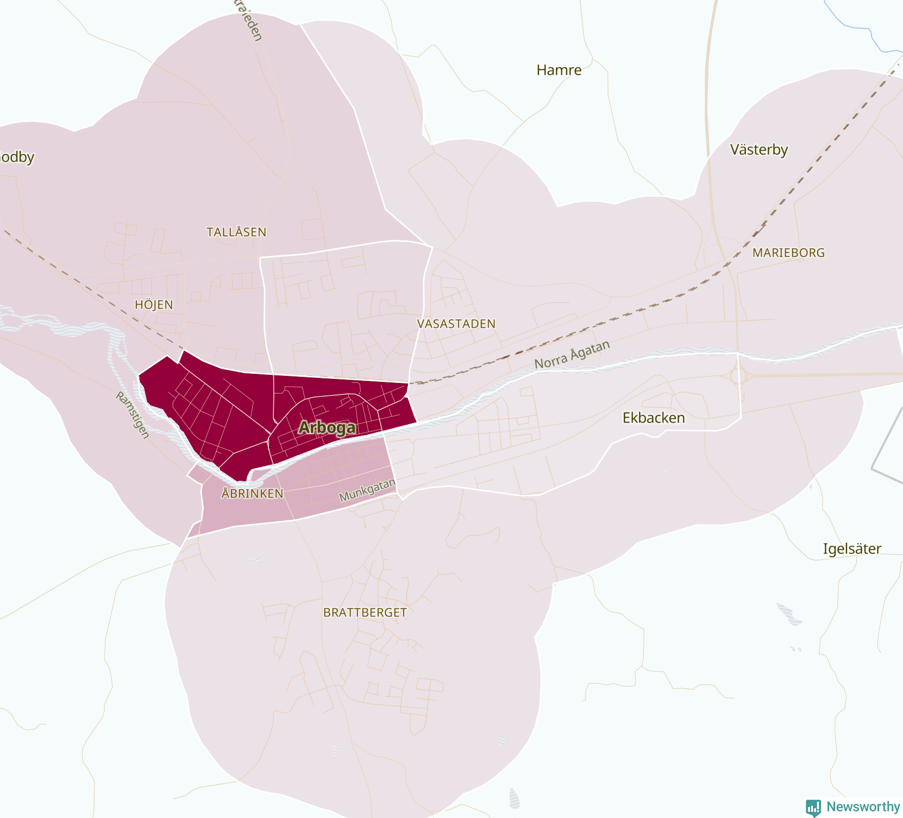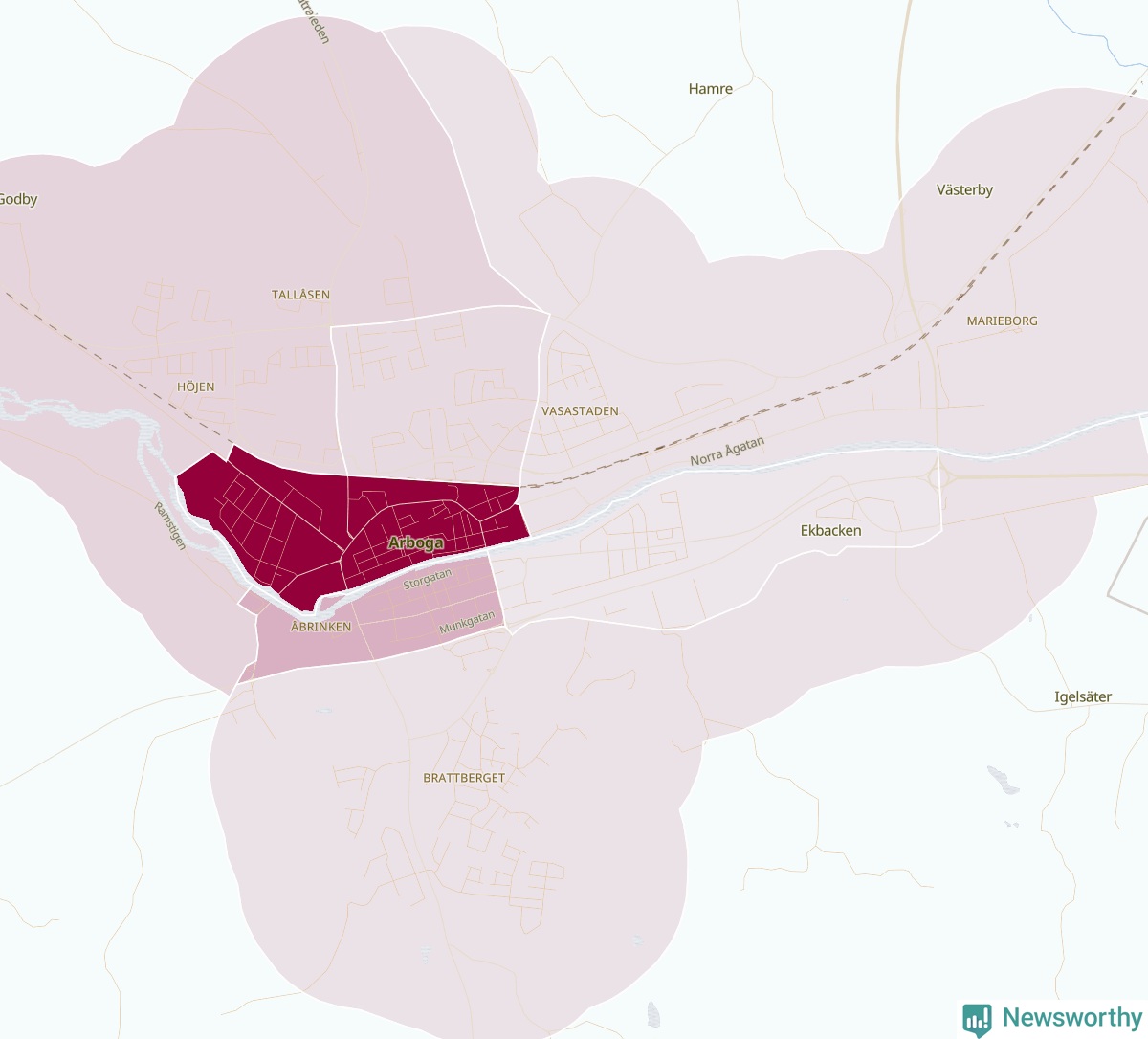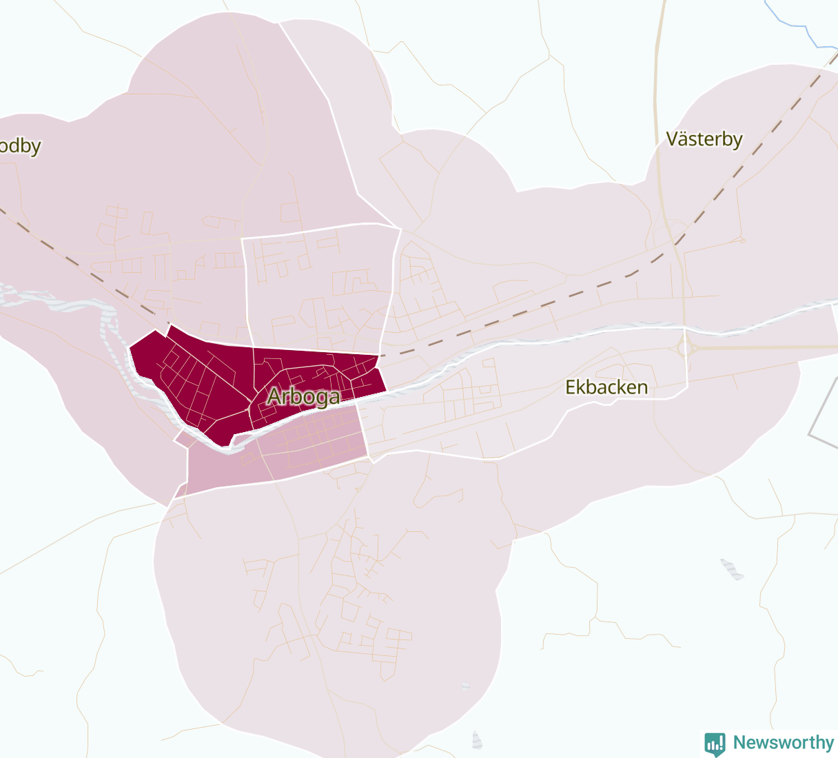 Men alla delar av Arboga är inte lika hårt drabbade. Det visar data för de senaste fem åren, som Newsworthy har begärt ut från polisen. De anmälda stölderna har kopplats till SCB:s nio statistiska områden i kommunen. Det rör sig om mellan en handfull och omkring 100 anmälda stölder per område.