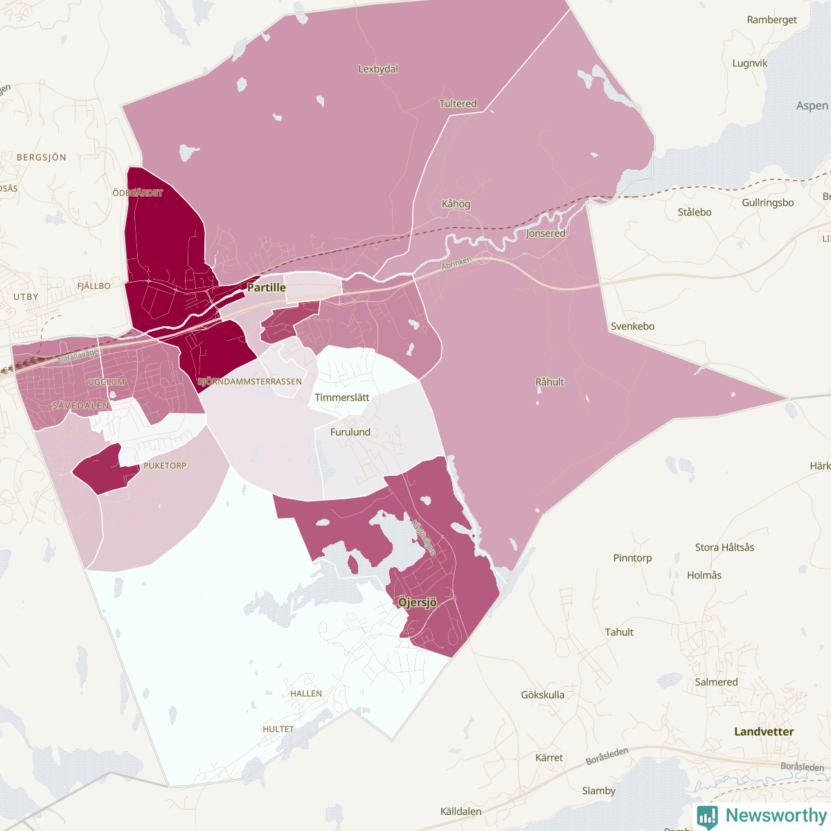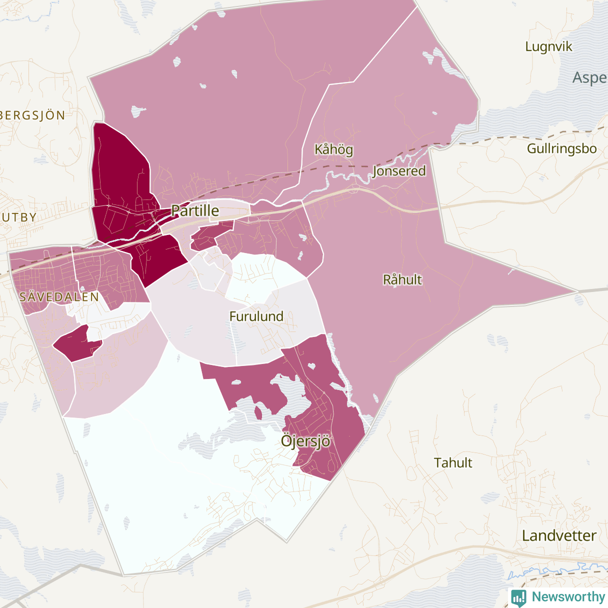 Det finns skillnader mellan olika områden. Det visar data för de senaste fem åren, som Newsworthy har begärt ut från polisen. De anmälda stölderna har kopplats till SCB:s 20 statistiska områden i kommunen. Det rör sig om mellan en handfull och ett fyrtiotal anmälda stölder per område.