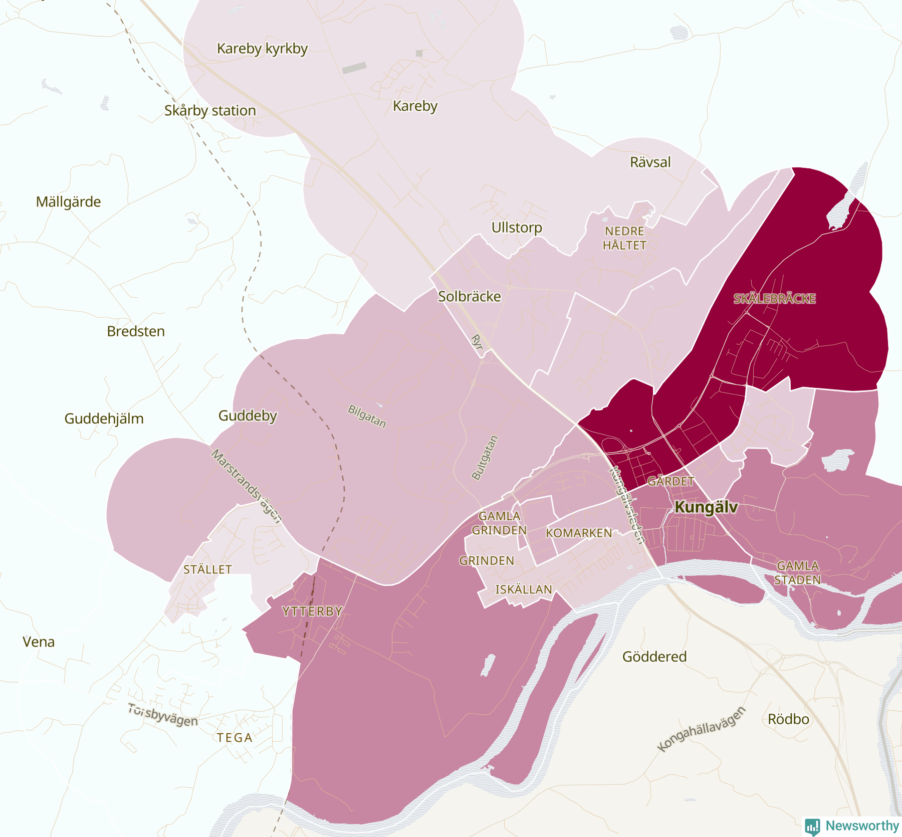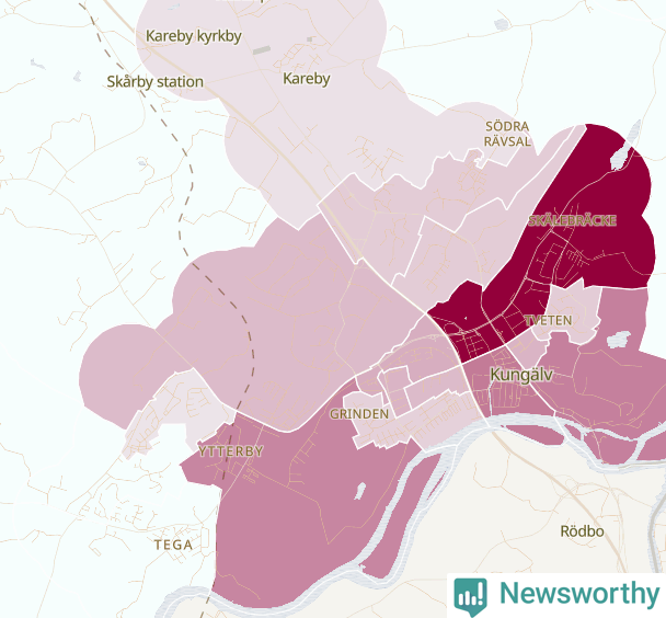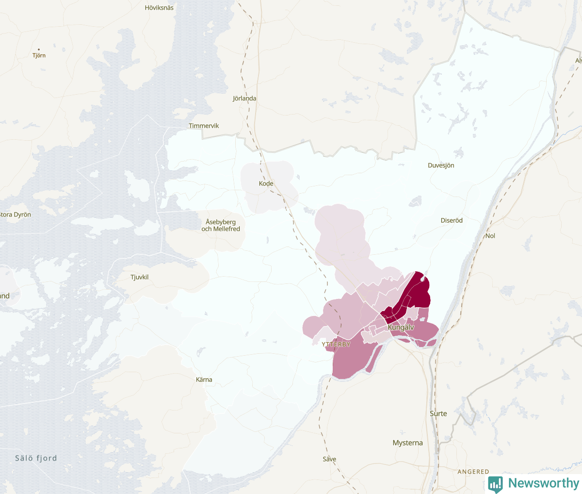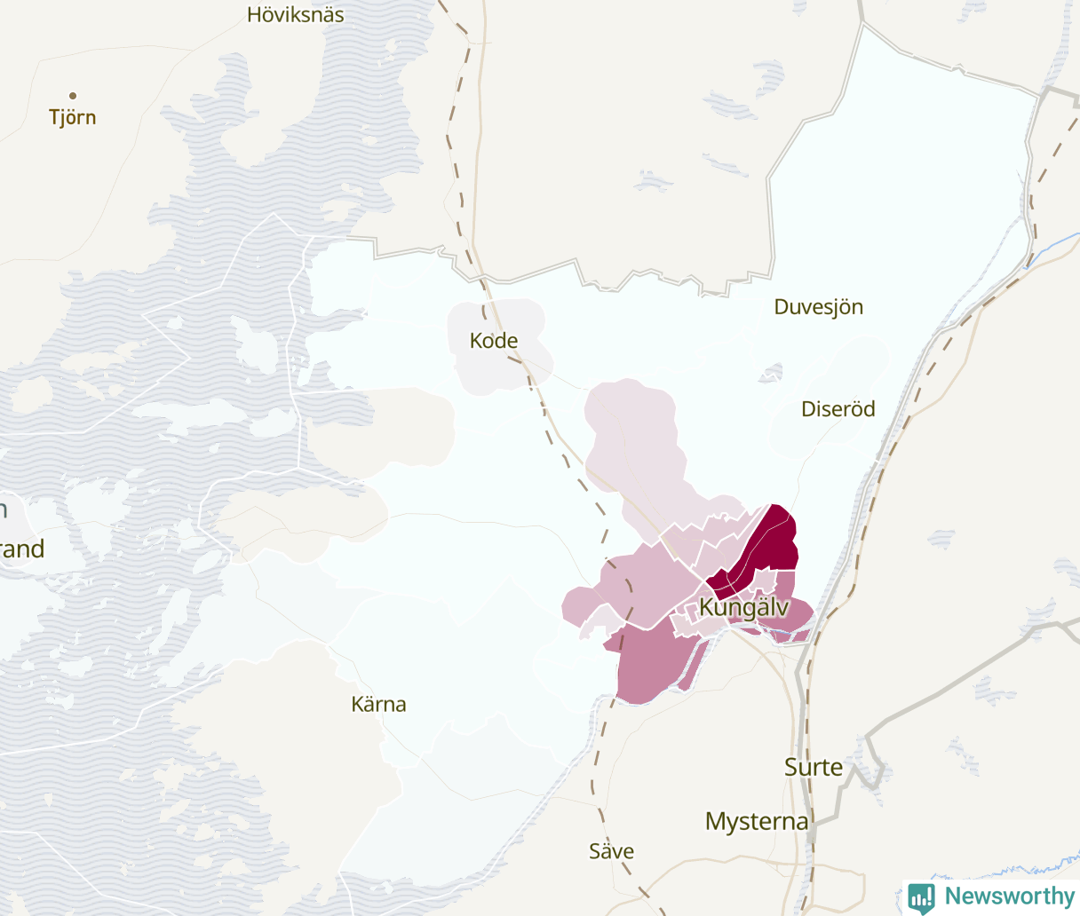 Men alla delar av Kungälv är inte lika hårt drabbade. Det visar data för de senaste fem åren, som Newsworthy har begärt ut från polisen. De anmälda stölderna har kopplats till SCB:s 31 statistiska områden i kommunen. I tre områden finns inga cykelstölder registrerade, men i de övriga rör det sig om mellan en handfull och knappt 100 anmälda stölder per område.