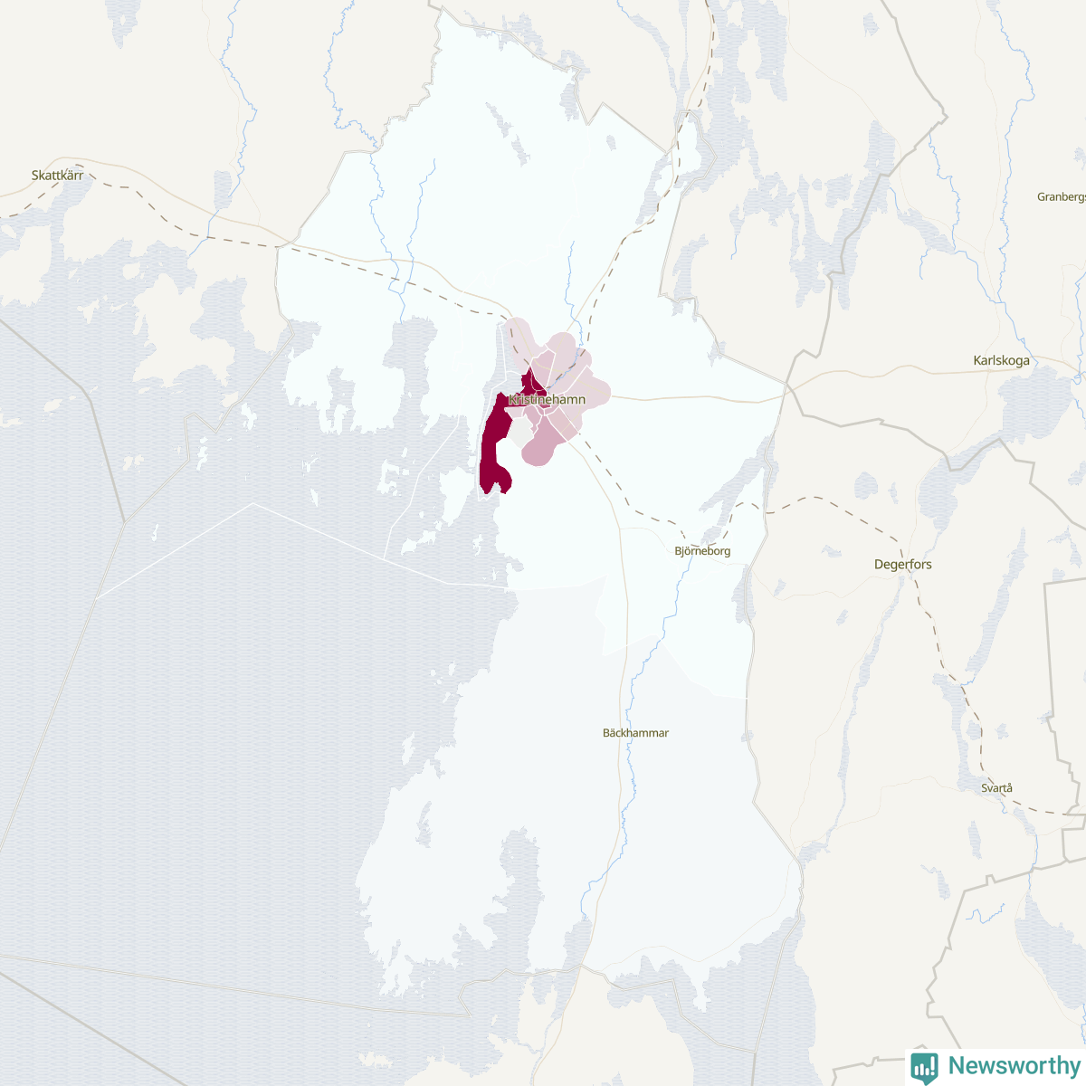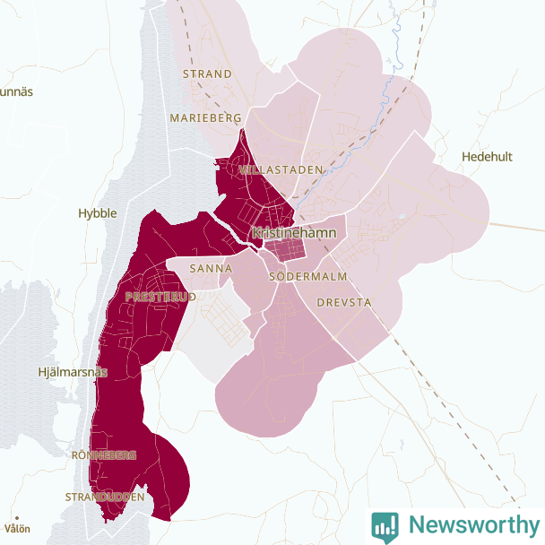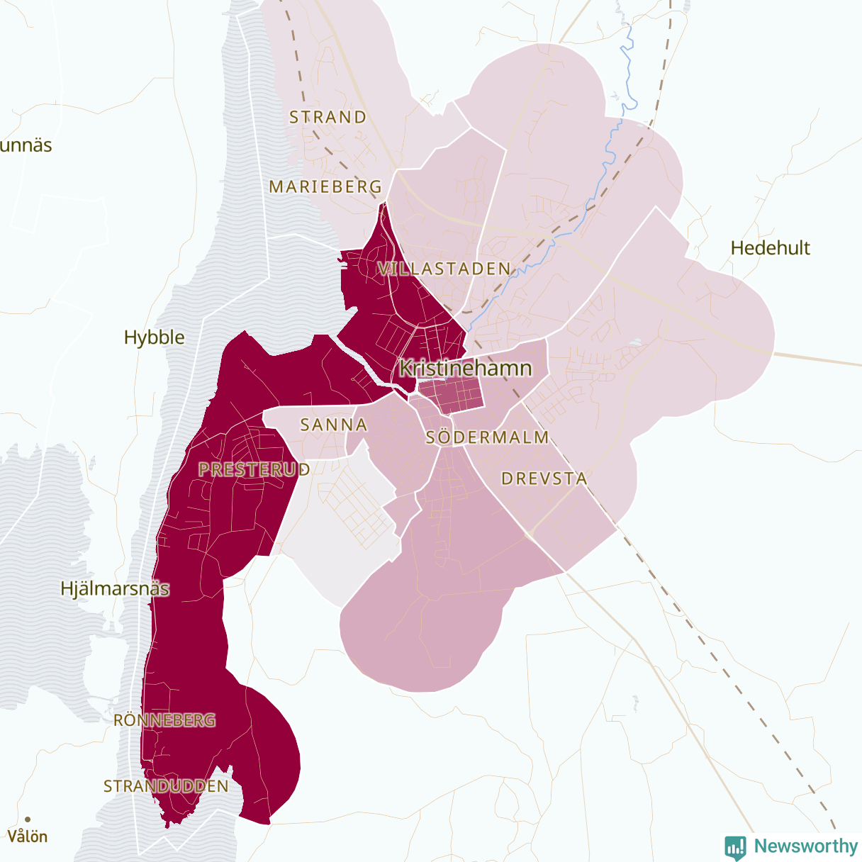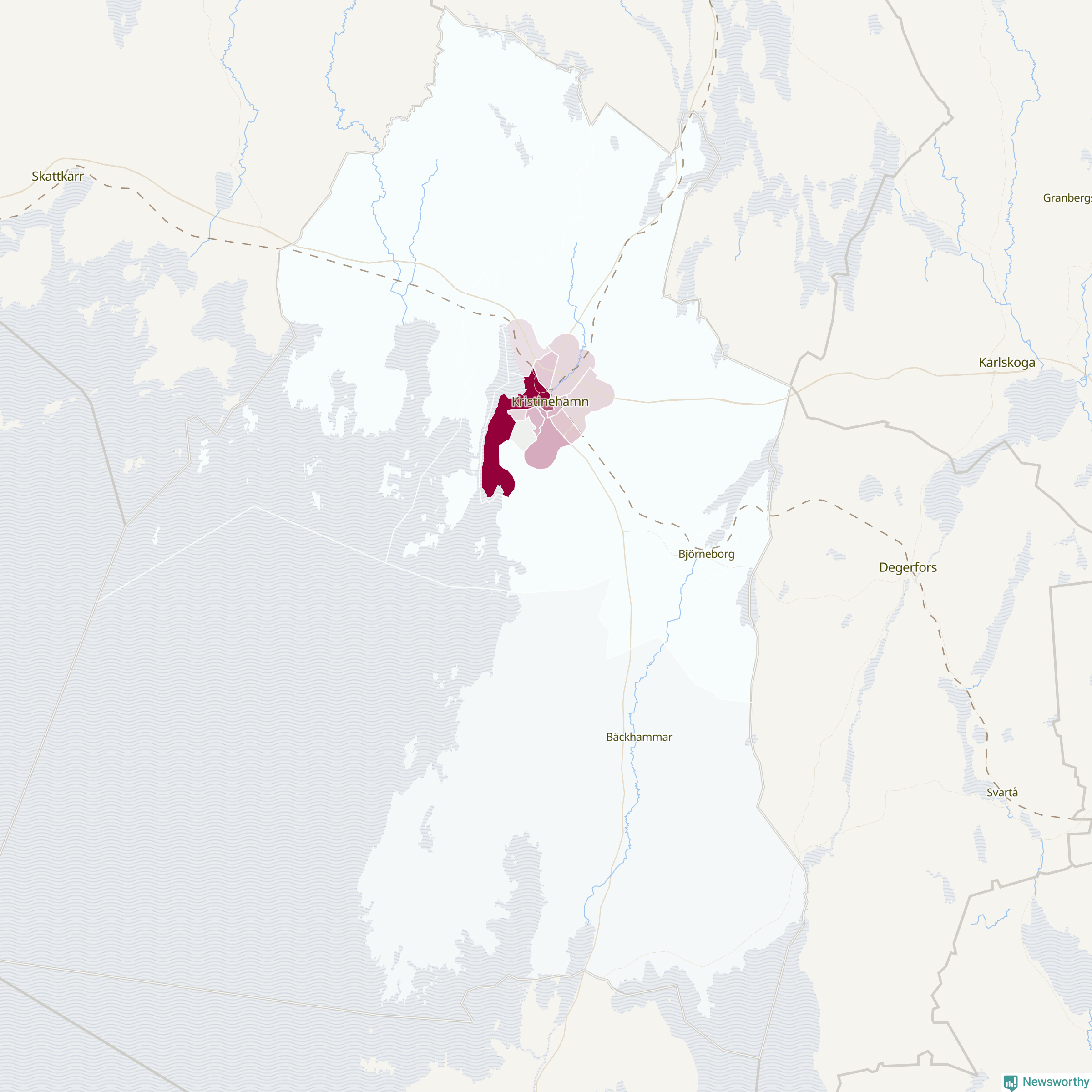 Men alla delar av Kristinehamn är inte lika hårt drabbade. Det visar data för de senaste fem åren, som Newsworthy har begärt ut från polisen. De anmälda stölderna har kopplats till SCB:s 16 statistiska områden i kommunen. Det rör sig om mellan en handfull och drygt 100 anmälda stölder per område.