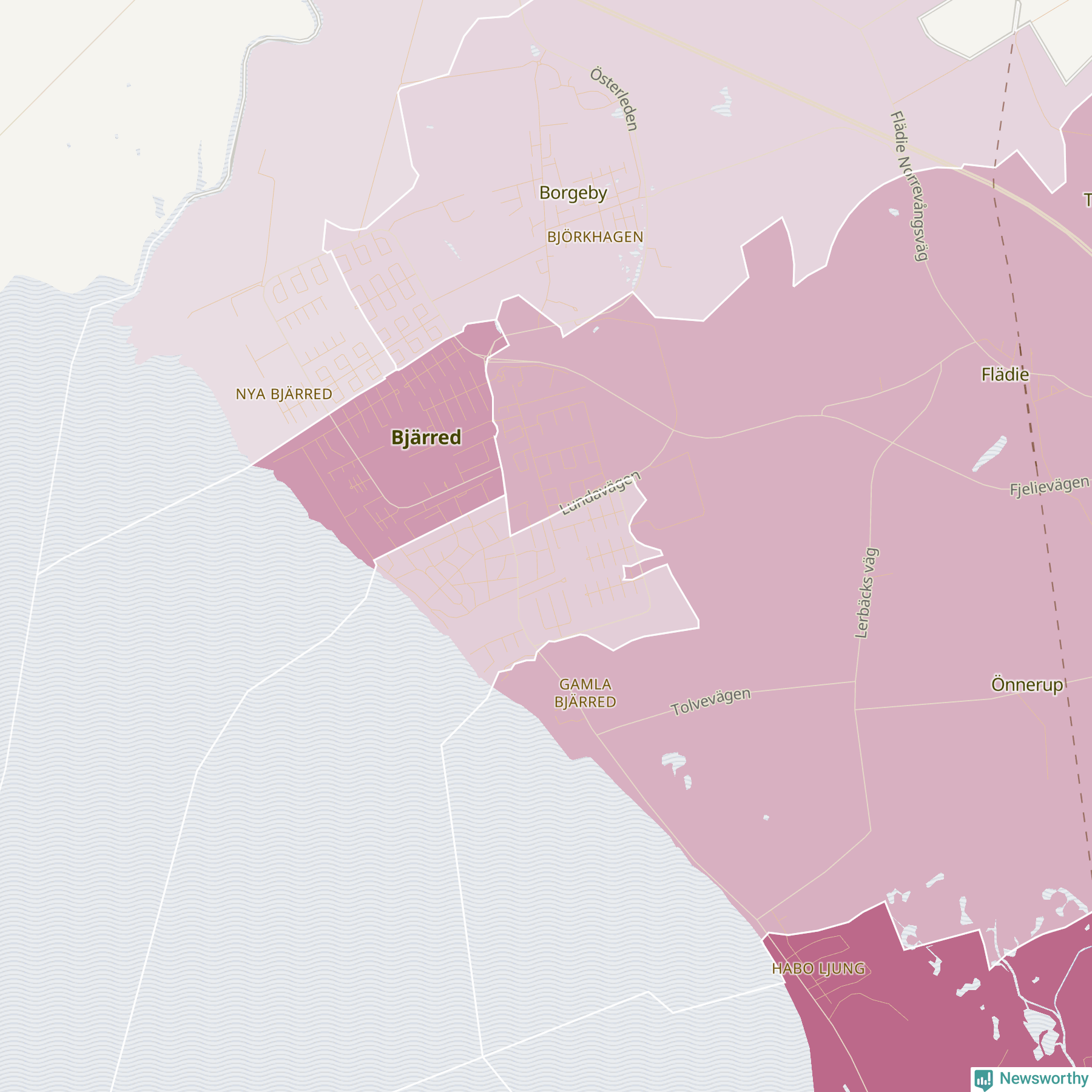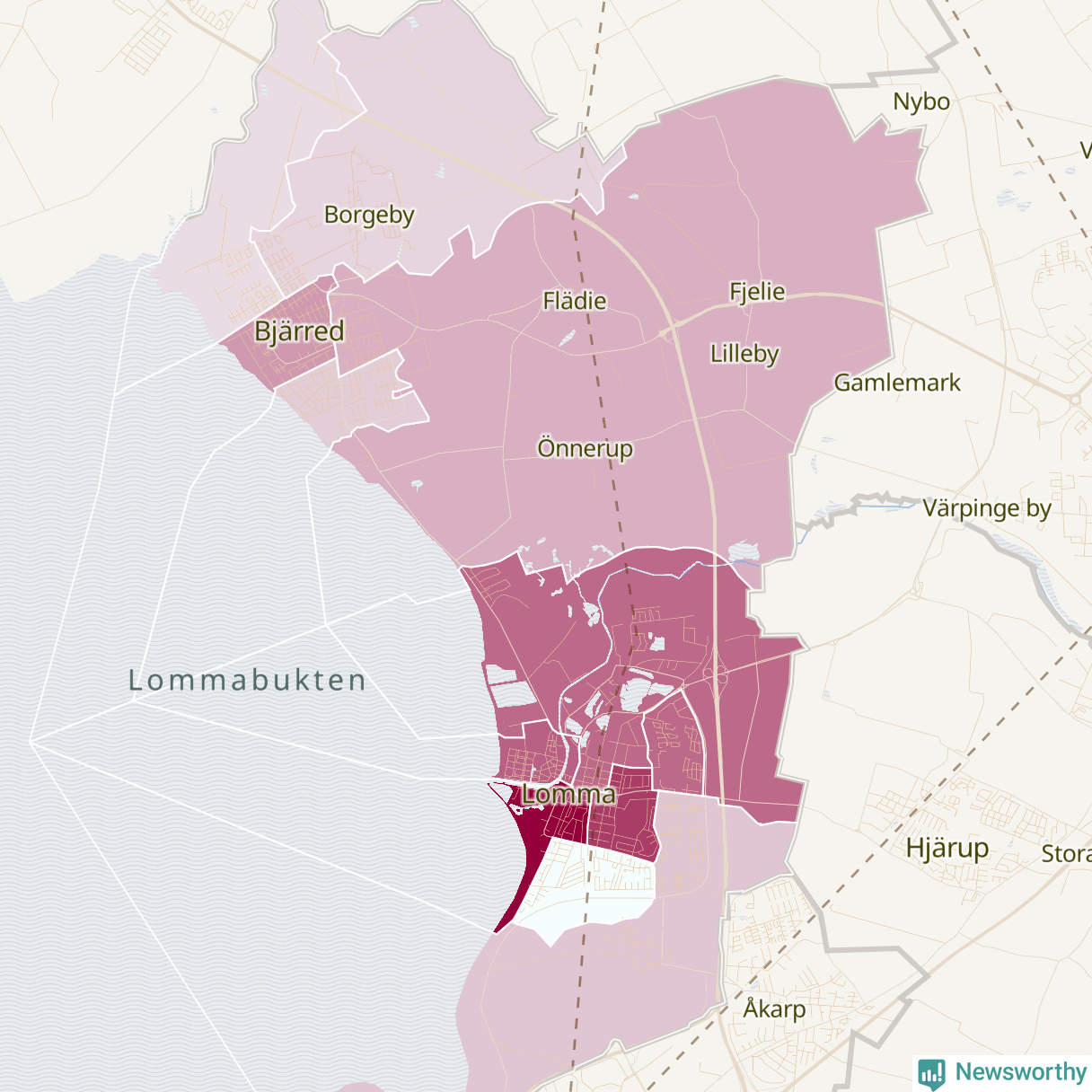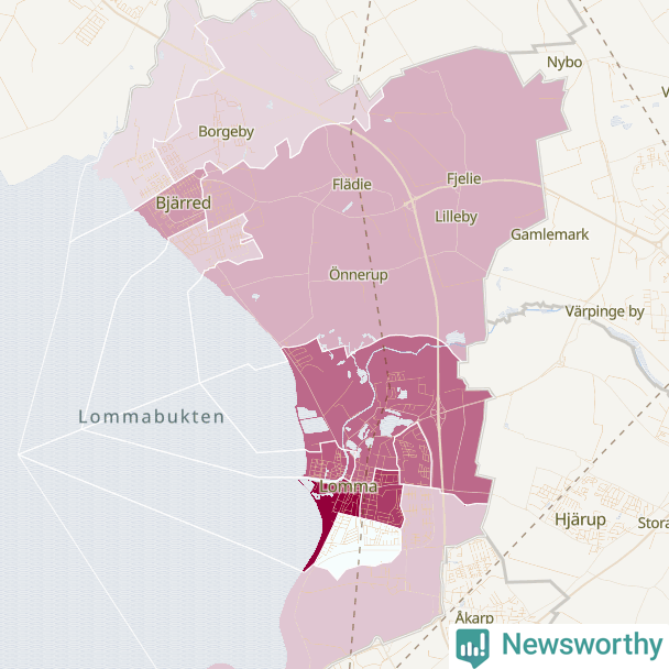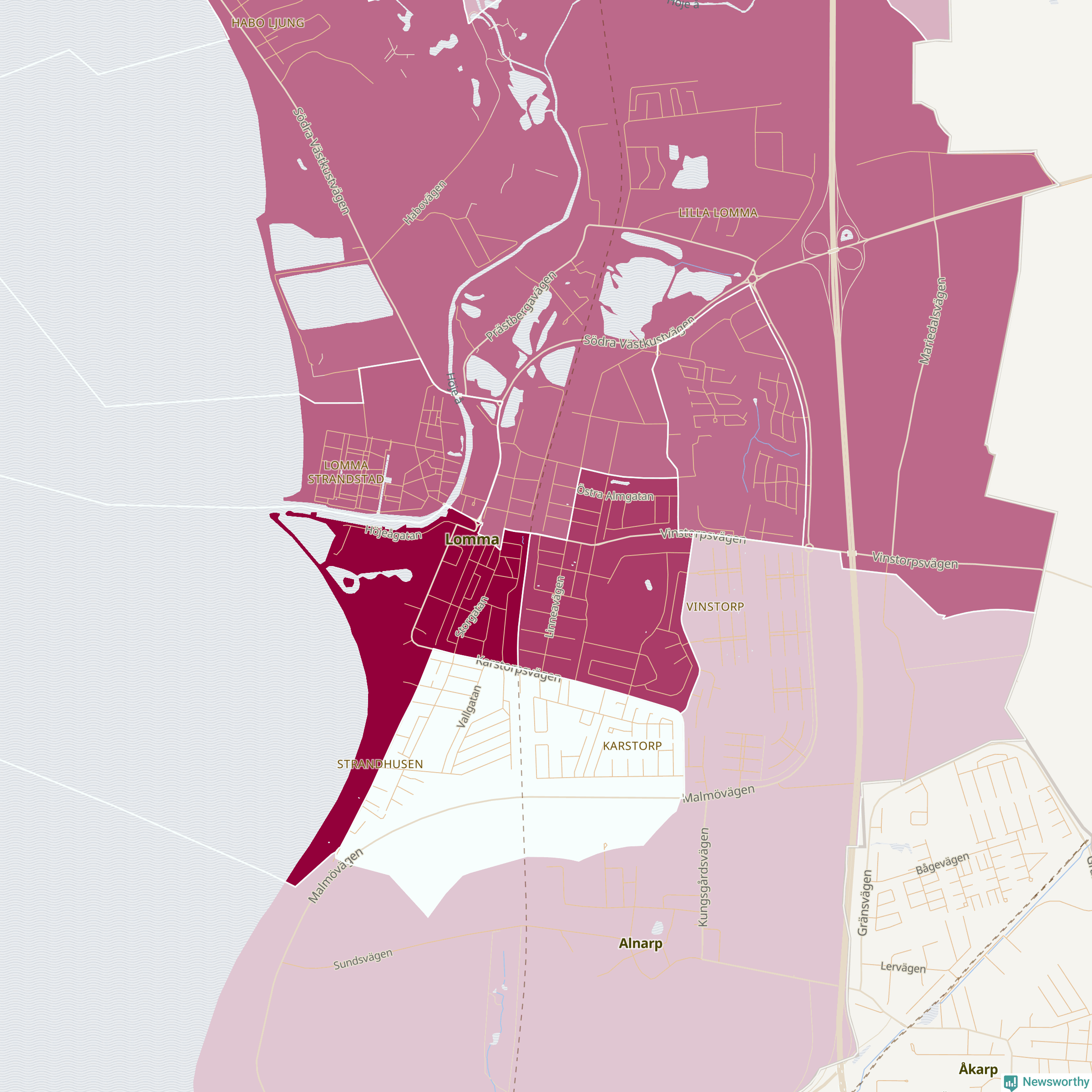 Men alla delar av Lomma är inte lika hårt drabbade. Det visar data för de senaste fem åren, som Newsworthy har begärt ut från polisen. De anmälda stölderna har kopplats till SCB:s tolv statistiska områden i kommunen. Det rör sig om mellan ett tiotal och ett åttiotal anmälda stölder per område.