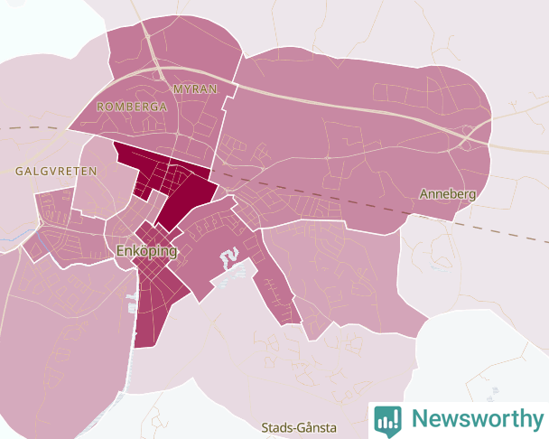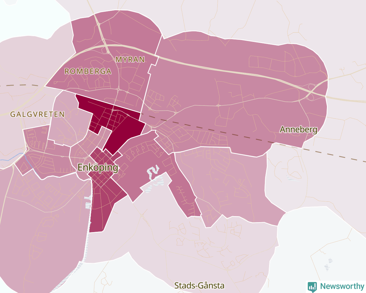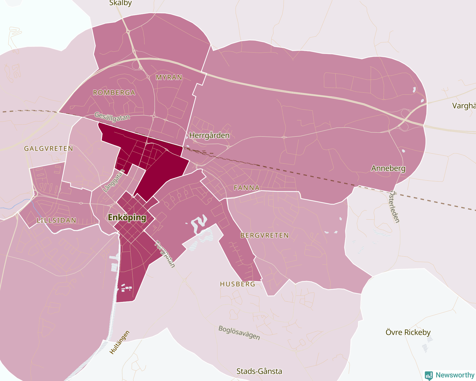 Men alla delar av Enköping är inte lika hårt drabbade. Det visar data för de senaste fem åren, som Newsworthy har begärt ut från polisen. De anmälda stölderna har kopplats till SCB:s 25 statistiska områden i kommunen. I två områden finns inga cykelstölder registrerade, men i de övriga rör det sig om mellan en handfull och drygt 100 anmälda stölder per område.