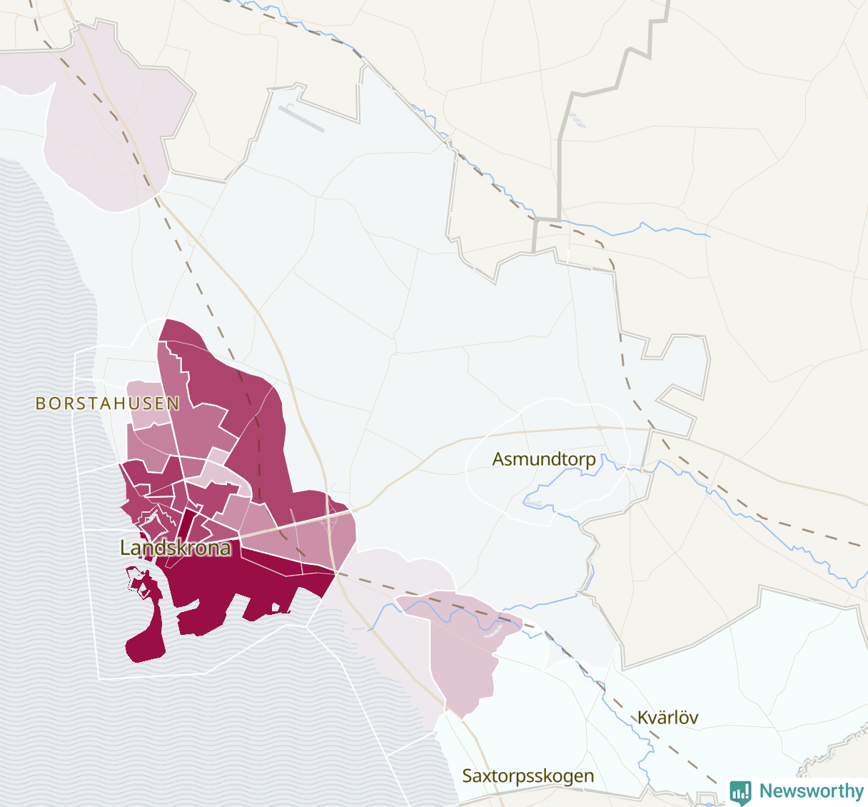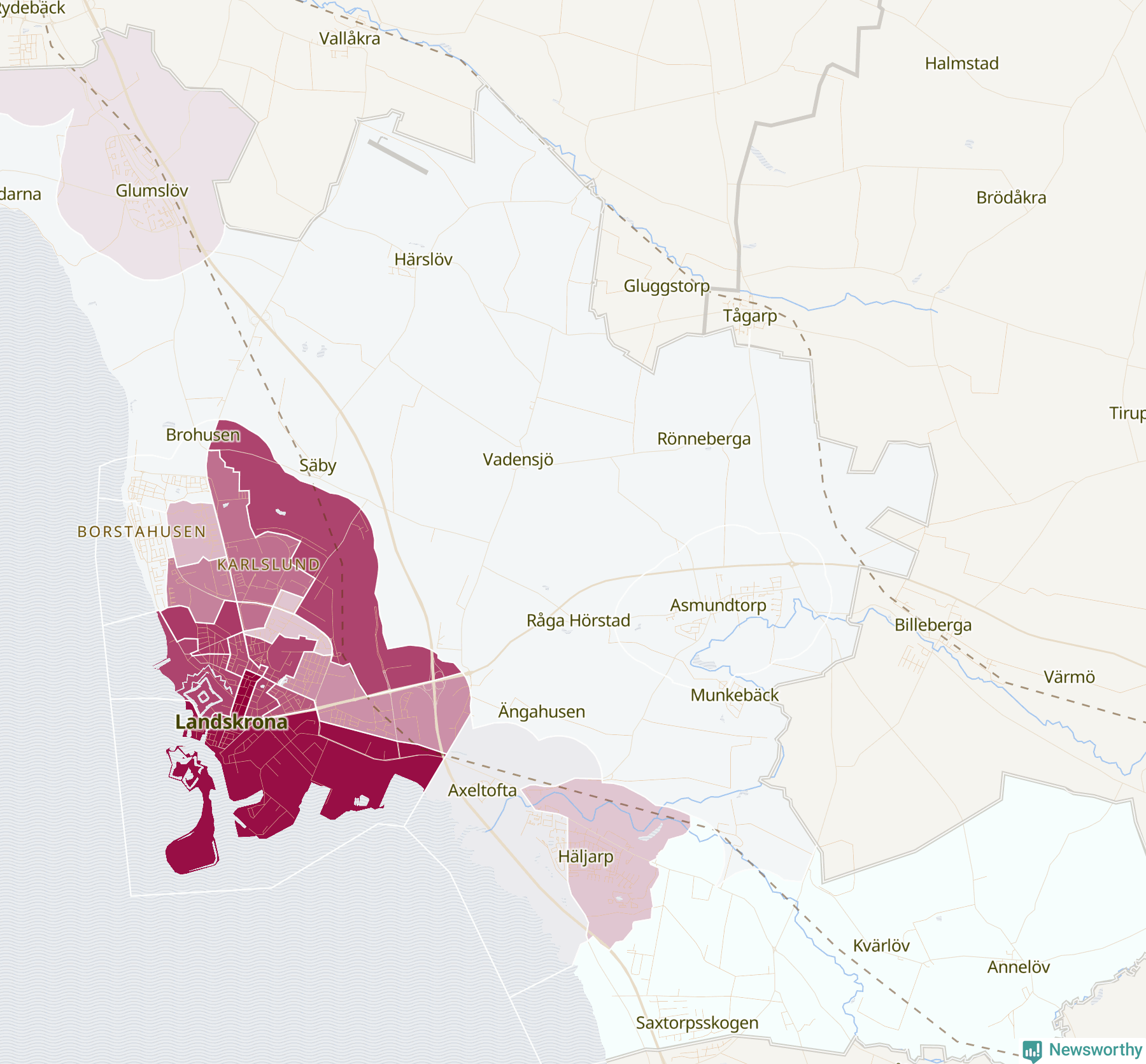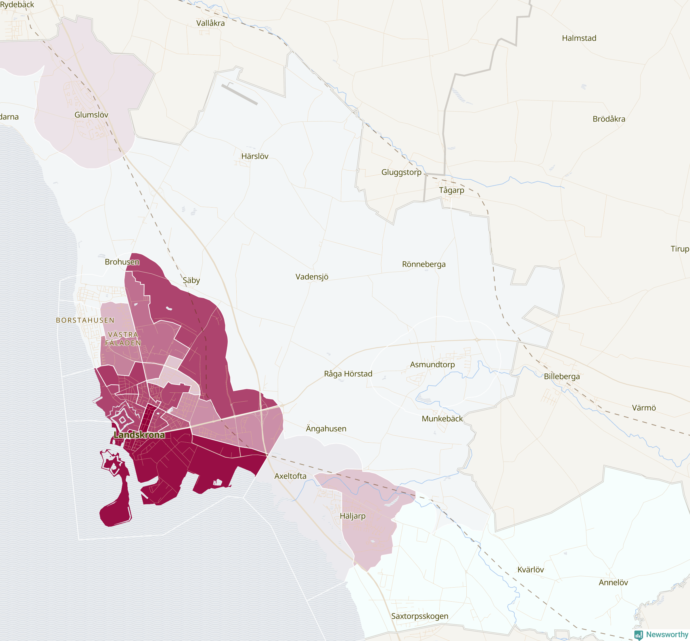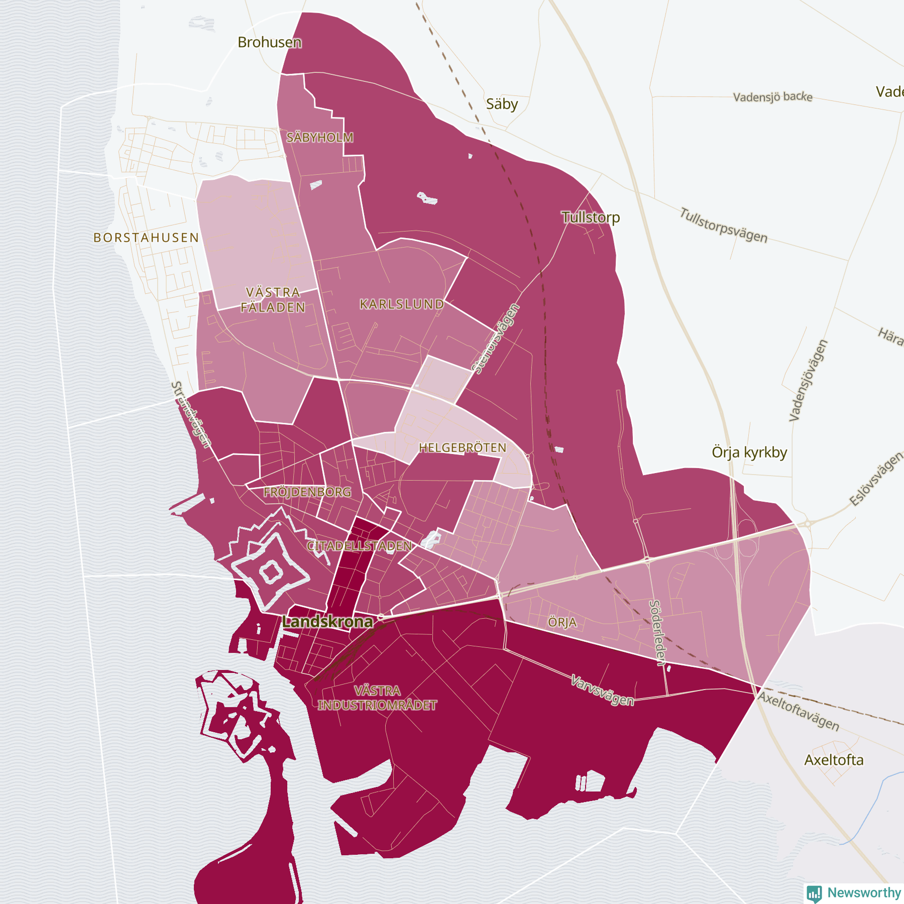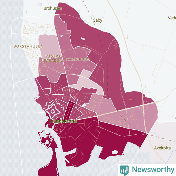 Men alla delar av Landskrona är inte lika hårt drabbade. Det visar data för de senaste fem åren, som Newsworthy har begärt ut från polisen. De anmälda stölderna har kopplats till SCB:s 24 statistiska områden i kommunen. Det rör sig om mellan en handfull och knappt 200 anmälda stölder per område.