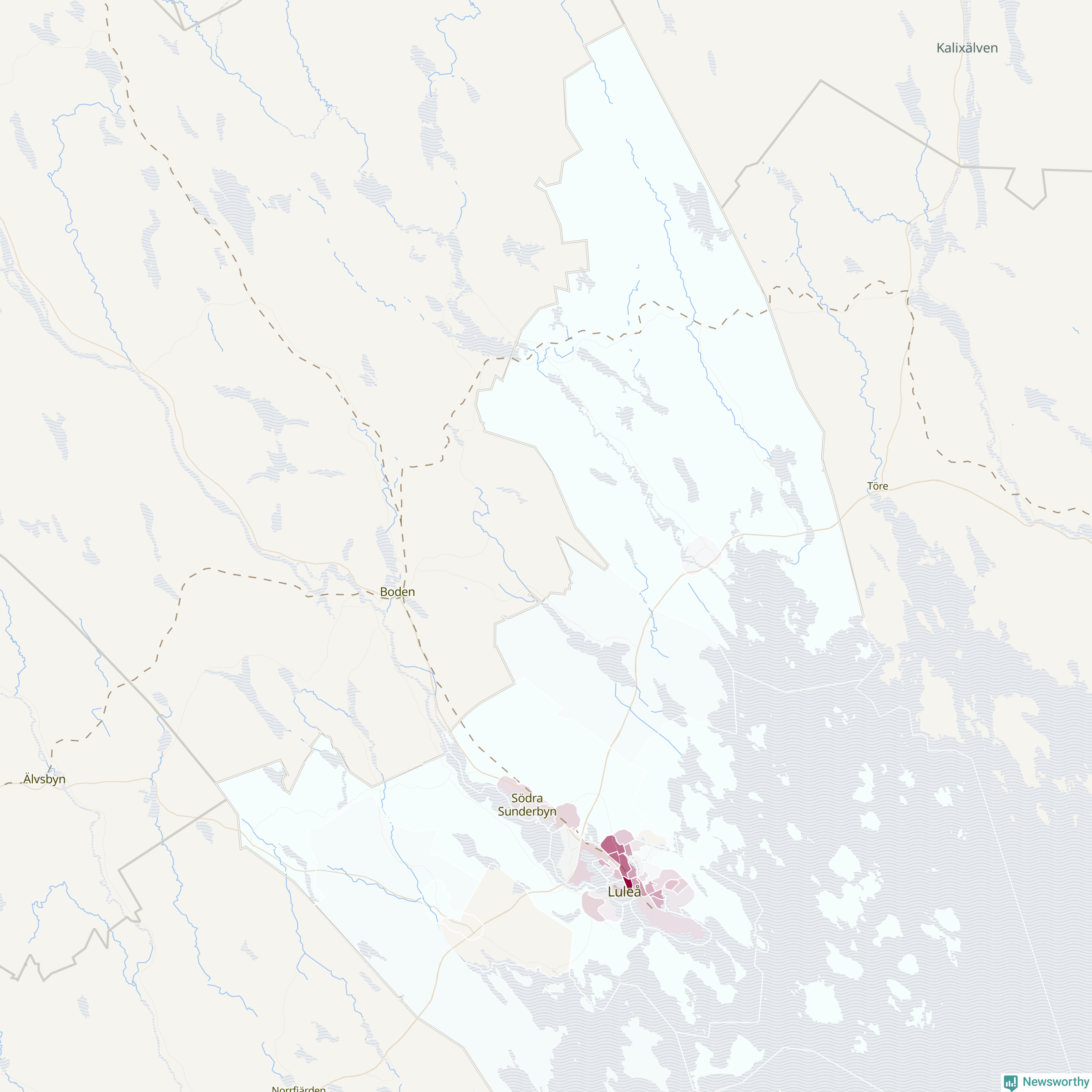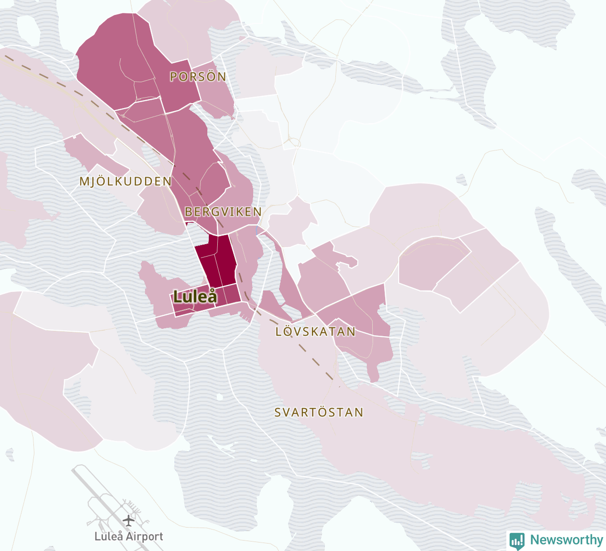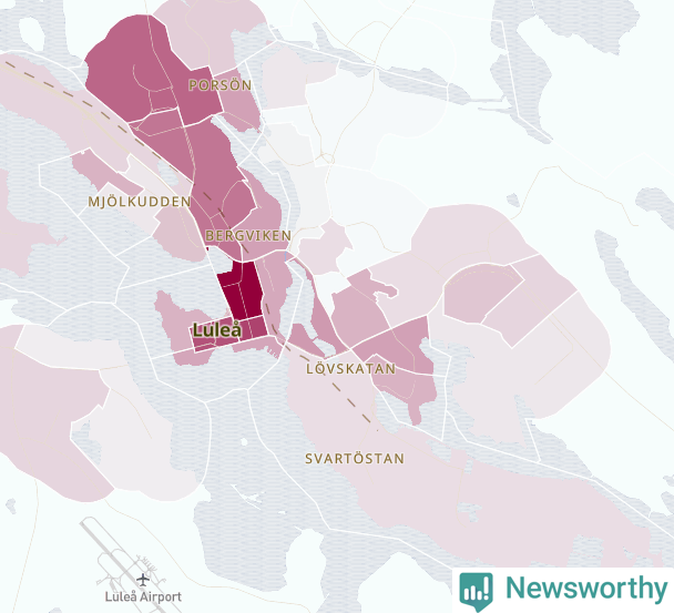 Men alla delar av Luleå är inte lika hårt drabbade. Det visar data för de senaste fem åren, som Newsworthy har begärt ut från polisen. De anmälda stölderna har kopplats till SCB:s 48 statistiska områden i kommunen. I tre områden finns inga cykelstölder registrerade, men i de övriga rör det sig om mellan en handfull och knappt 200 anmälda stölder per område.