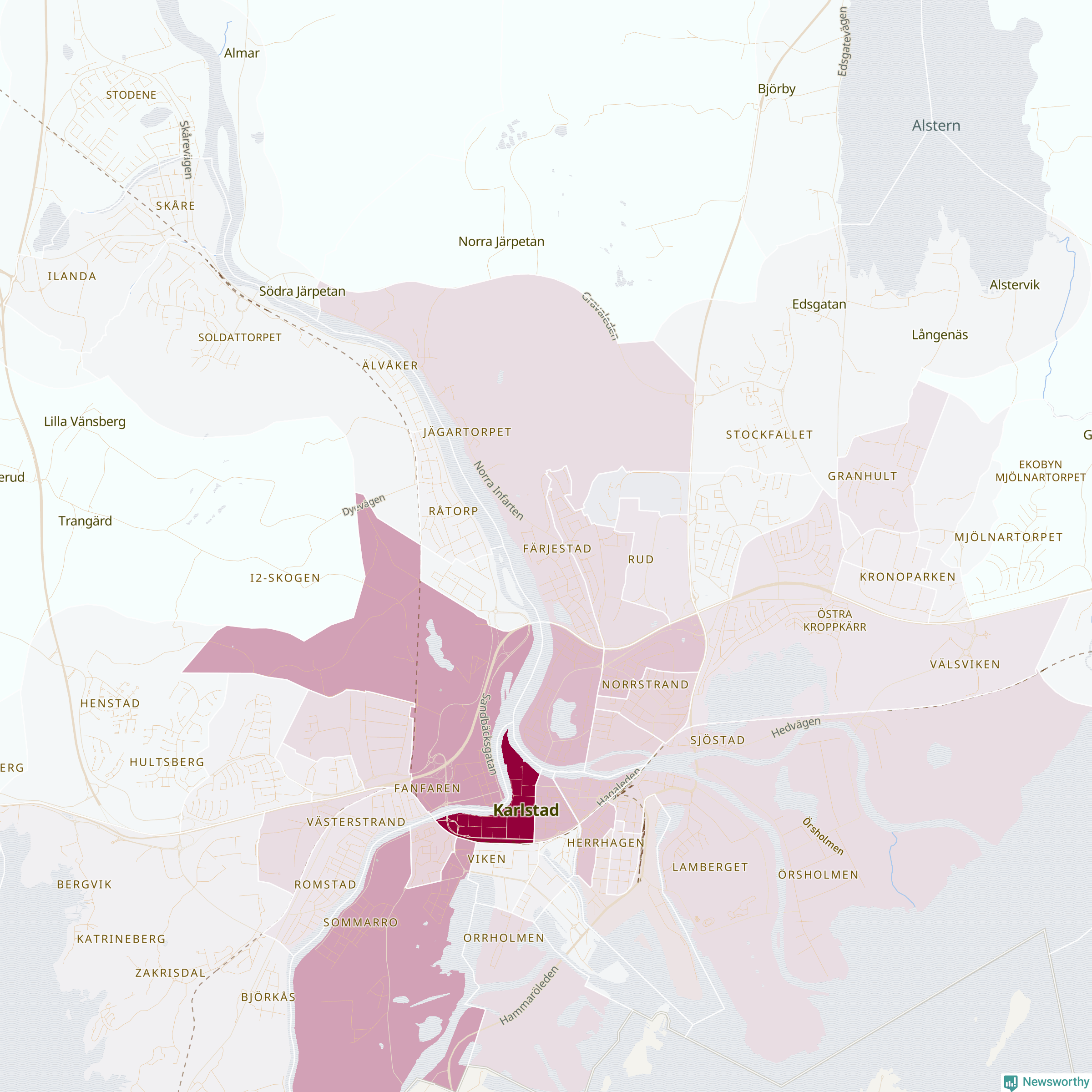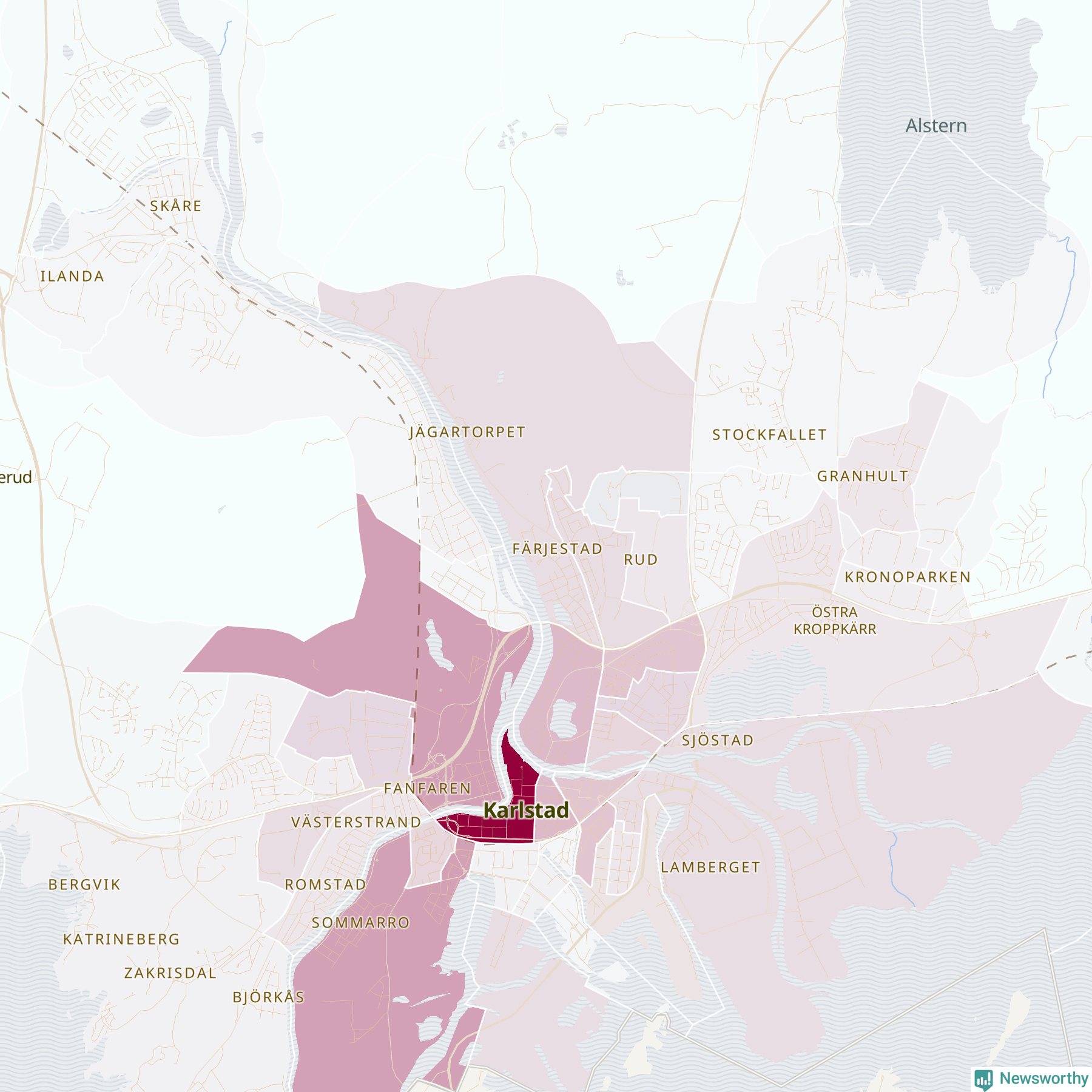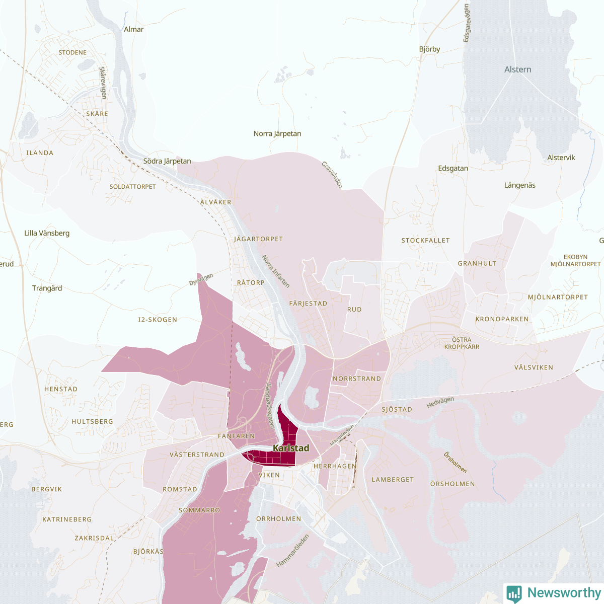 Men alla delar av Karlstad är inte lika hårt drabbade. Det visar data för de senaste fem åren, som Newsworthy har begärt ut från polisen. De anmälda stölderna har kopplats till SCB:s 57 statistiska områden i kommunen. Det rör sig om mellan en handfull och drygt 400 anmälda stölder per område.