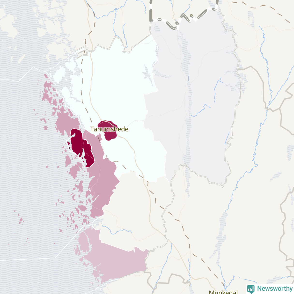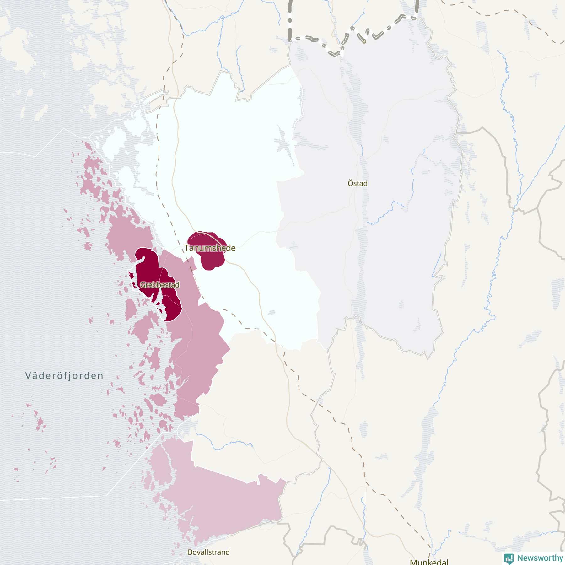 Skillnaderna mellan olika områden i Tanum är relativt små. Det visar data för de senaste fem åren, som Newsworthy har begärt ut från polisen. De anmälda stölderna har kopplats till SCB:s sju statistiska områden i kommunen. I ett område finns inga cykelstölder registrerade, men i de övriga rör det sig om mellan en handfull och ett femtontal anmälda stölder per område.