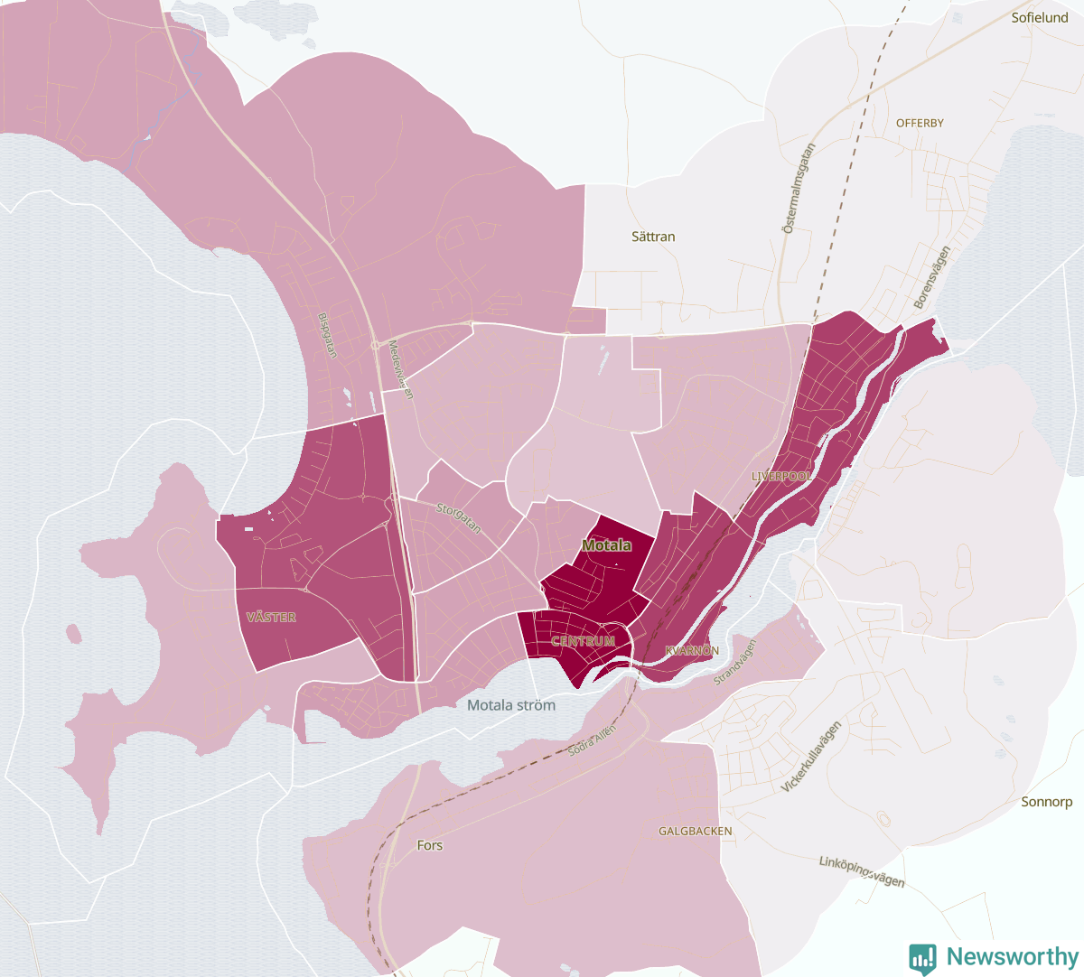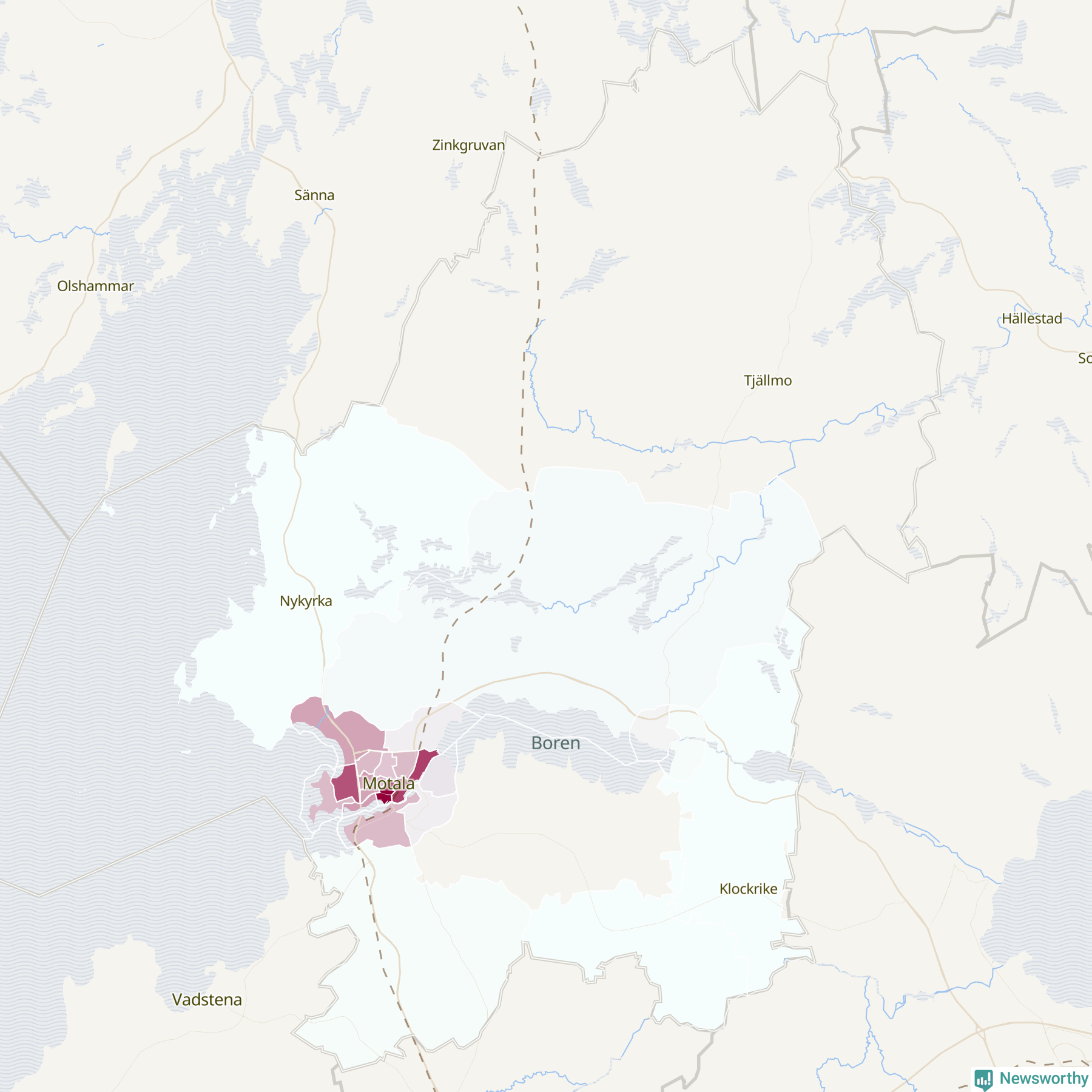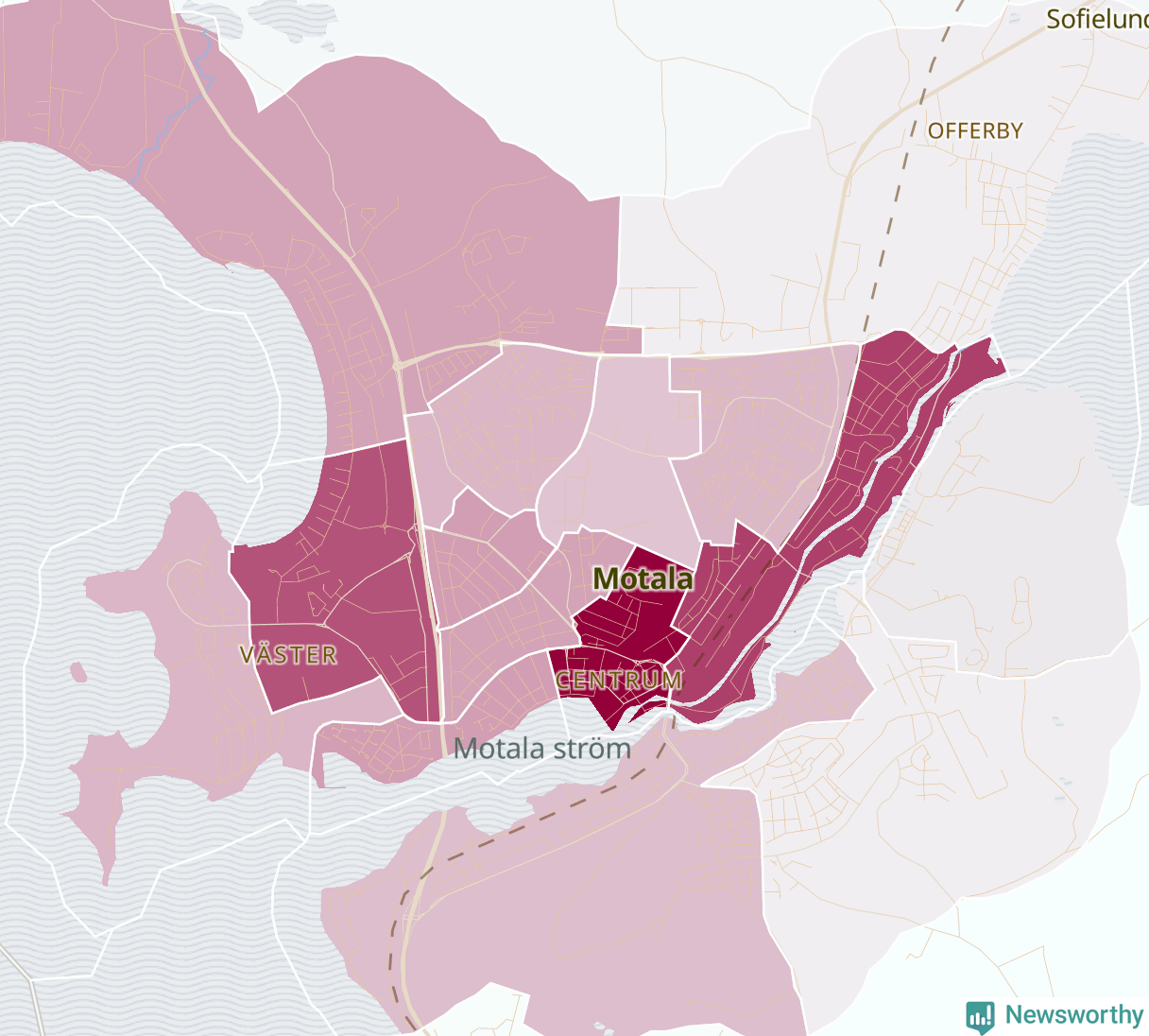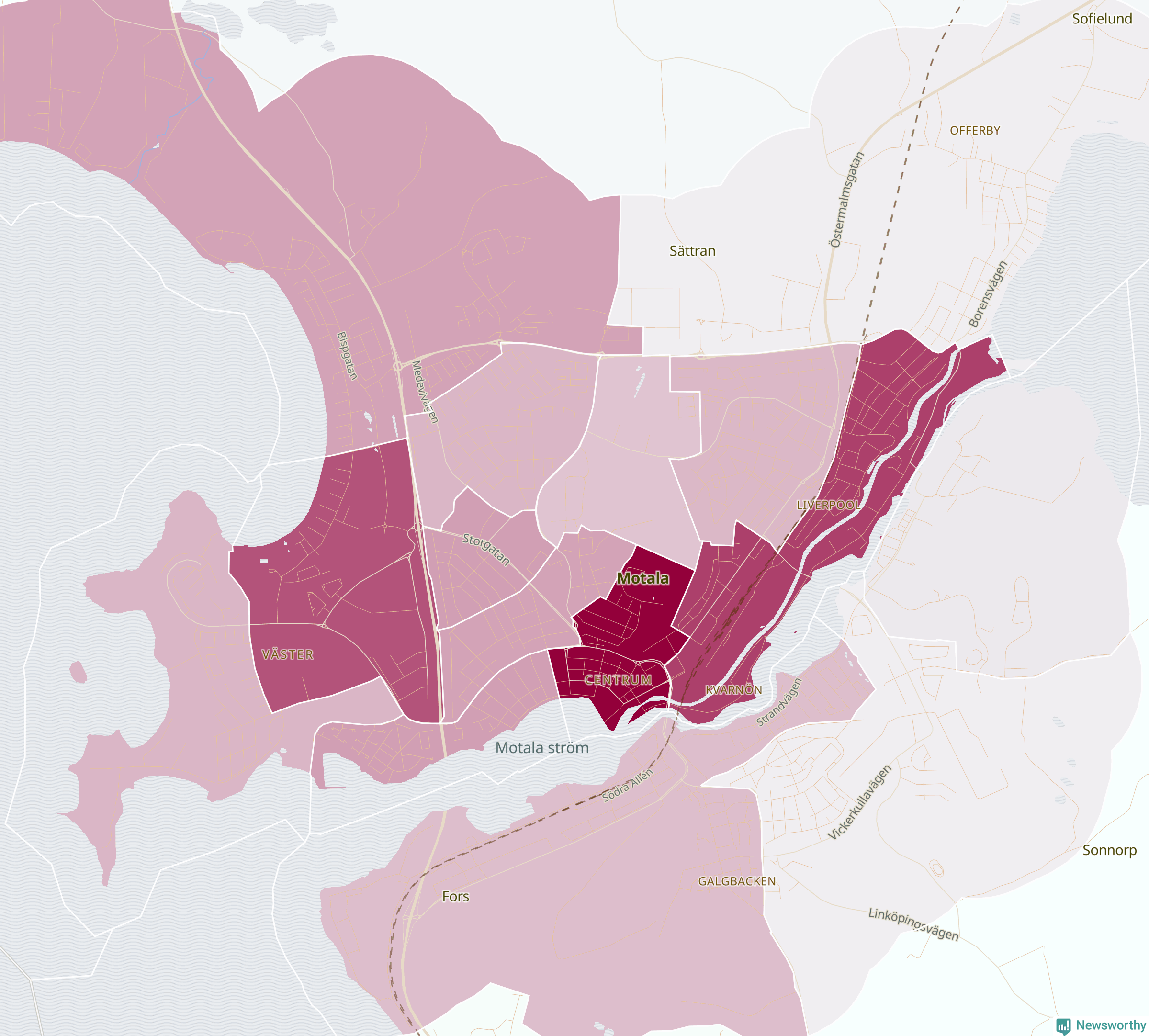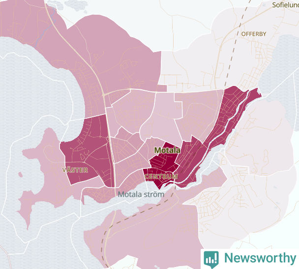 Men alla delar av Motala är inte lika hårt drabbade. Det visar data för de senaste fem åren, som Newsworthy har begärt ut från polisen. De anmälda stölderna har kopplats till SCB:s 24 statistiska områden i kommunen. I två områden finns inga cykelstölder registrerade, men i de övriga rör det sig om mellan en handfull och knappt 300 anmälda stölder per område.