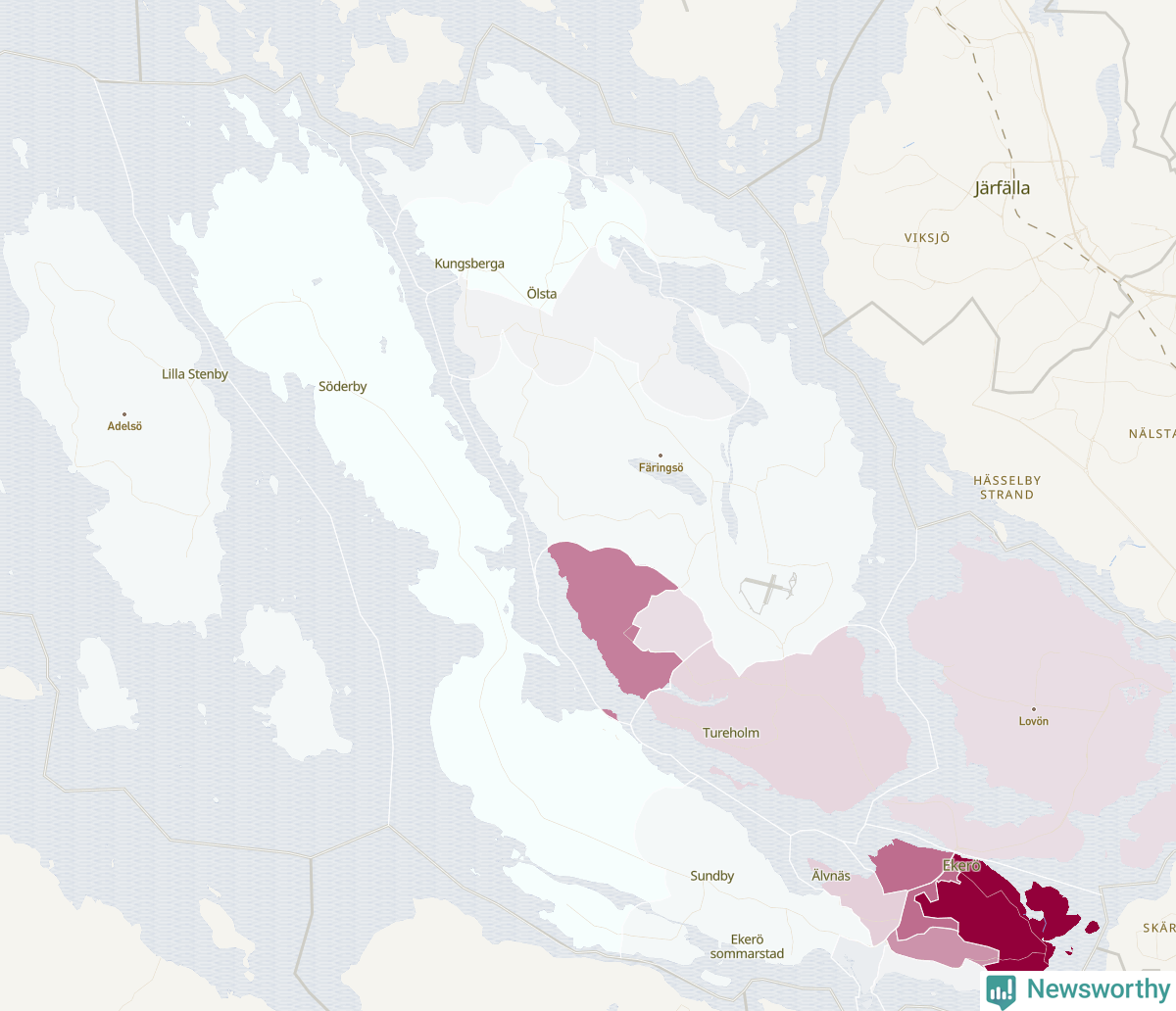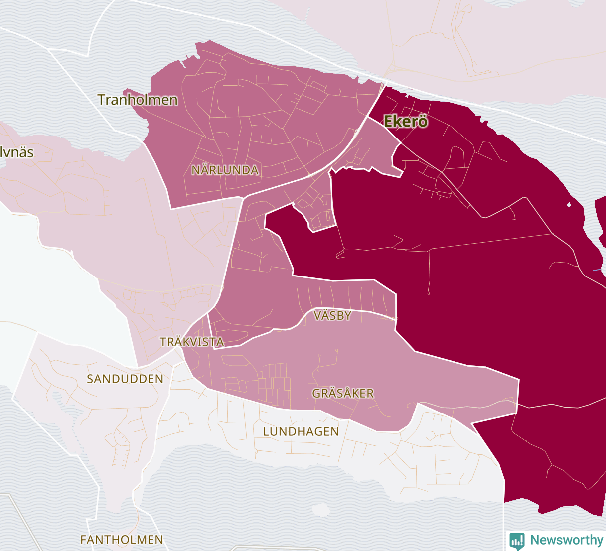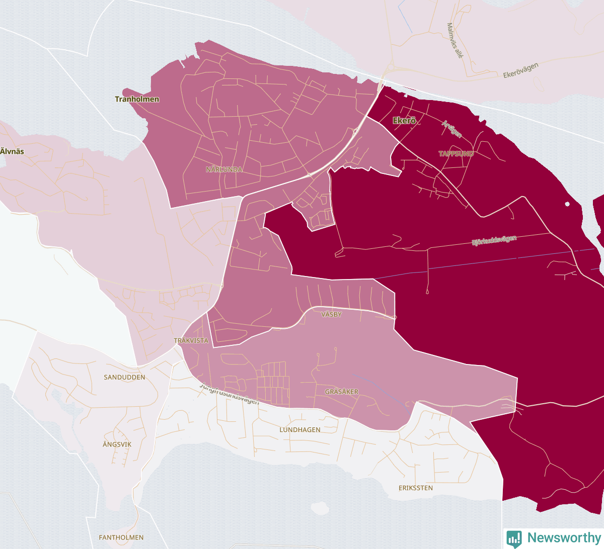Det finns skillnader mellan olika områden. Det visar data för de senaste fem åren, som Newsworthy har begärt ut från polisen. De anmälda stölderna har kopplats till SCB:s 17 statistiska områden i kommunen. Det rör sig om mellan en handfull och ett fyrtiotal anmälda stölder per område.