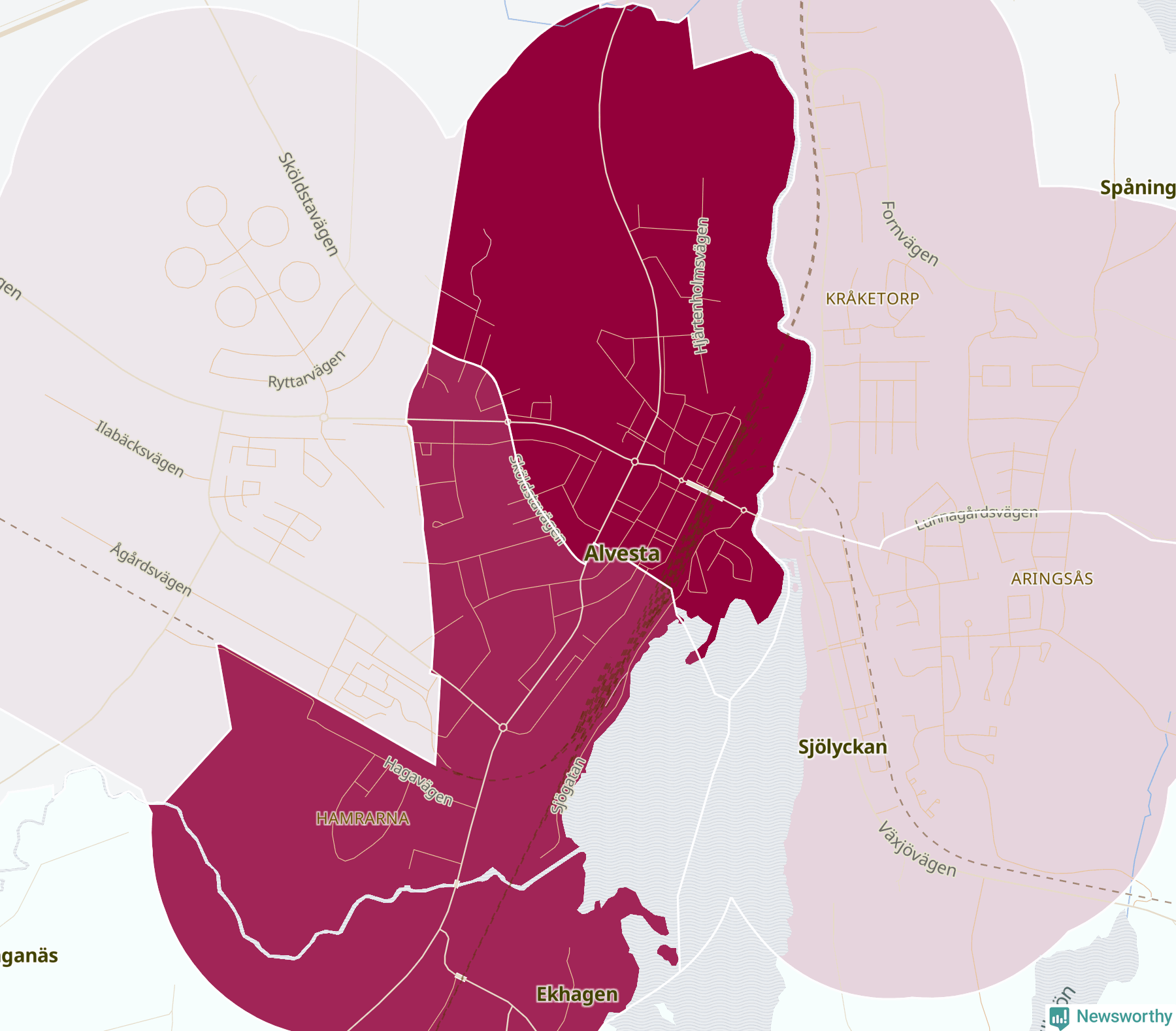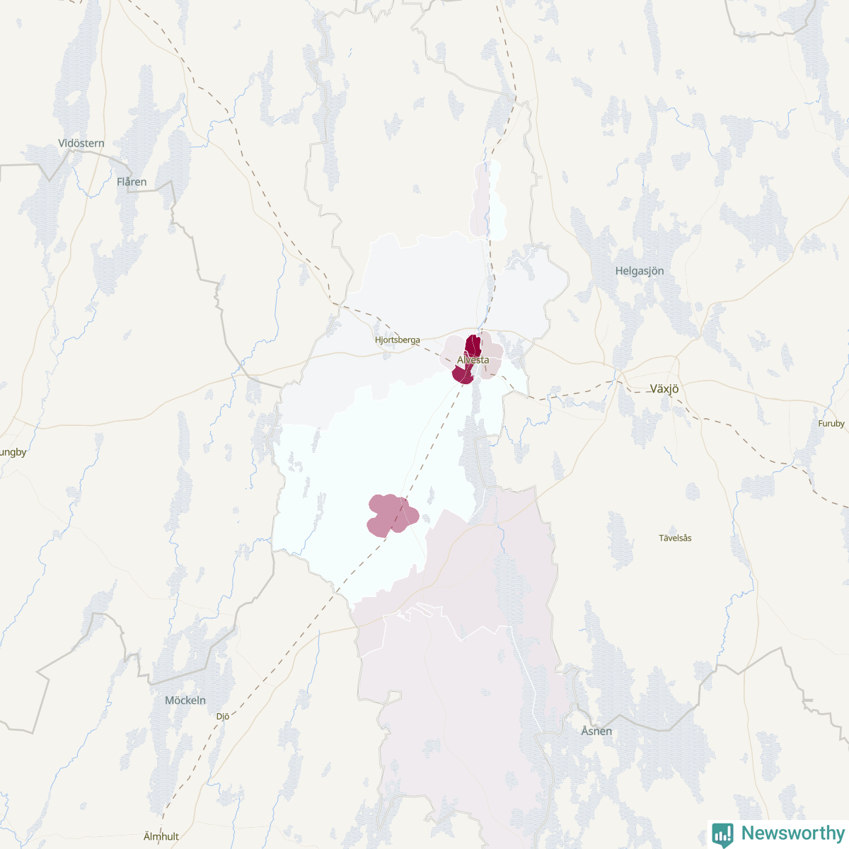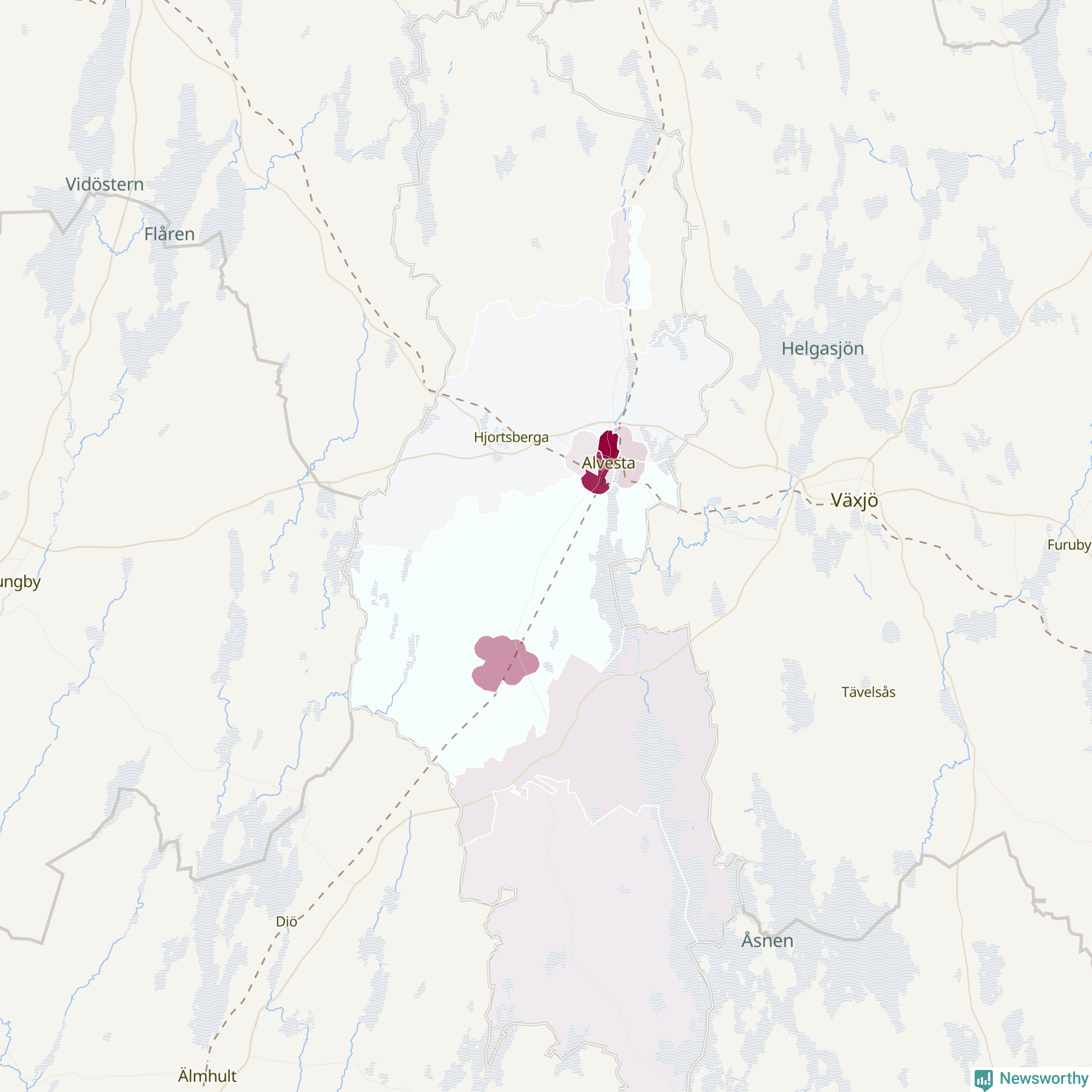 Men alla delar av Alvesta är inte lika hårt drabbade. Det visar data för de senaste fem åren, som Newsworthy har begärt ut från polisen. De anmälda stölderna har kopplats till SCB:s 13 statistiska områden i kommunen. I ett område finns inga cykelstölder registrerade, men i de övriga rör det sig om mellan en handfull och ett sextiotal anmälda stölder per område.