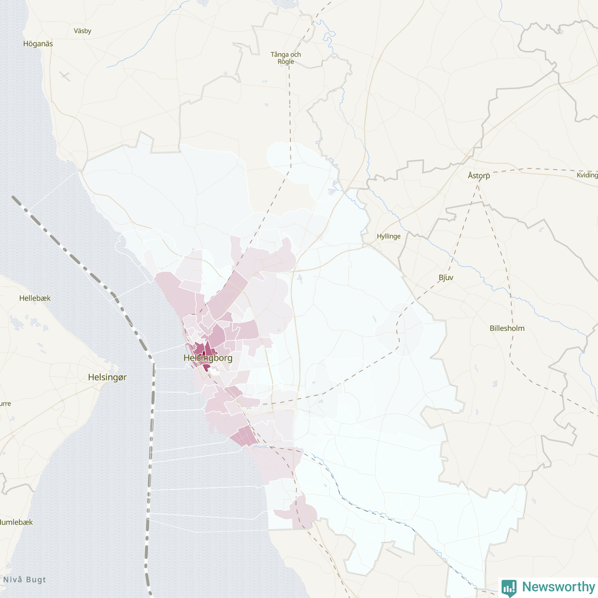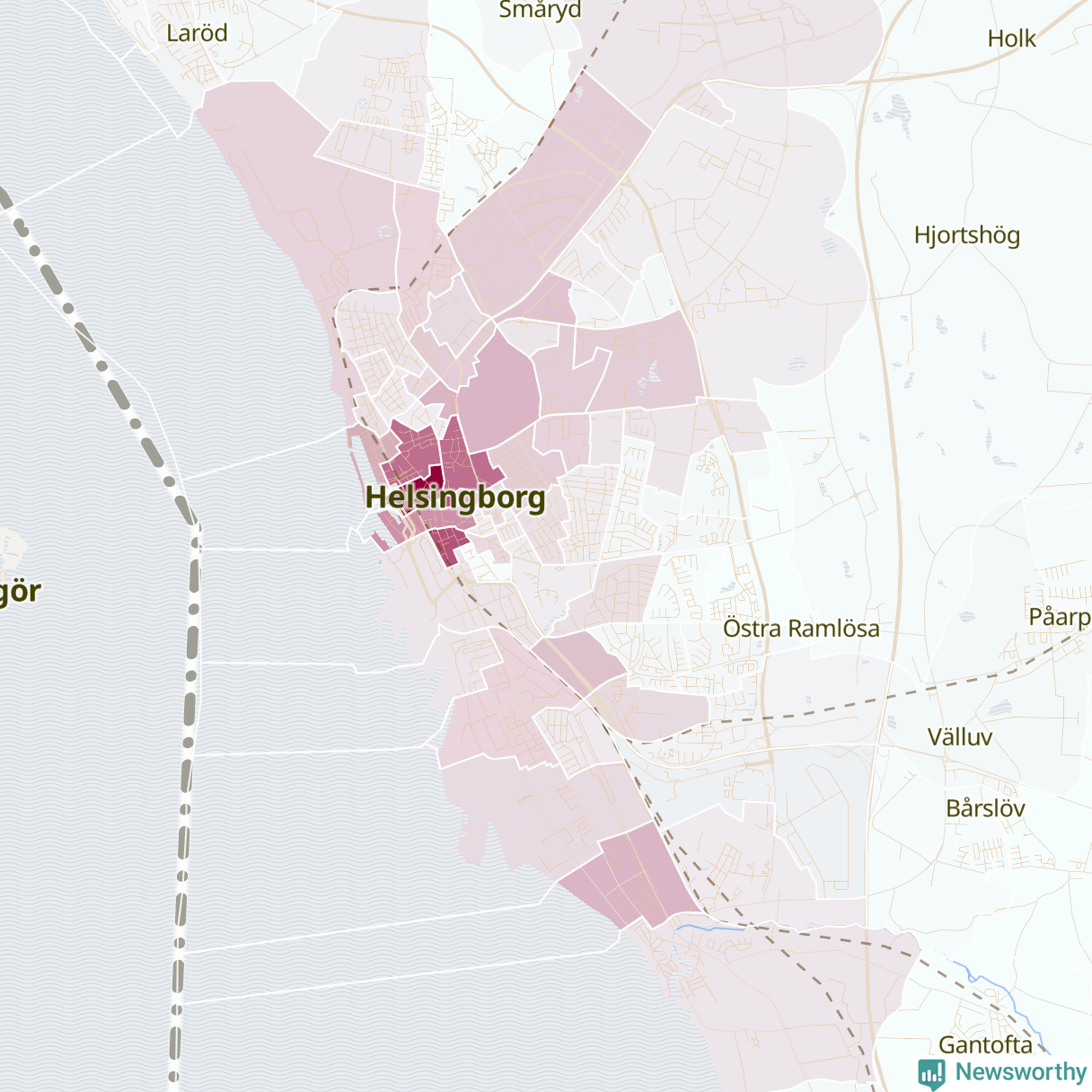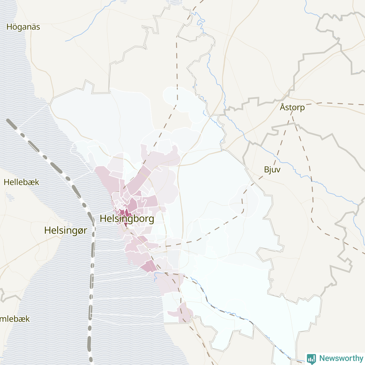 Men alla delar av Helsingborg är inte lika hårt drabbade. Det visar data för de senaste fem åren, som Newsworthy har begärt ut från polisen. De anmälda stölderna har kopplats till SCB:s 84 statistiska områden i kommunen. I ett område finns inga cykelstölder registrerade, men i de övriga rör det sig om mellan en handfull och knappt 500 anmälda stölder per område.