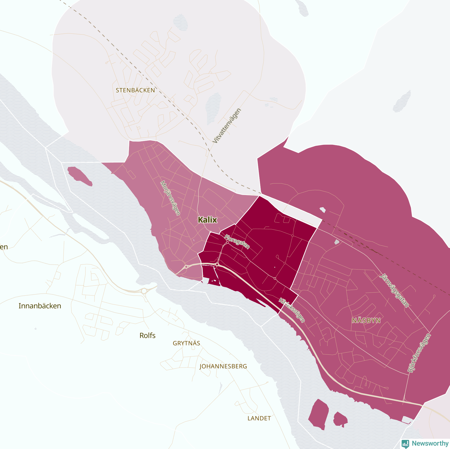 Men alla delar av Kalix är inte lika hårt drabbade. Det visar data för de senaste fem åren, som Newsworthy har begärt ut från polisen. De anmälda stölderna har kopplats till SCB:s elva statistiska områden i kommunen. I tre områden finns inga cykelstölder registrerade, men i de övriga rör det sig om mellan en handfull och ett sjuttiotal anmälda stölder per område.