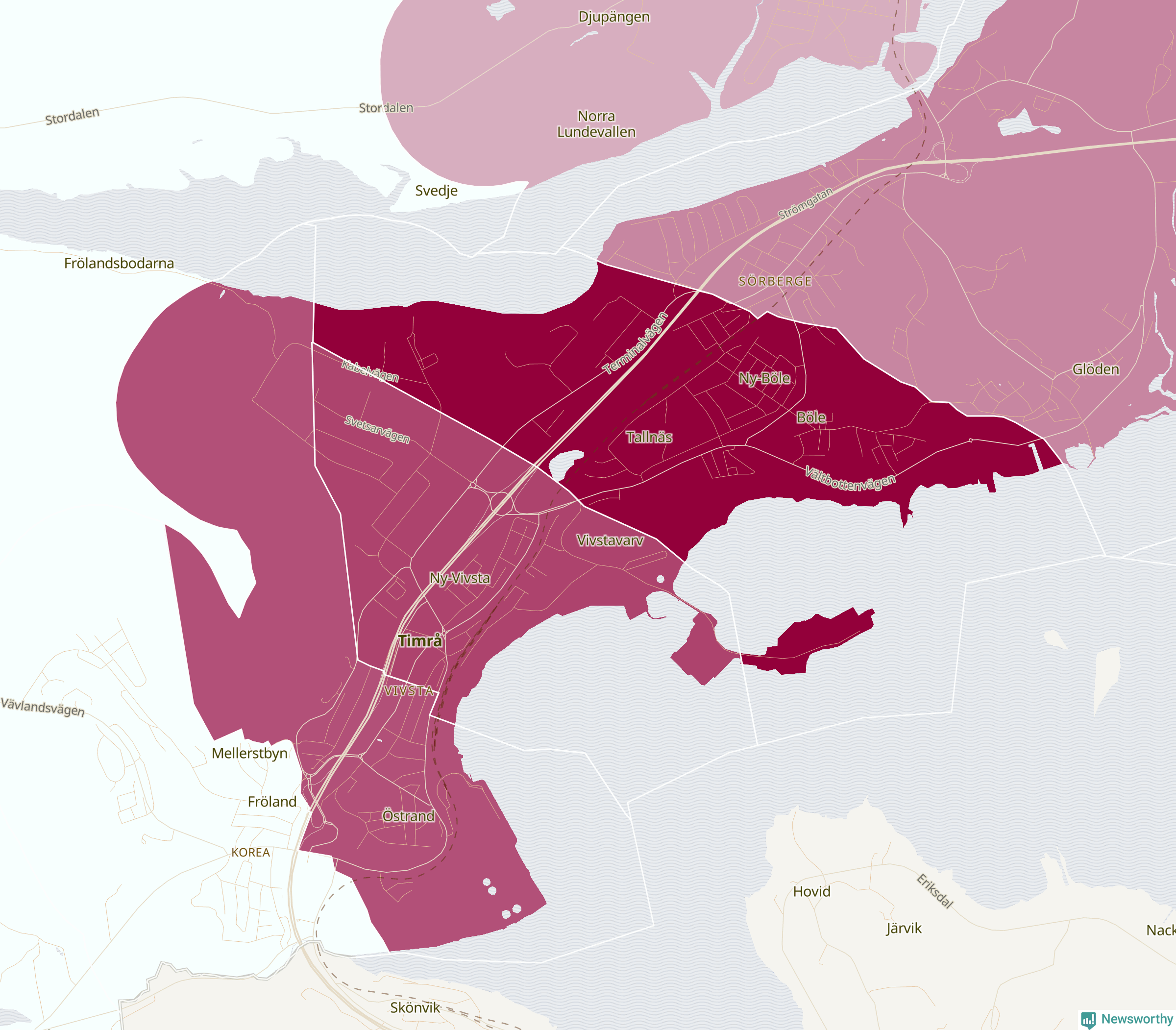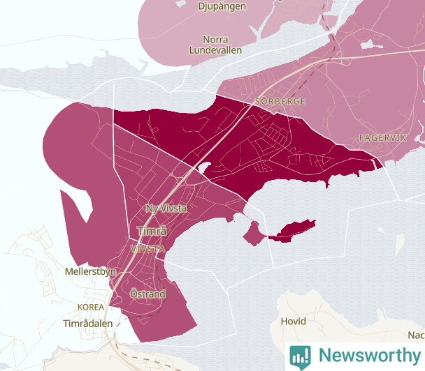 Skillnaderna mellan olika områden i Timrå är relativt små. Det visar data för de senaste fem åren, som Newsworthy har begärt ut från polisen. De anmälda stölderna har kopplats till SCB:s nio statistiska områden i kommunen. I två områden finns inga cykelstölder registrerade, men i de övriga rör det sig om mellan en handfull och ett tjugotal anmälda stölder per område.