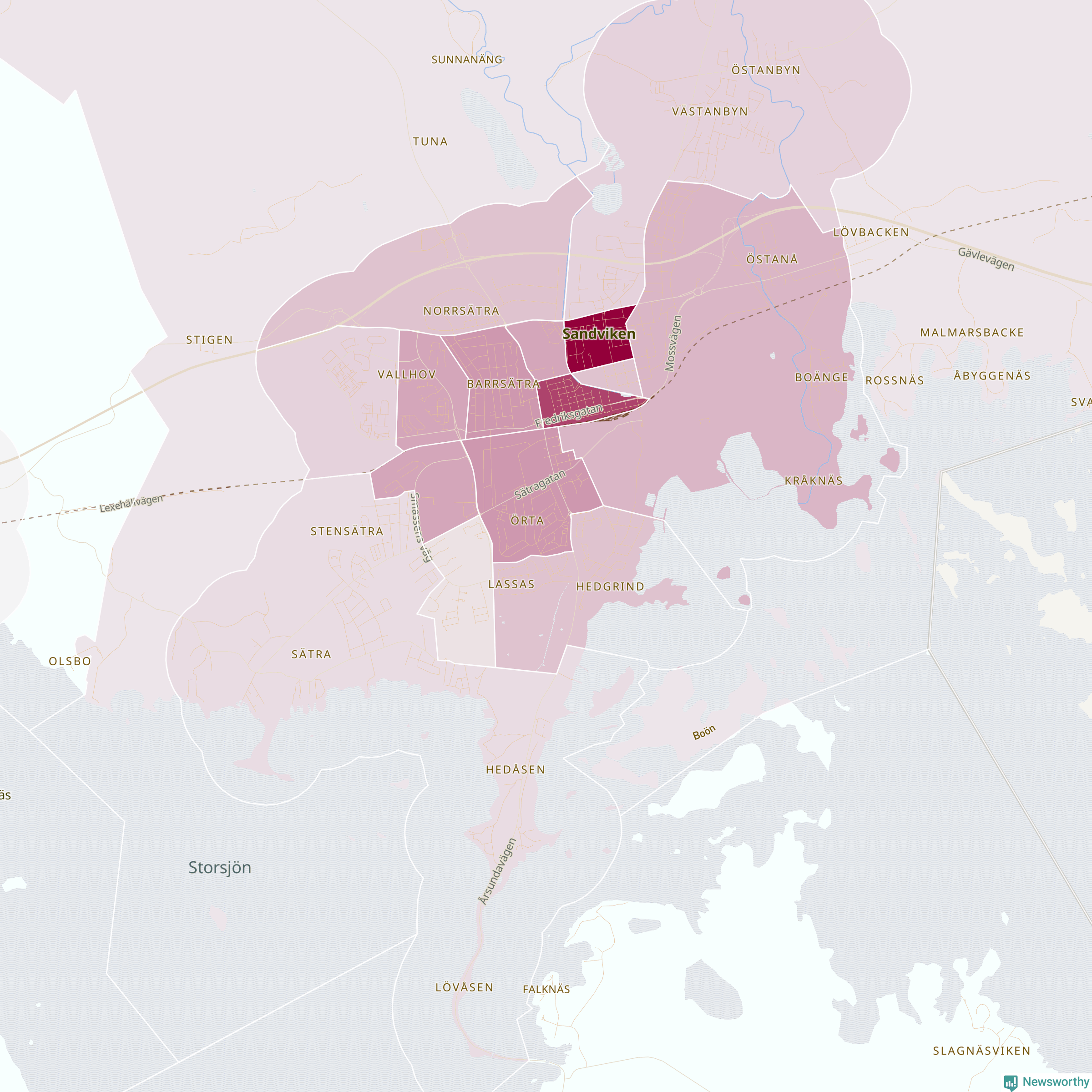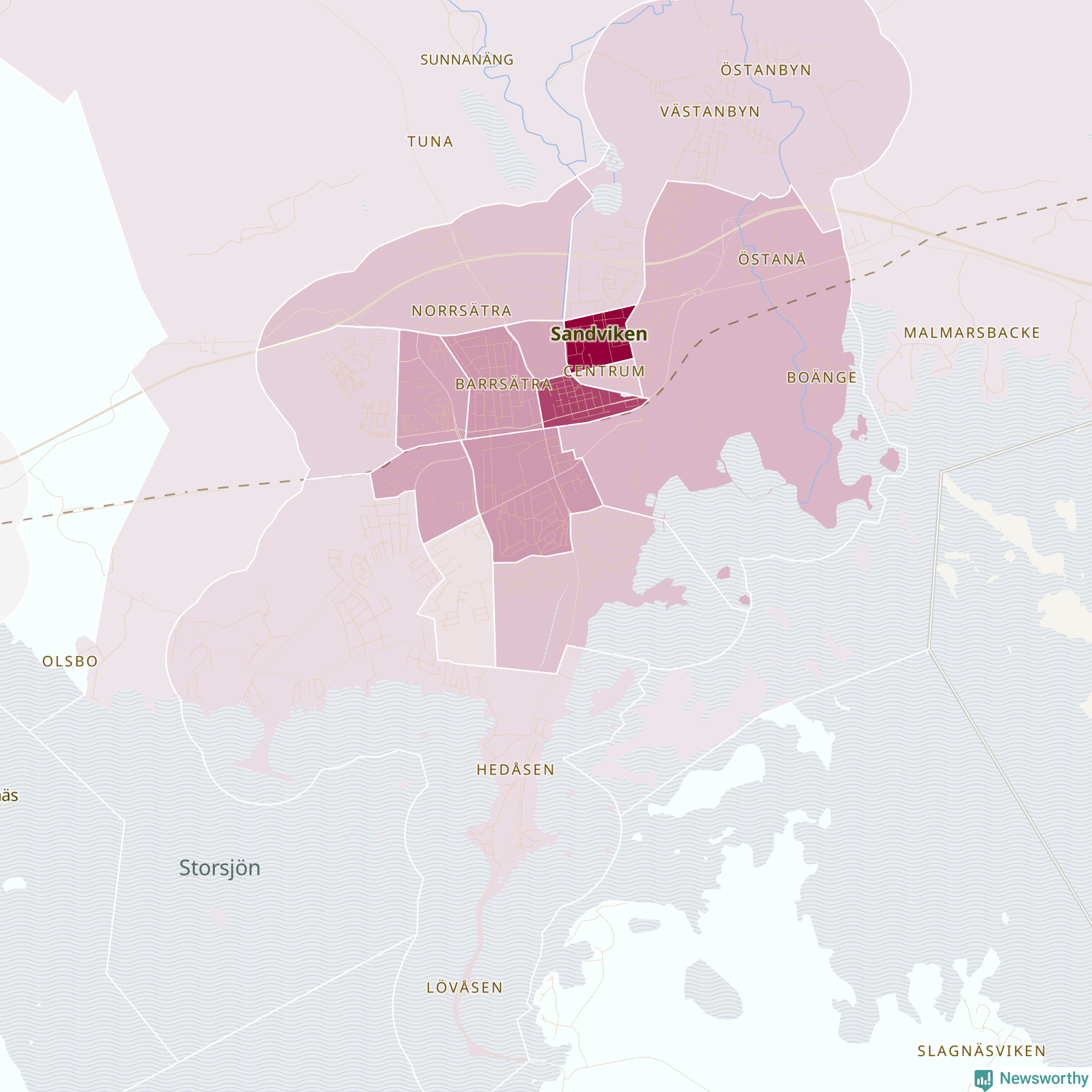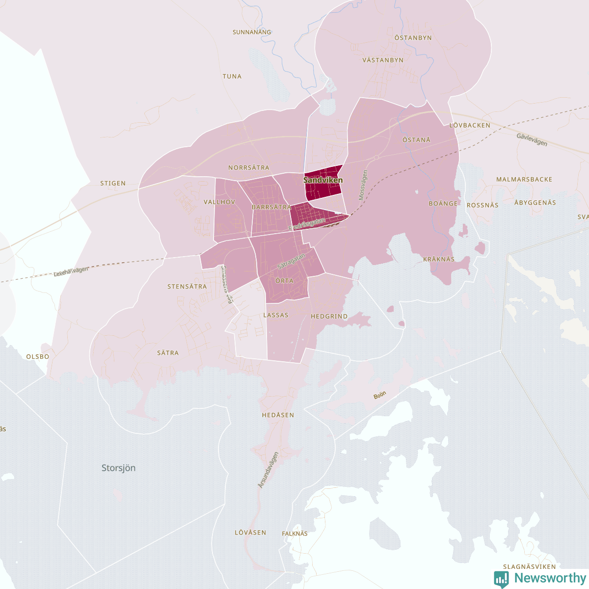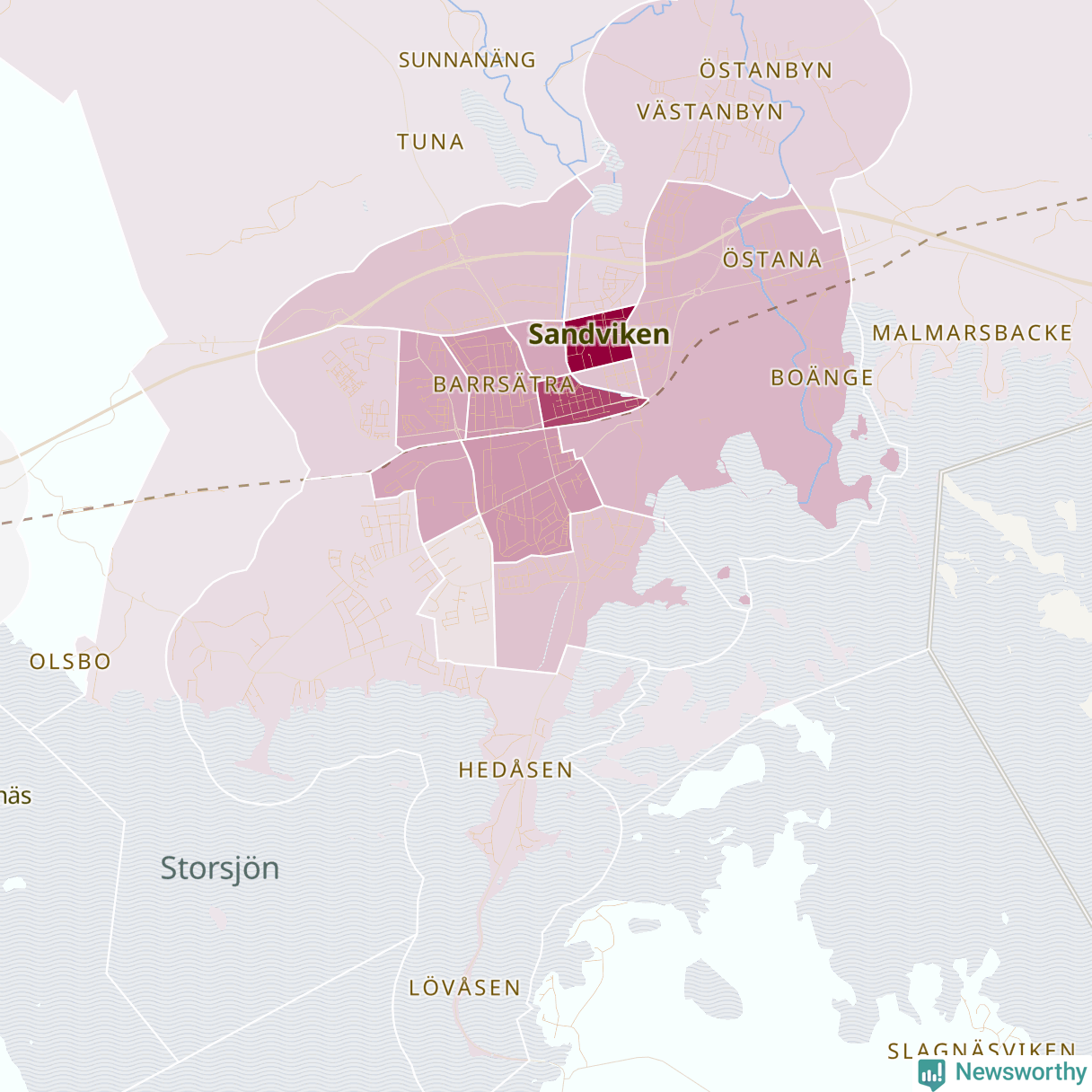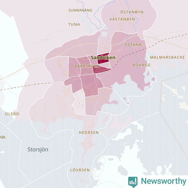 Men alla delar av Sandviken är inte lika hårt drabbade. Det visar data för de senaste fem åren, som Newsworthy har begärt ut från polisen. De anmälda stölderna har kopplats till SCB:s 25 statistiska områden i kommunen. I två områden finns inga cykelstölder registrerade, men i de övriga rör det sig om mellan en handfull och ett åttiotal anmälda stölder per område.
