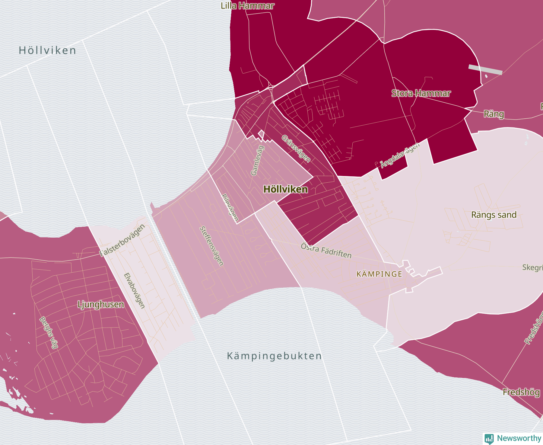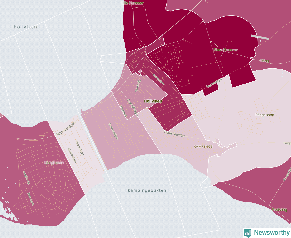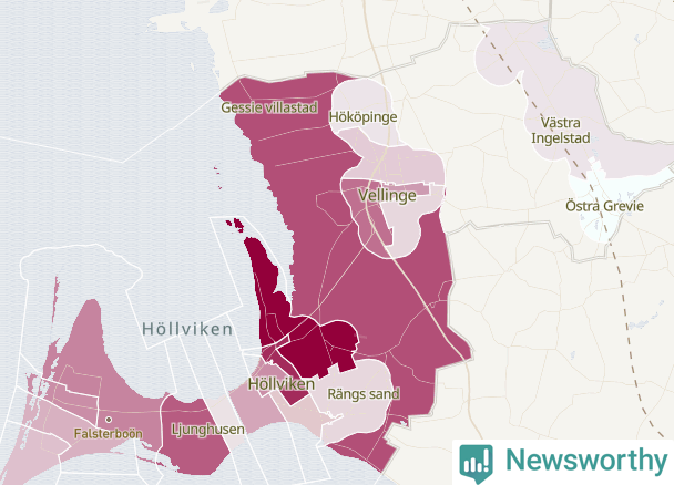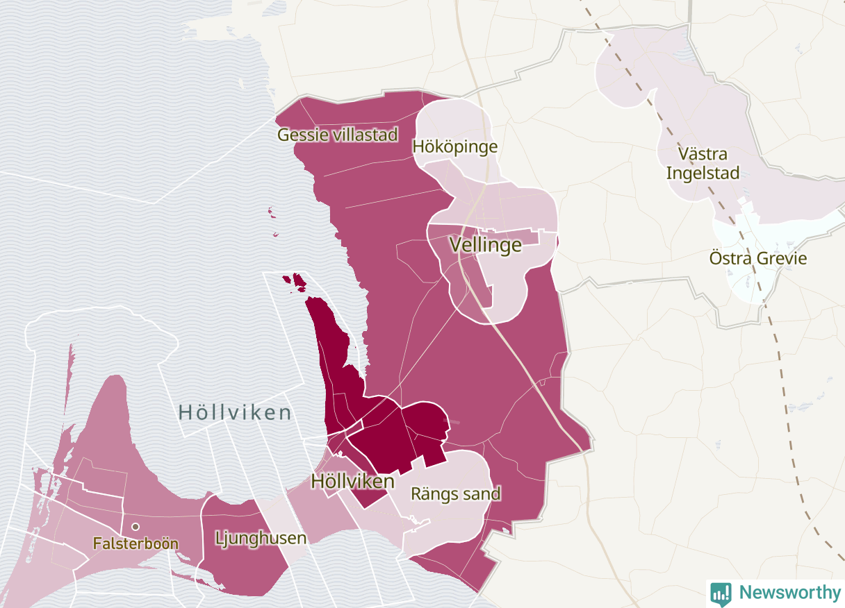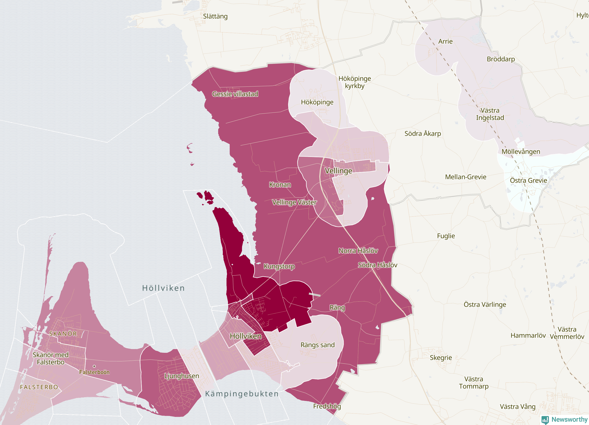 Men alla delar av Vellinge är inte lika hårt drabbade. Det visar data för de senaste fem åren, som Newsworthy har begärt ut från polisen. De anmälda stölderna har kopplats till SCB:s 21 statistiska områden i kommunen. I ett område finns inga cykelstölder registrerade, men i de övriga rör det sig om mellan en handfull och ett åttiotal anmälda stölder per område.