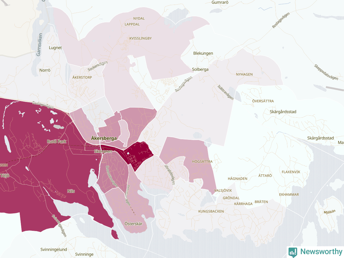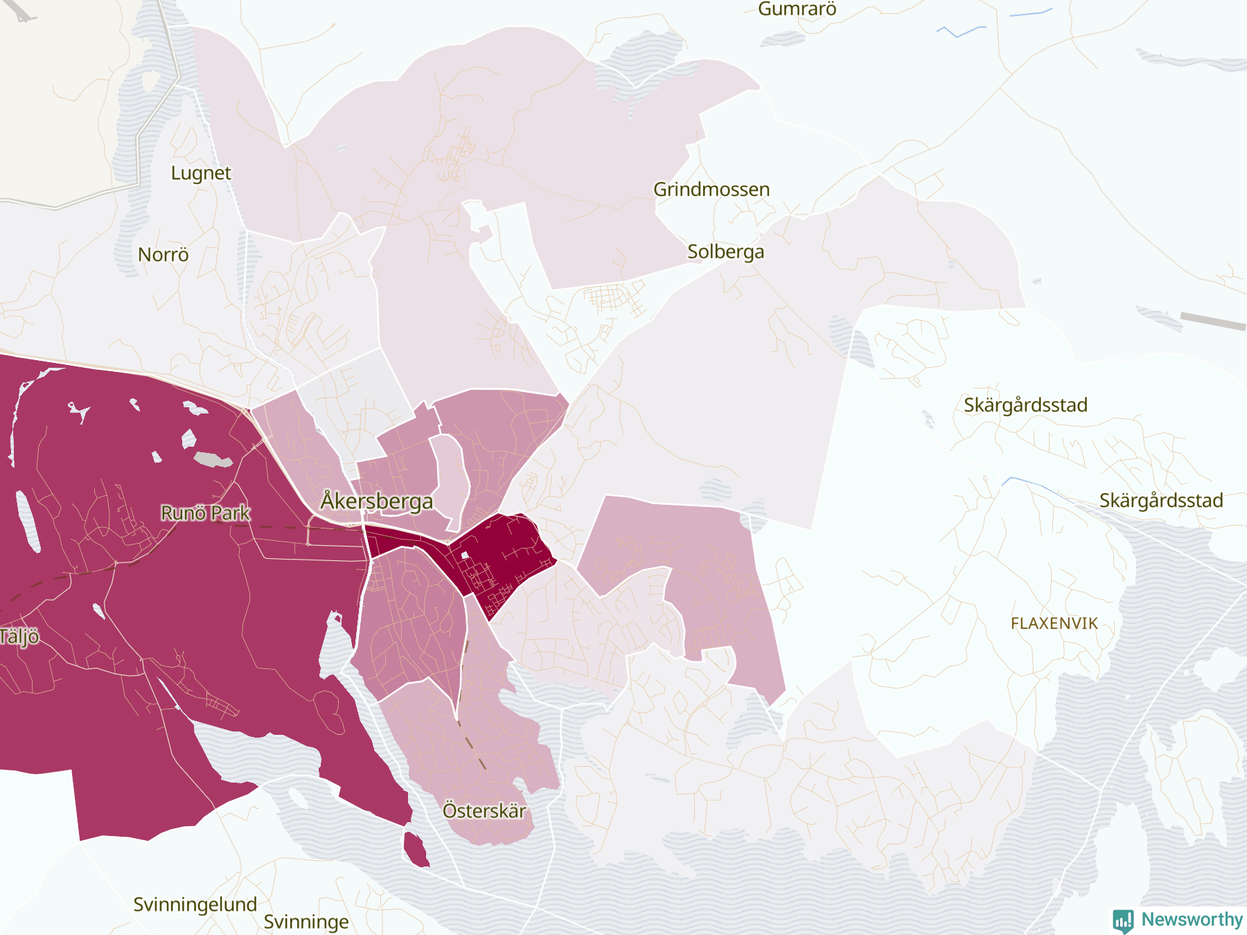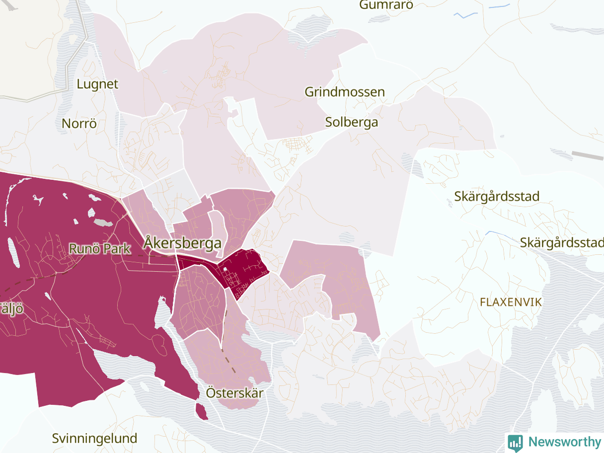 Men alla delar av Österåker är inte lika hårt drabbade. Det visar data för de senaste fem åren, som Newsworthy har begärt ut från polisen. De anmälda stölderna har kopplats till SCB:s 24 statistiska områden i kommunen. I ett område finns inga cykelstölder registrerade, men i de övriga rör det sig om mellan en handfull och ett sextiotal anmälda stölder per område.