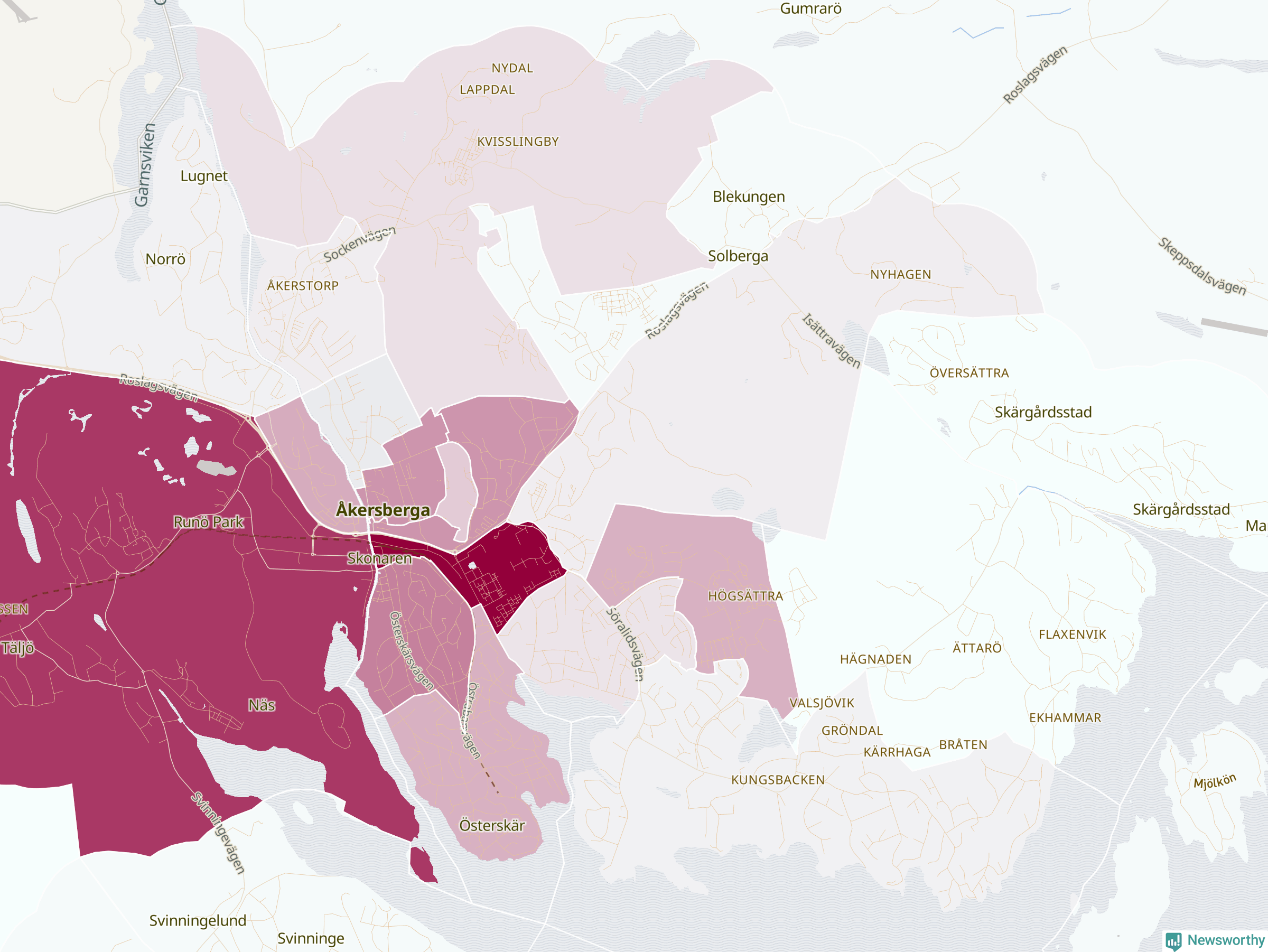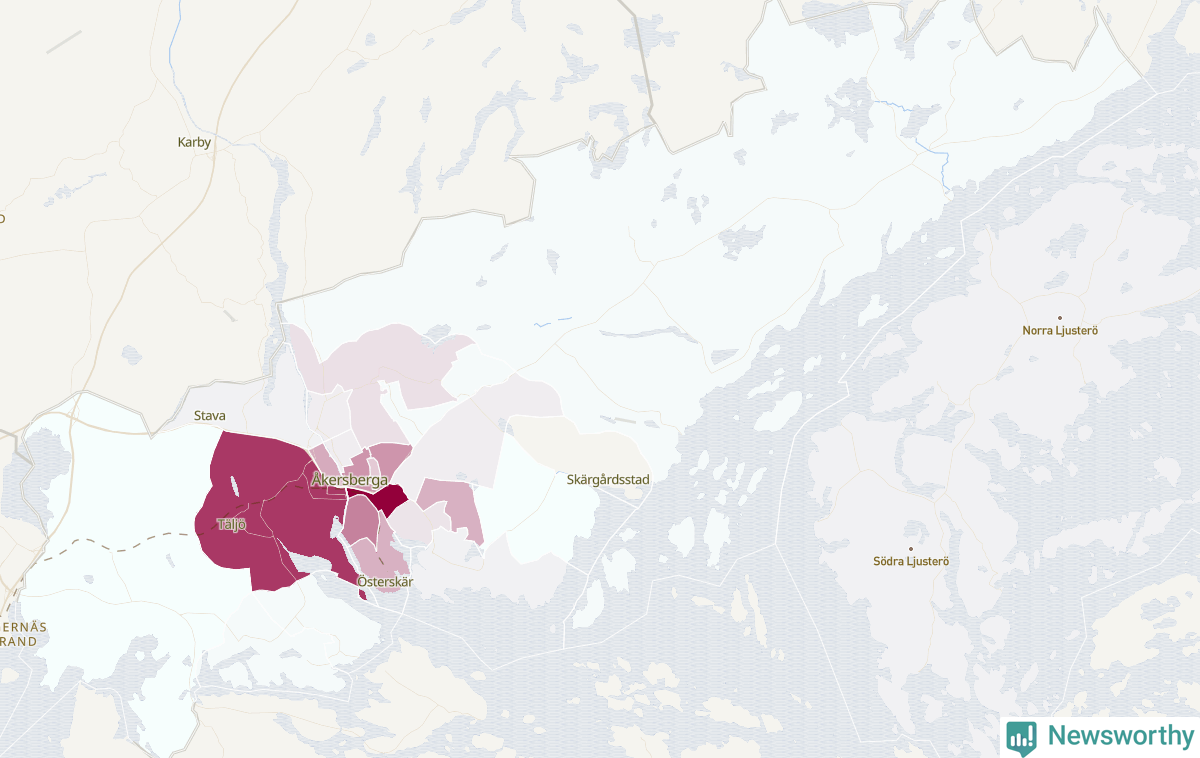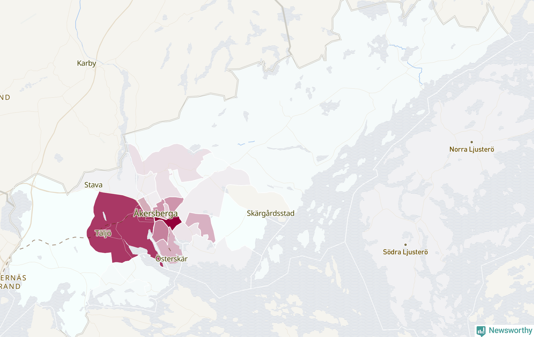 Men alla delar av Österåker är inte lika hårt drabbade. Det visar data för de senaste fem åren, som Newsworthy har begärt ut från polisen. De anmälda stölderna har kopplats till SCB:s 24 statistiska områden i kommunen. I ett område finns inga cykelstölder registrerade, men i de övriga rör det sig om mellan en handfull och ett sextiotal anmälda stölder per område.