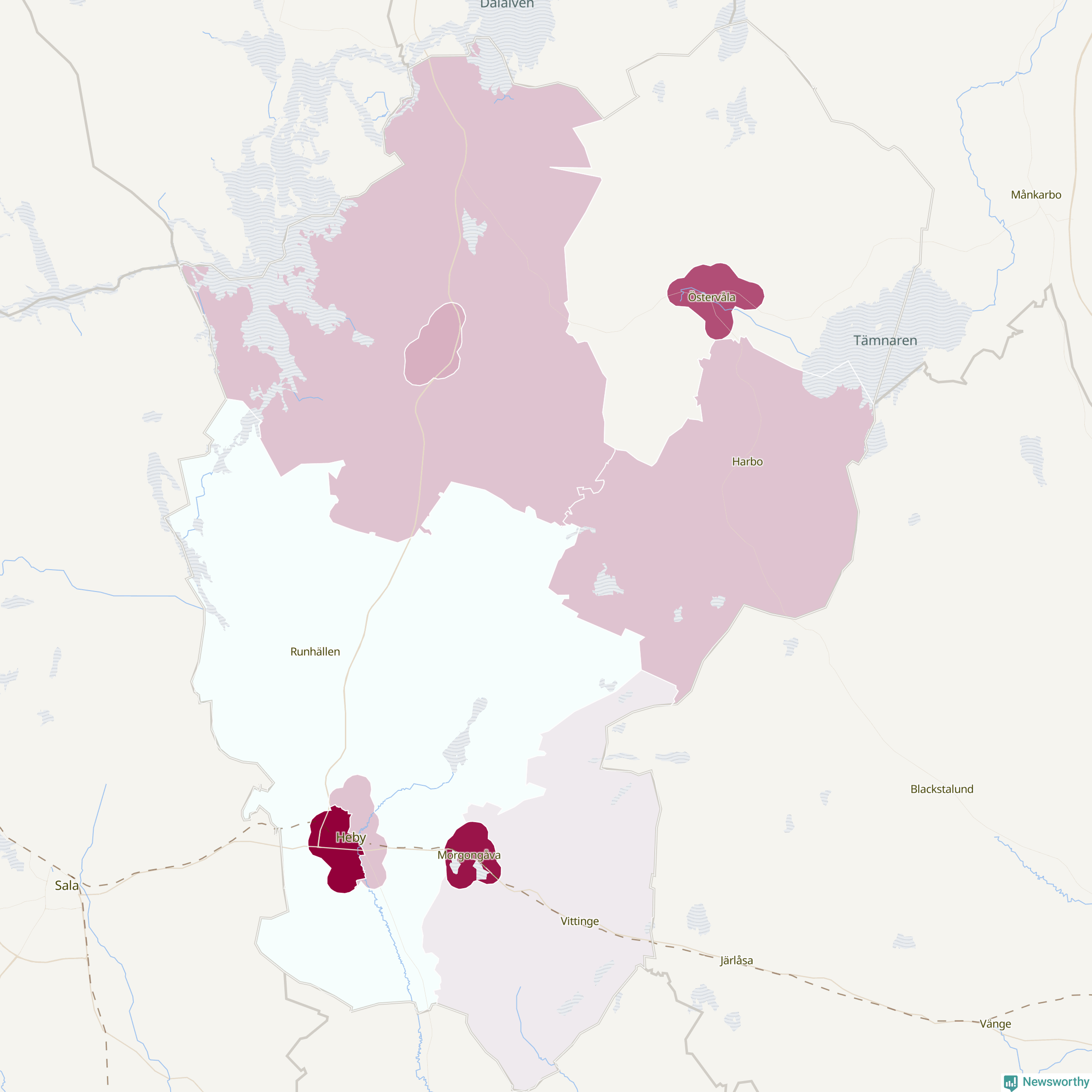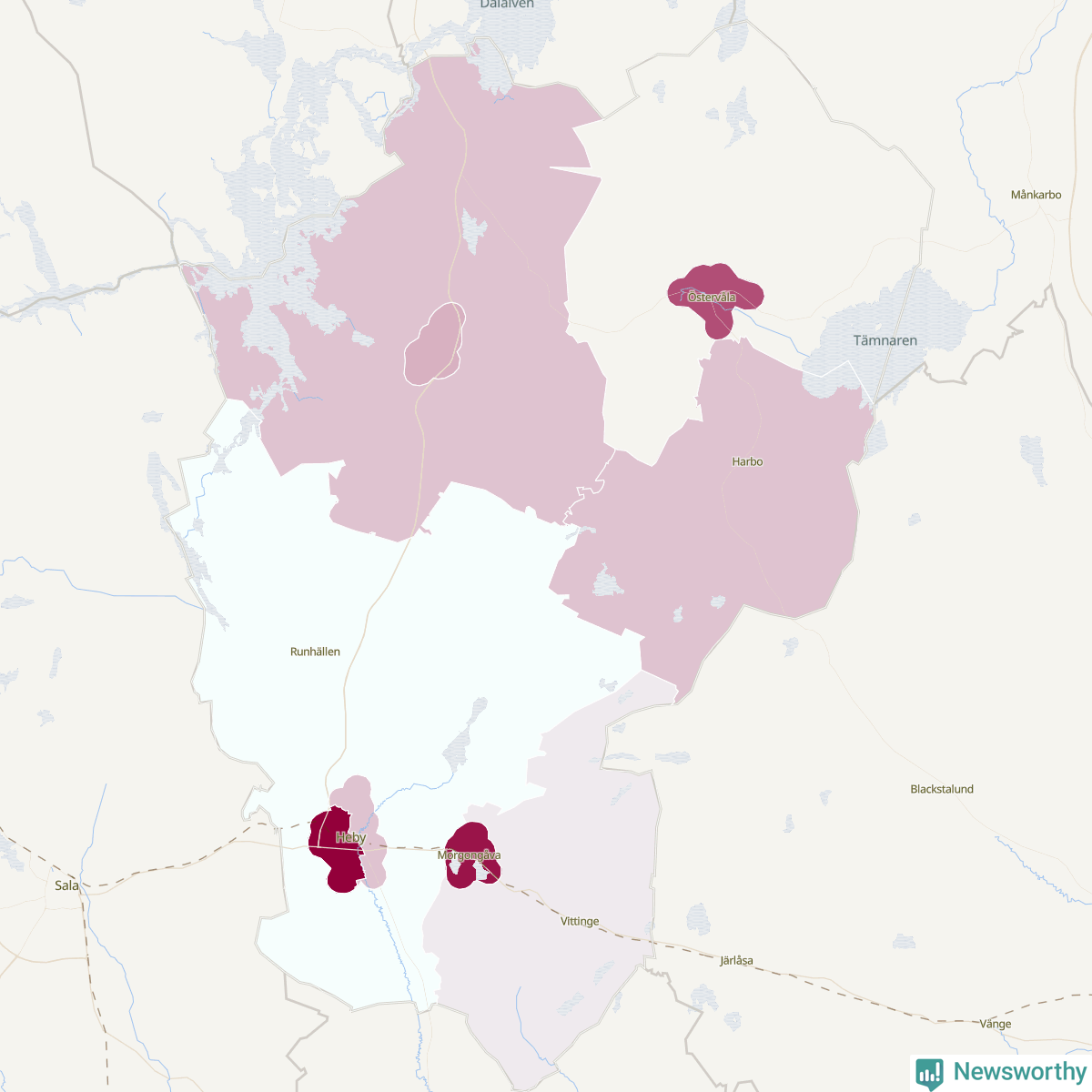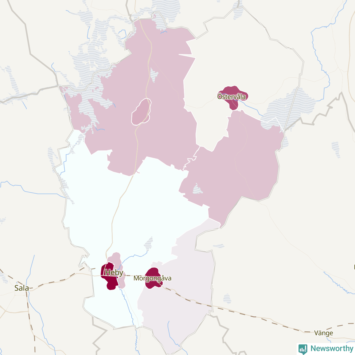 Skillnaderna mellan olika områden i Heby är relativt små. Det visar data för de senaste fem åren, som Newsworthy har begärt ut från polisen. De anmälda stölderna har kopplats till SCB:s tio statistiska områden i kommunen. I ett område finns inga cykelstölder registrerade, men i de övriga rör det sig om mellan en handfull och ett femtontal anmälda stölder per område.