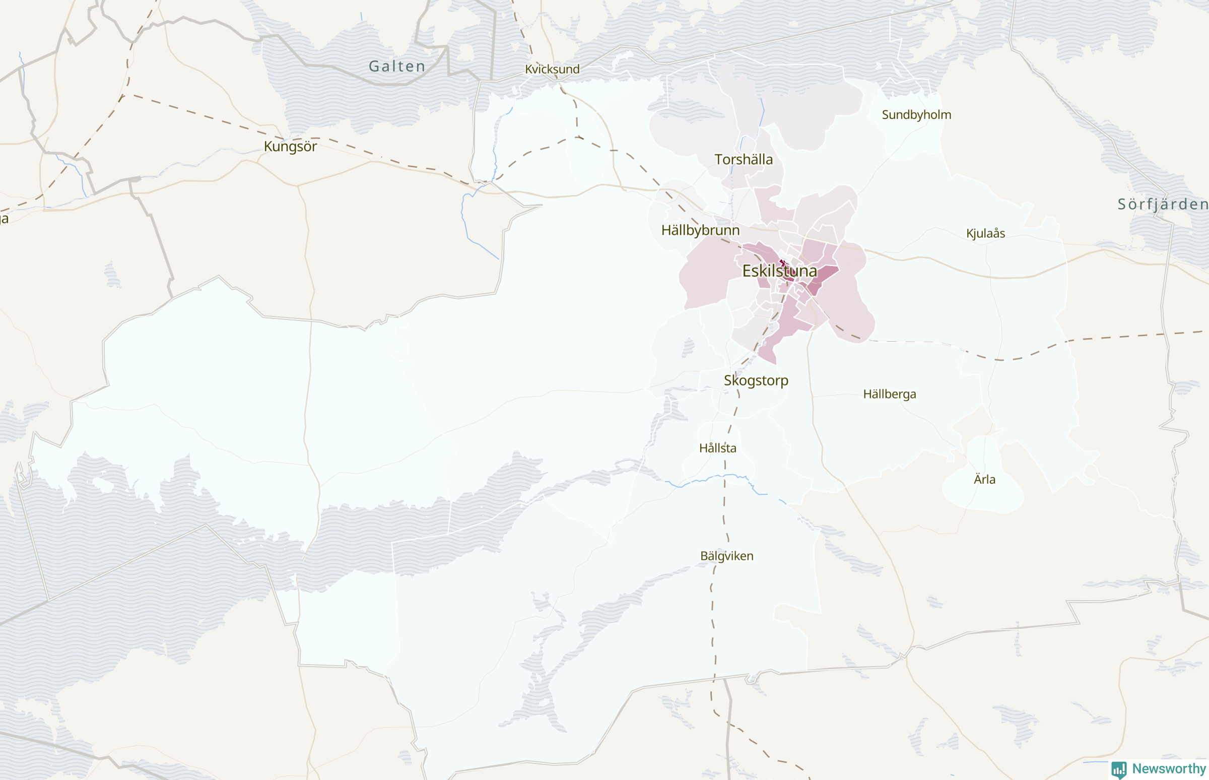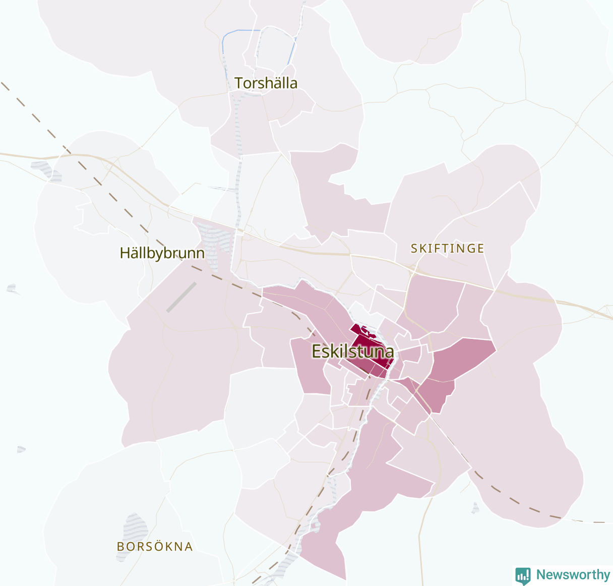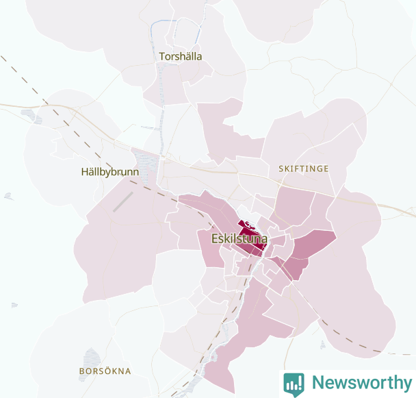Men alla delar av Eskilstuna är inte lika hårt drabbade. Det visar data för de senaste fem åren, som Newsworthy har begärt ut från polisen. De anmälda stölderna har kopplats till SCB:s 62 statistiska områden i kommunen. I två områden finns inga cykelstölder registrerade, men i de övriga rör det sig om mellan en handfull och knappt 300 anmälda stölder per område.